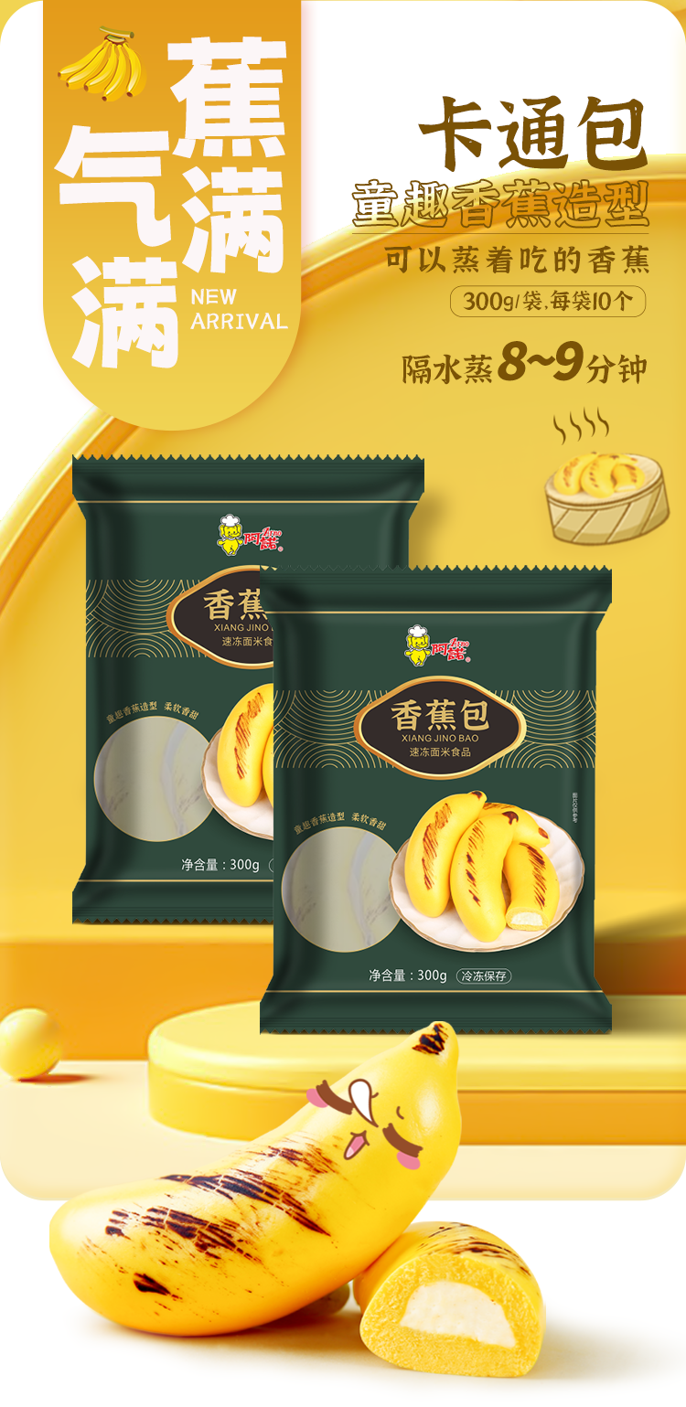 阿诺卡通包子香蕉包金橘包馒头早餐生鲜速食广式早茶点心面点 猪仔+鸡仔+蛋黄流沙包+黑糯米糕