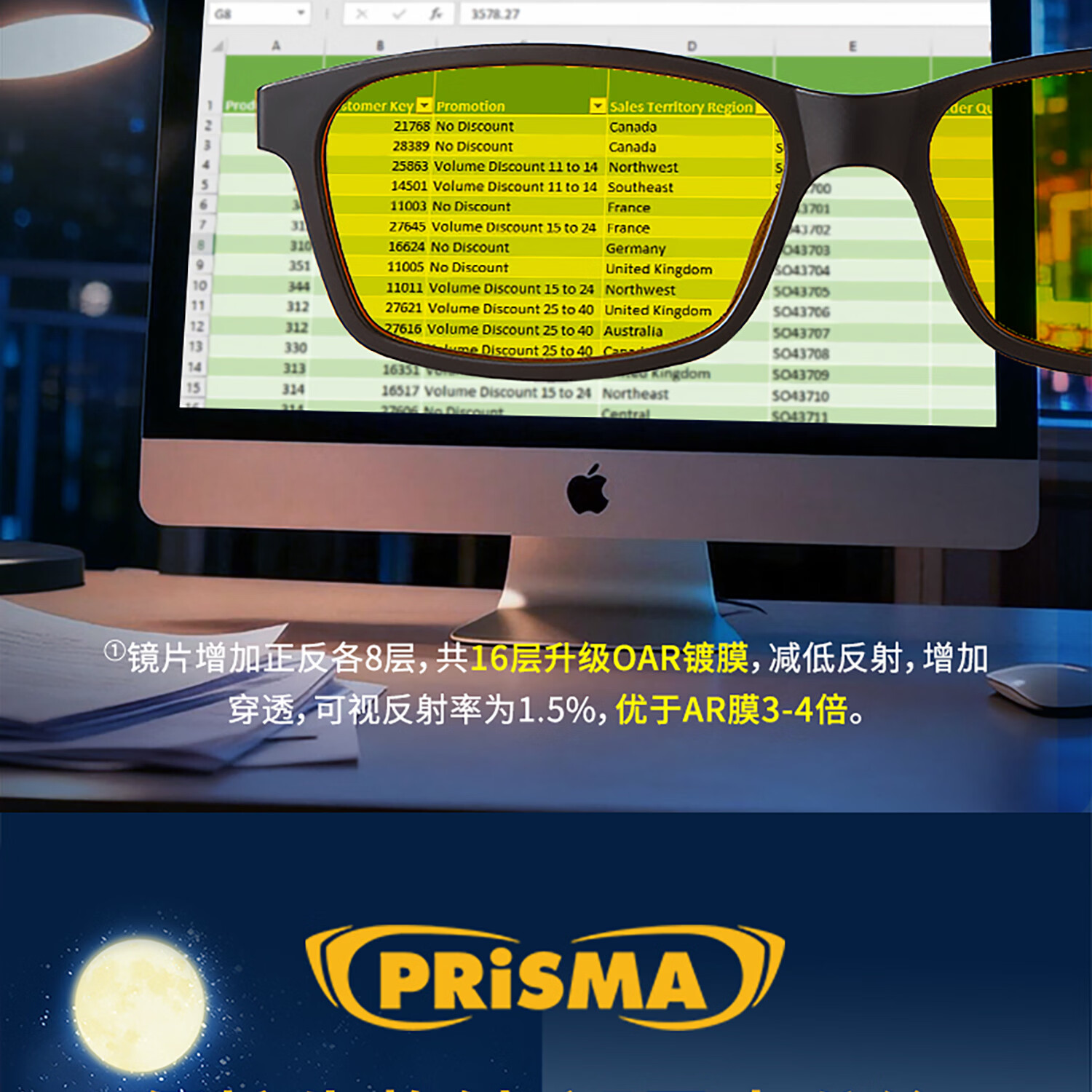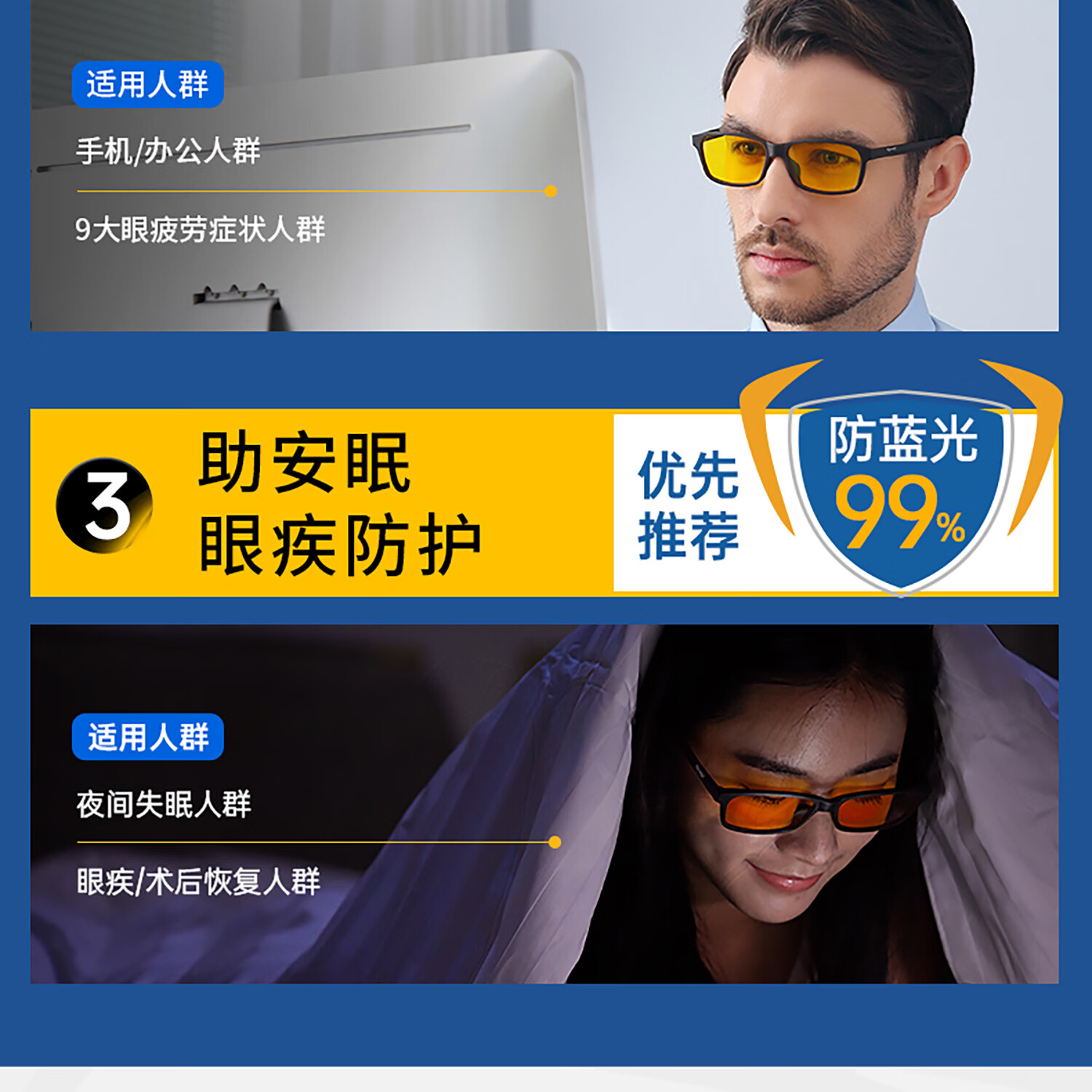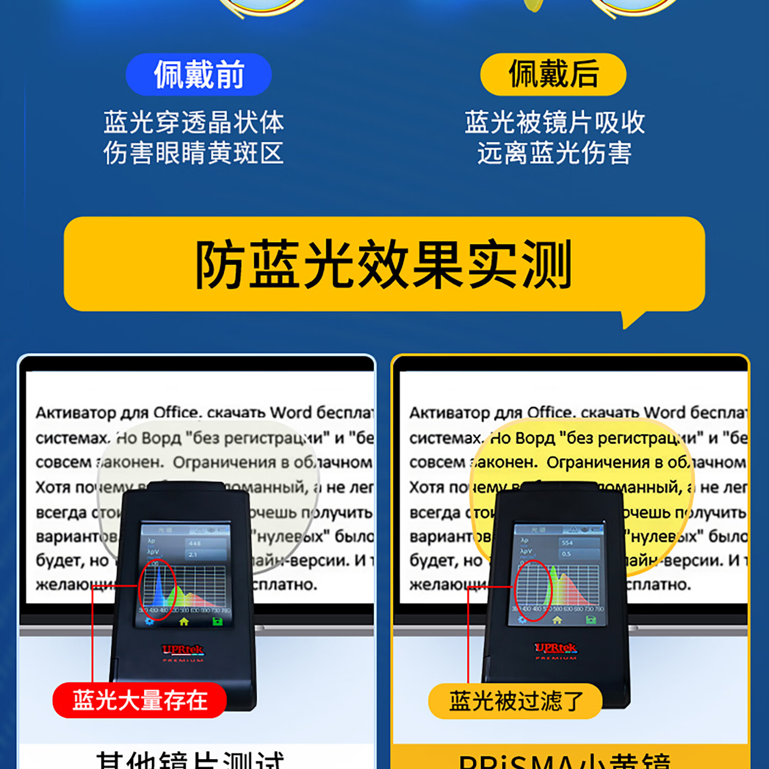 prisma普利索德国品牌防蓝光眼镜夹片看手机电脑缓解疲劳护目镜近视眼镜 CP709【99%防护】夜间/术后恢复