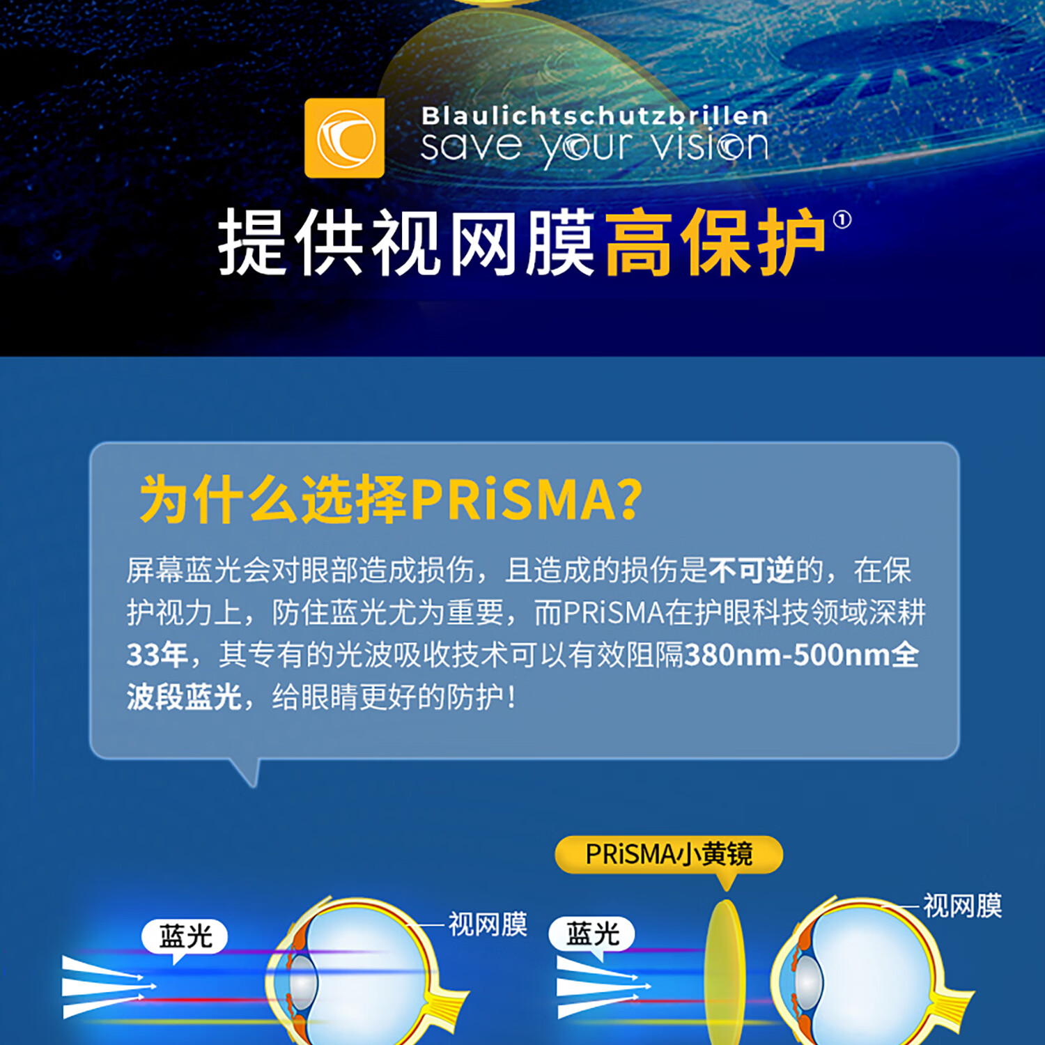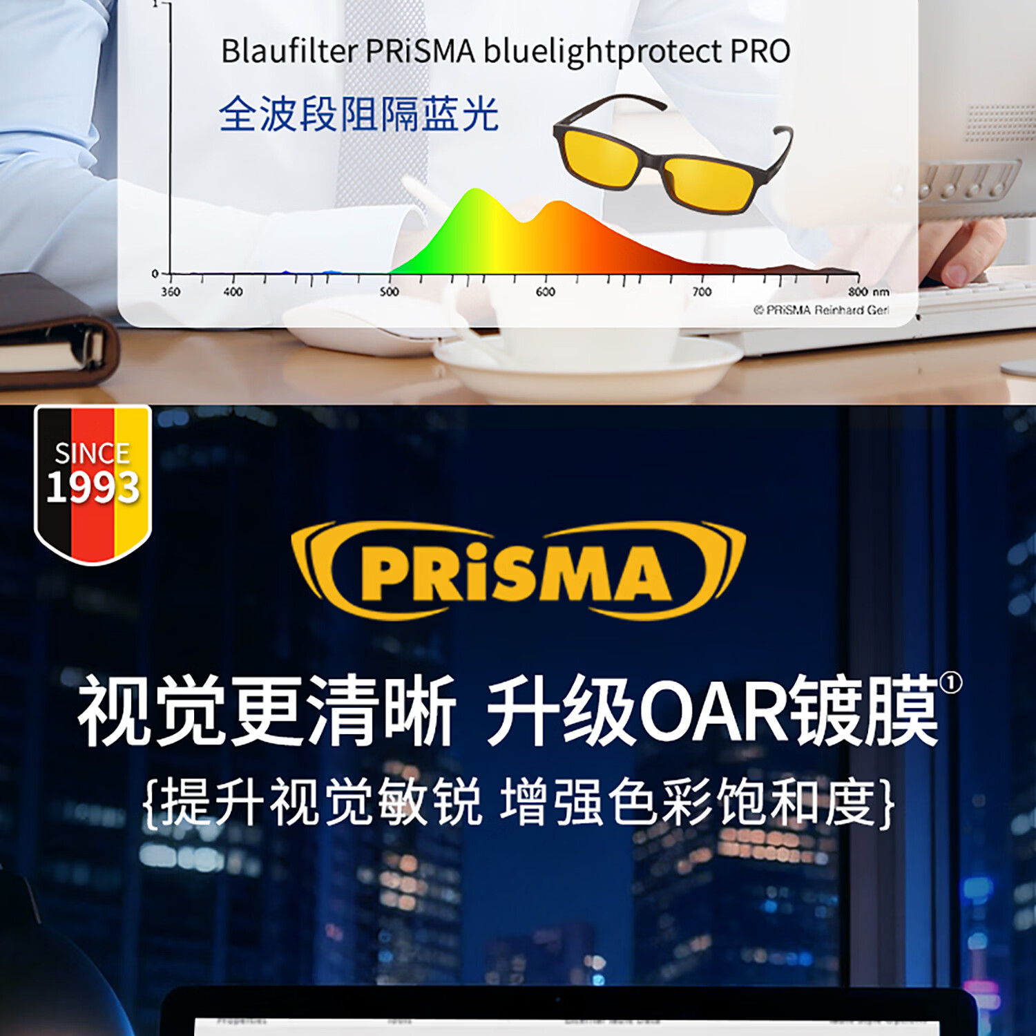 prisma普利索德国品牌防蓝光防辐射眼镜抗疲劳平光镜蓝光阻隔99%护目镜 95%防蓝光【多数人的选择】FN704 全波段(380~500nm)阻隔蓝光