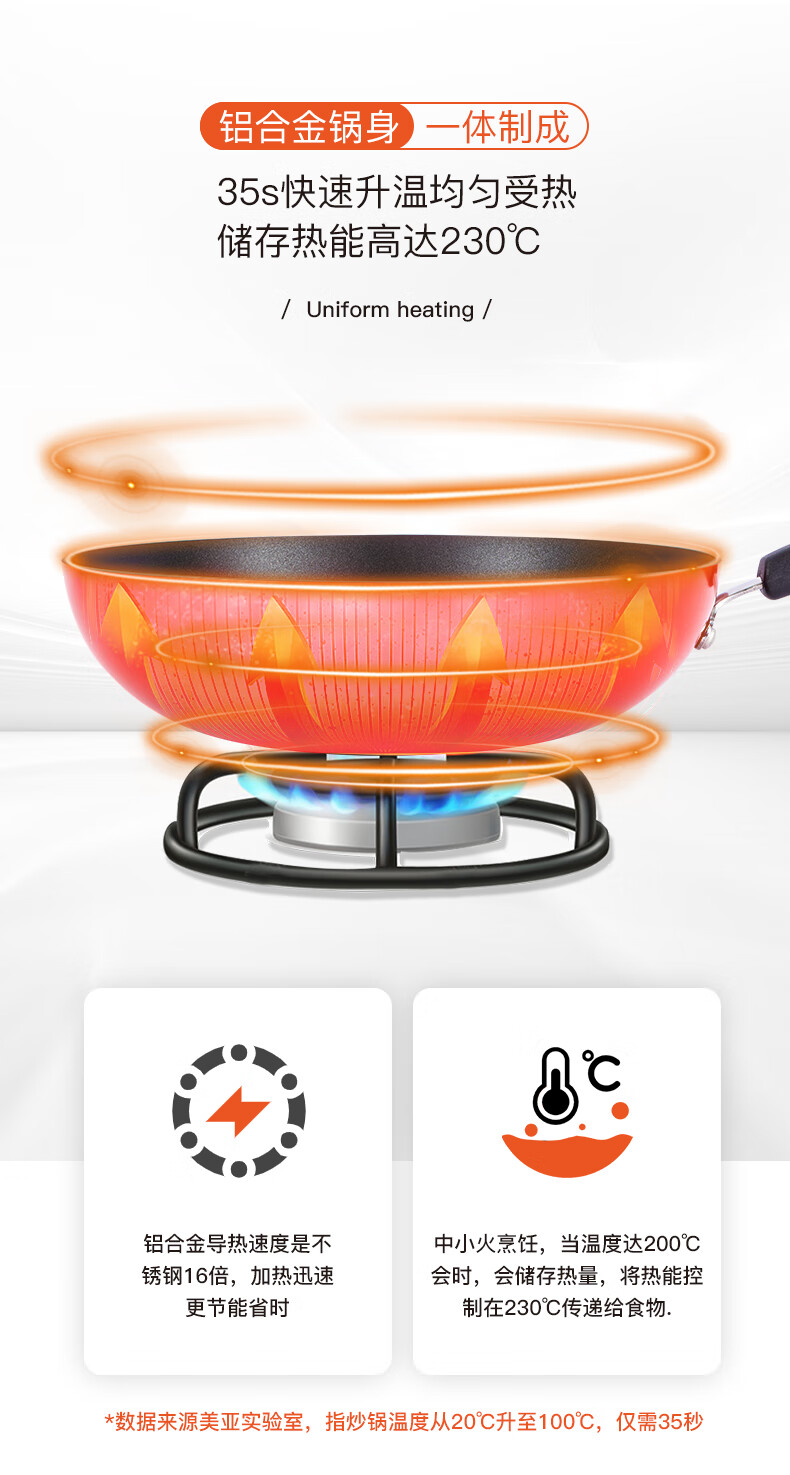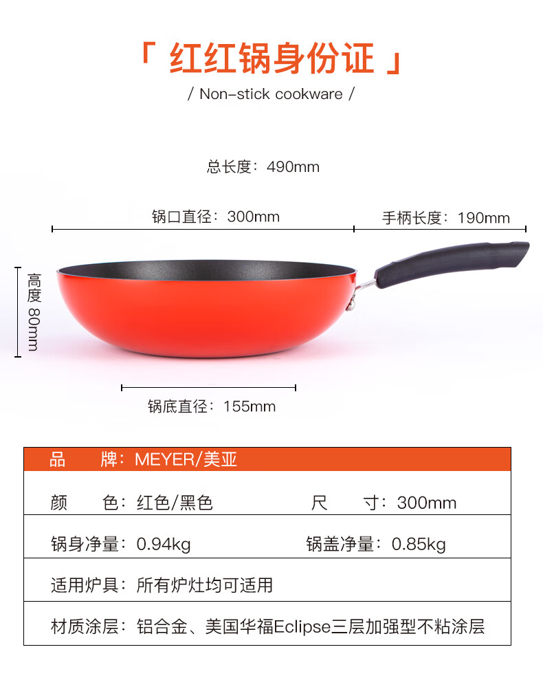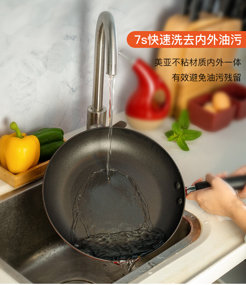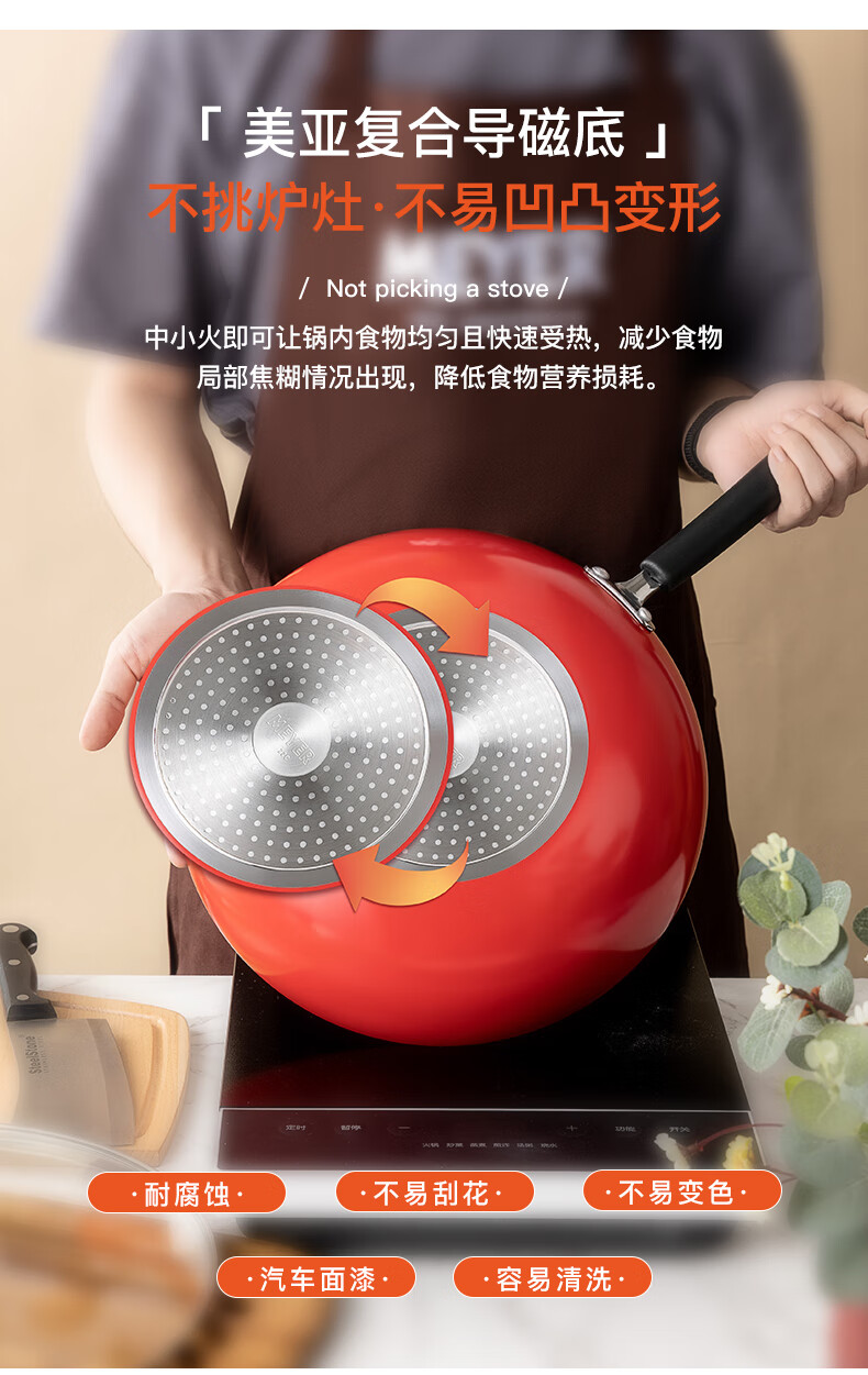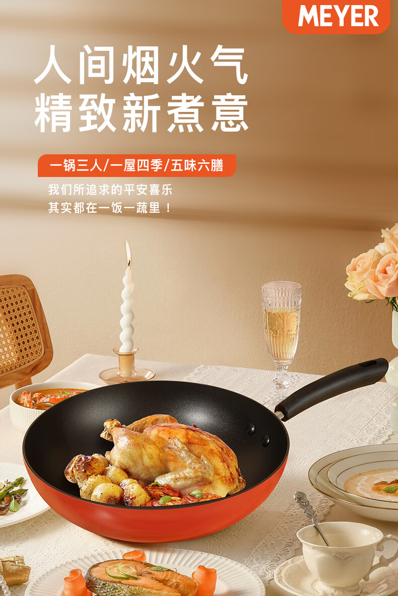 美亚(MEYER)易洁不粘炒锅少油烟煎锅30cm电磁炉通用炒菜锅红色不粘锅 炒锅(电磁炉通用) 30cm
