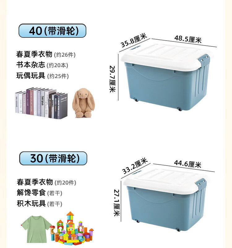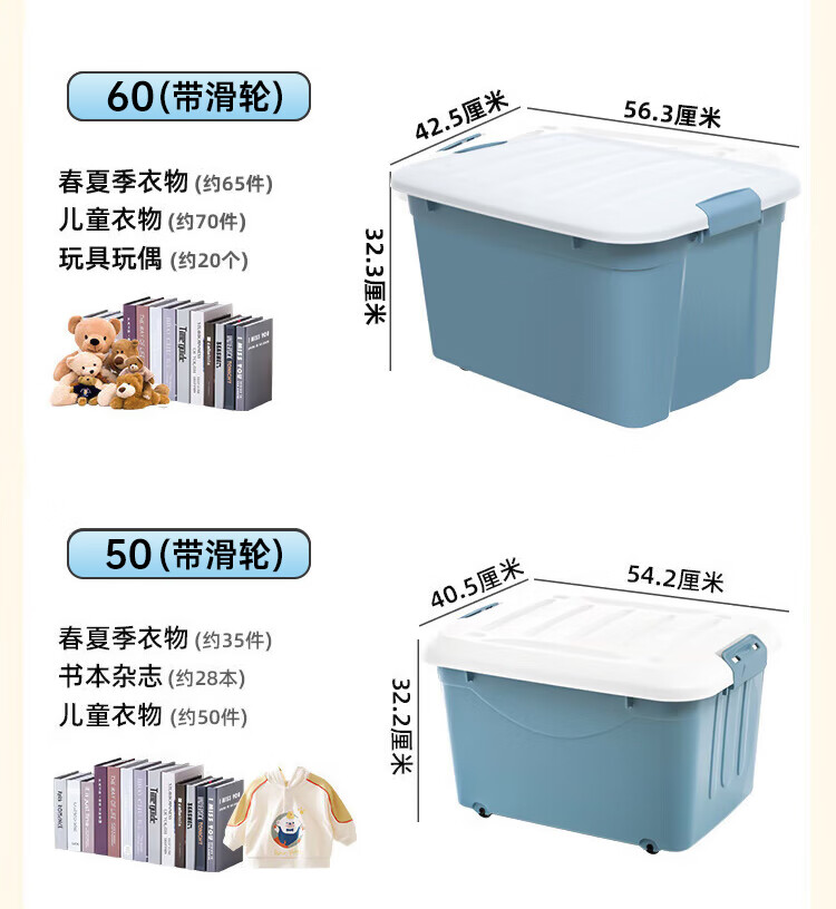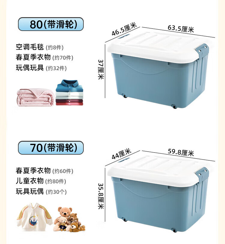 禧仕多收纳箱家用加大加厚学生宿舍衣物玩具书籍整理箱衣物收纳箱 60 无轮【收纳箱3个装 】金榜