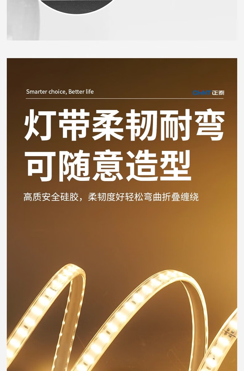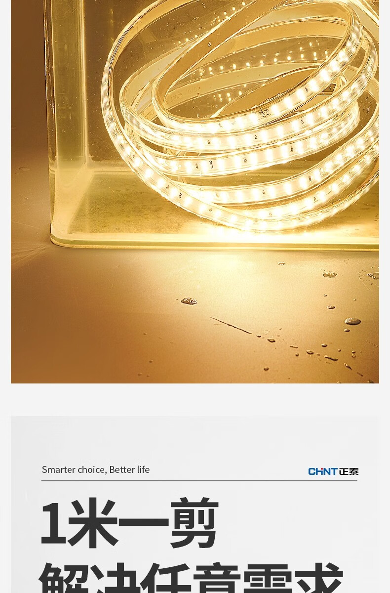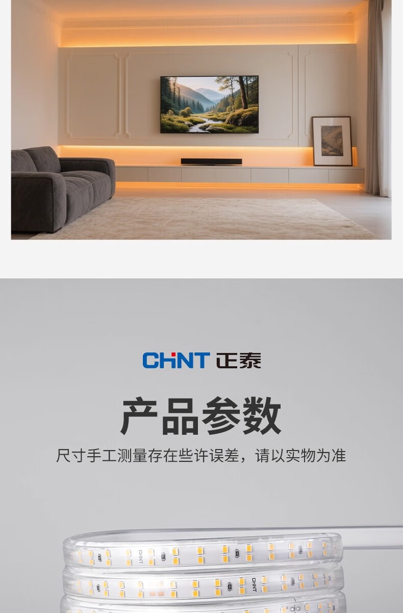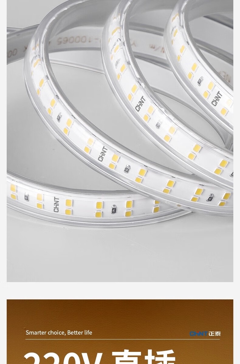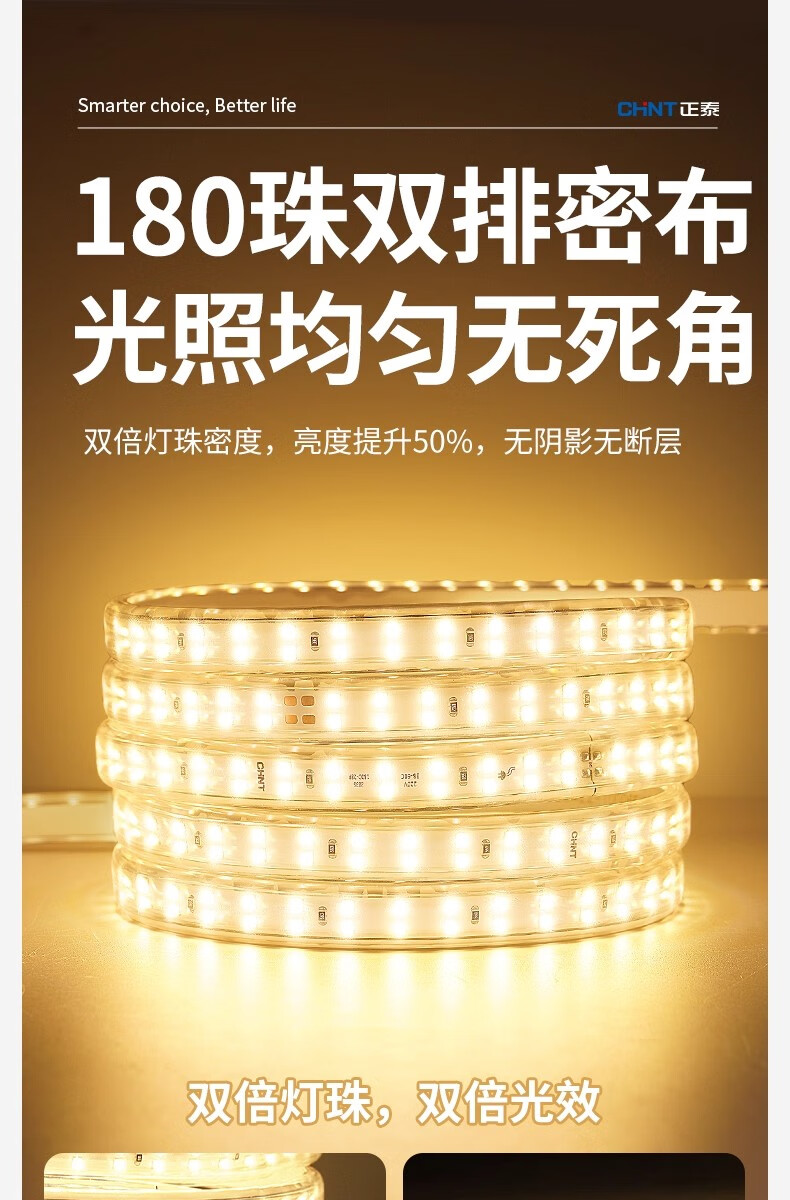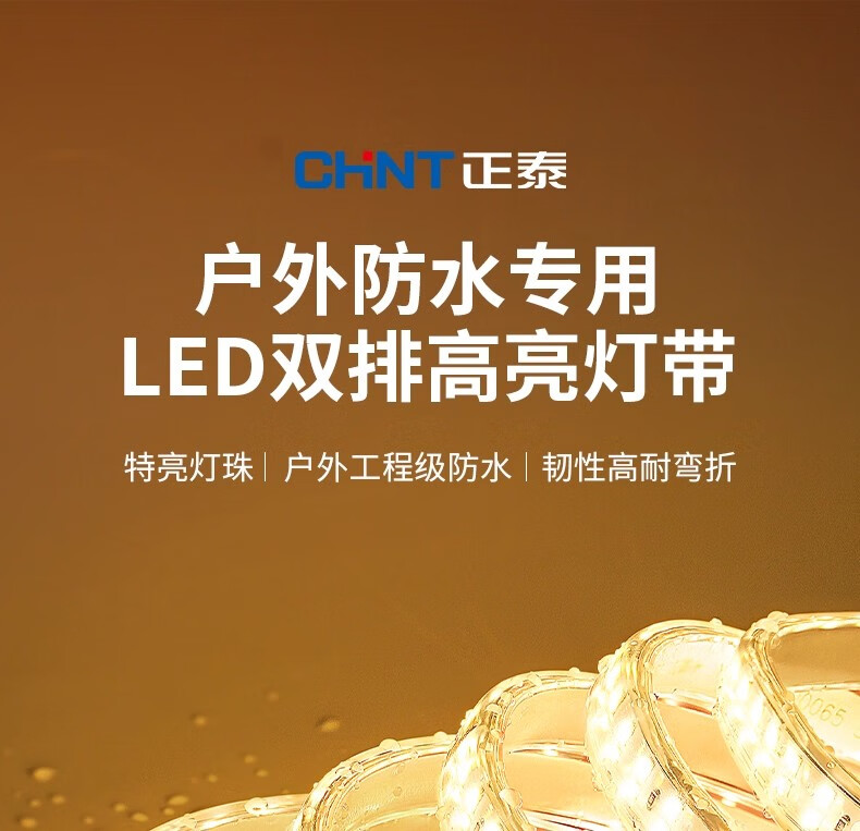 正泰220v灯带led灯条客厅吊顶家用照明天花板氛围防水线形软灯条超亮 双排明亮光【180珠金黄光】 本链接为单米价 需另外购买配件包