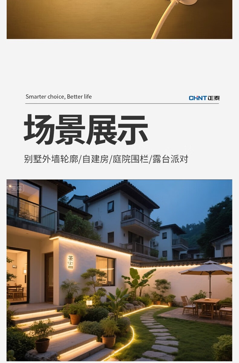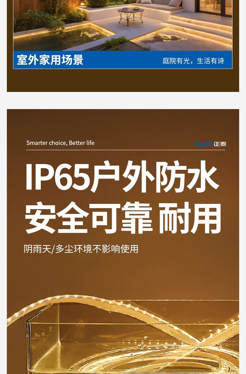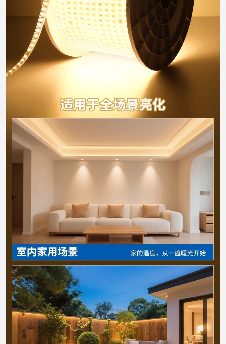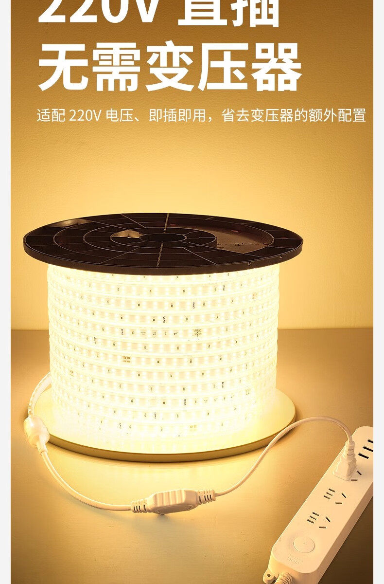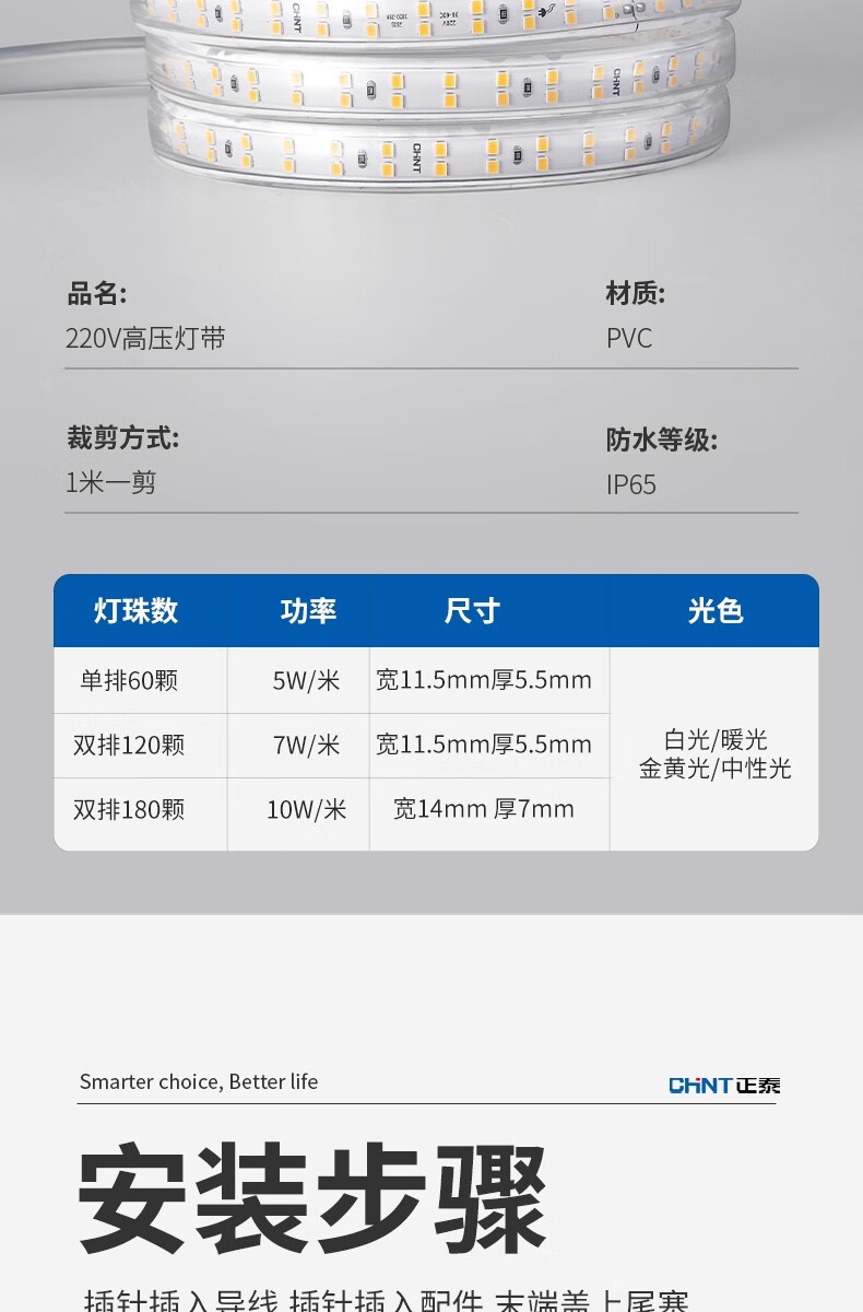 正泰220v灯带led灯条客厅吊顶家用照明天花板氛围防水线形软灯条超亮 双排明亮光【180珠金黄光】 本链接为单米价 需另外购买配件包