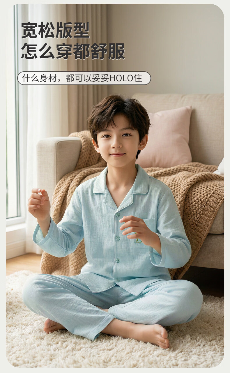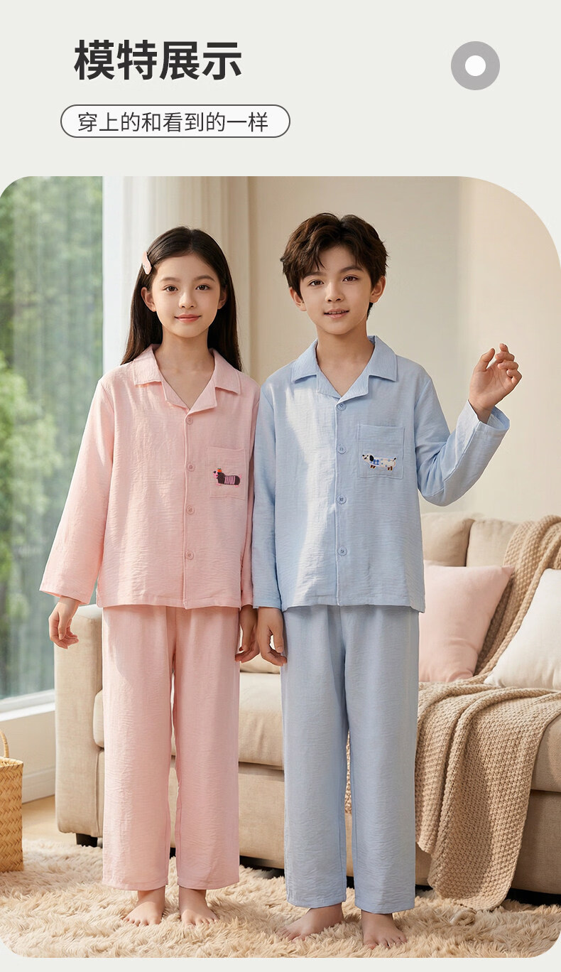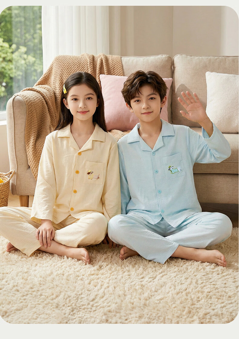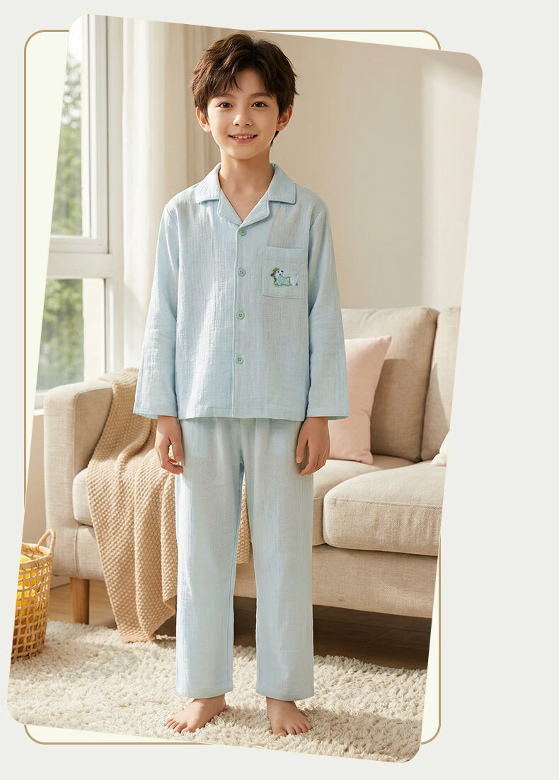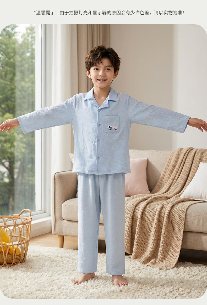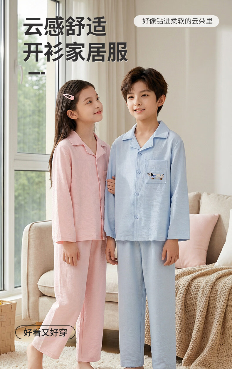 猫人儿童睡衣长袖开衫家居服套装男童女童春秋款中大童可外穿睡衣 云朵蓝 120