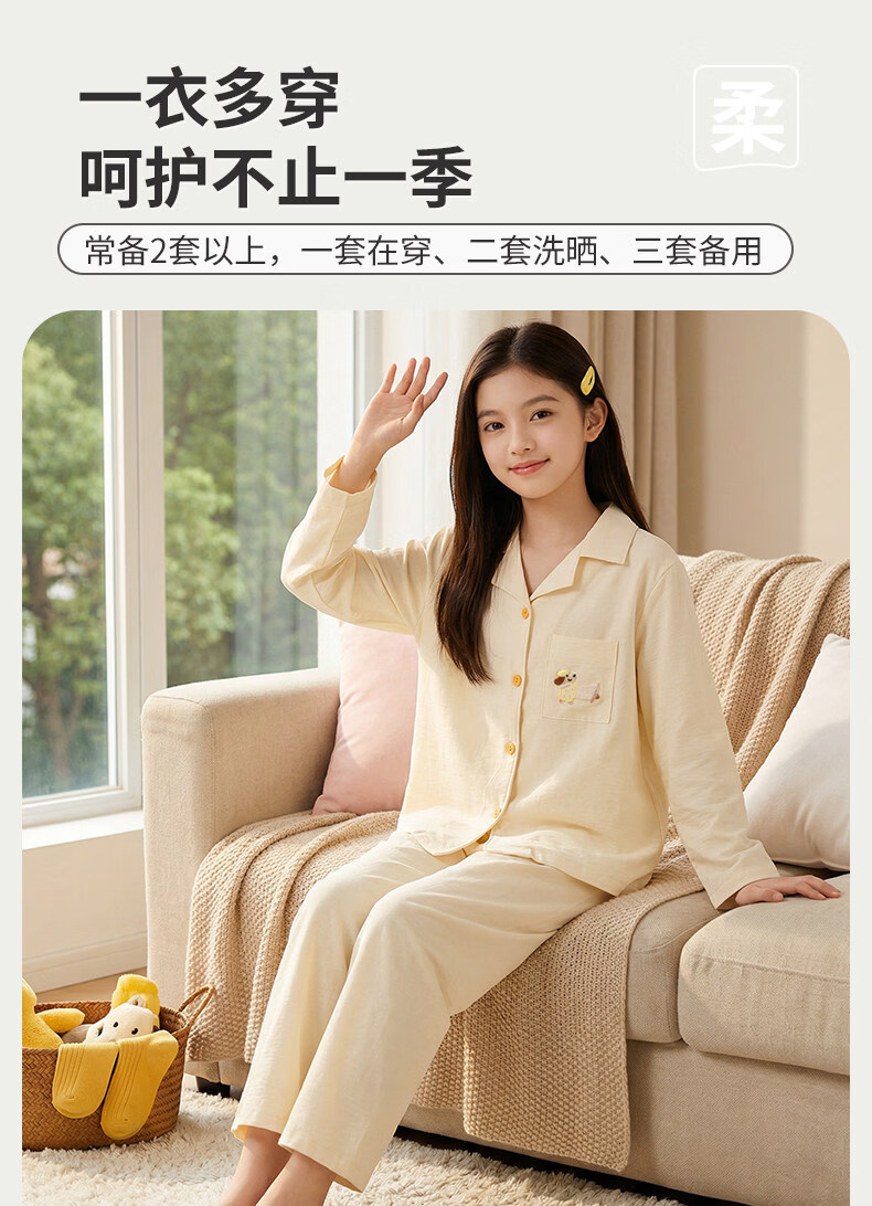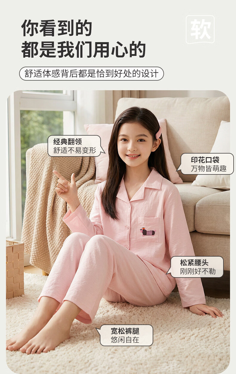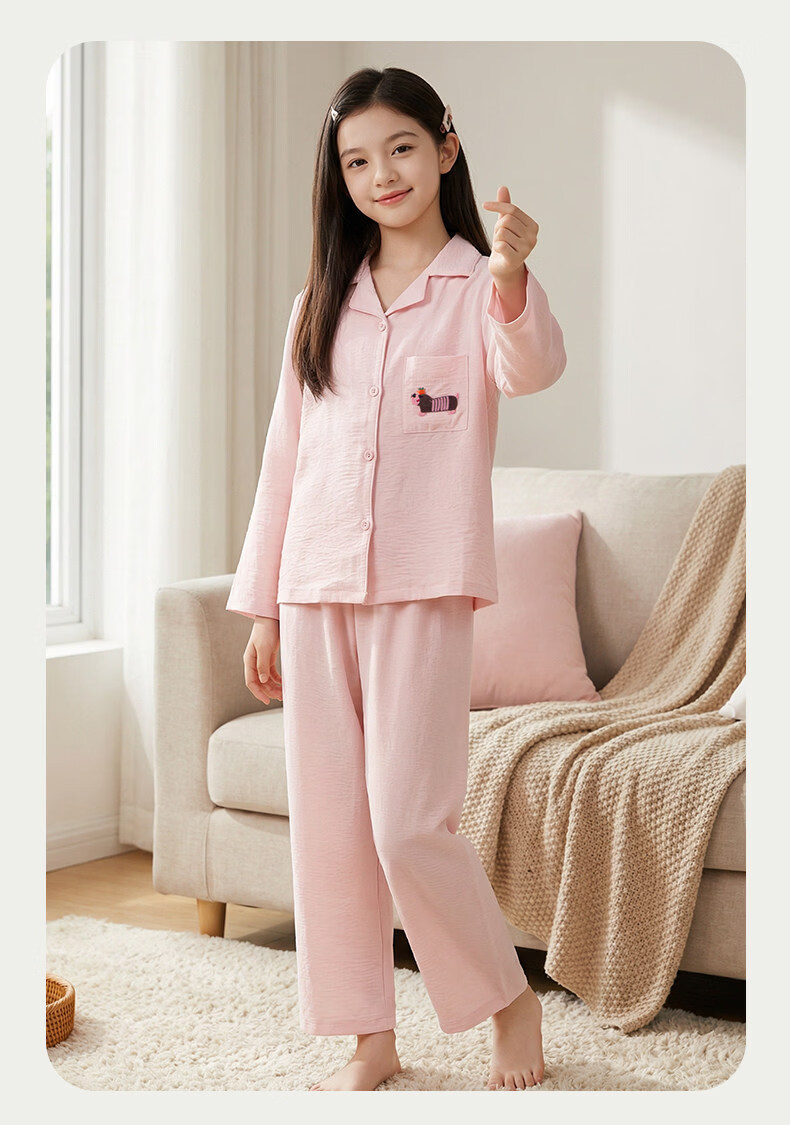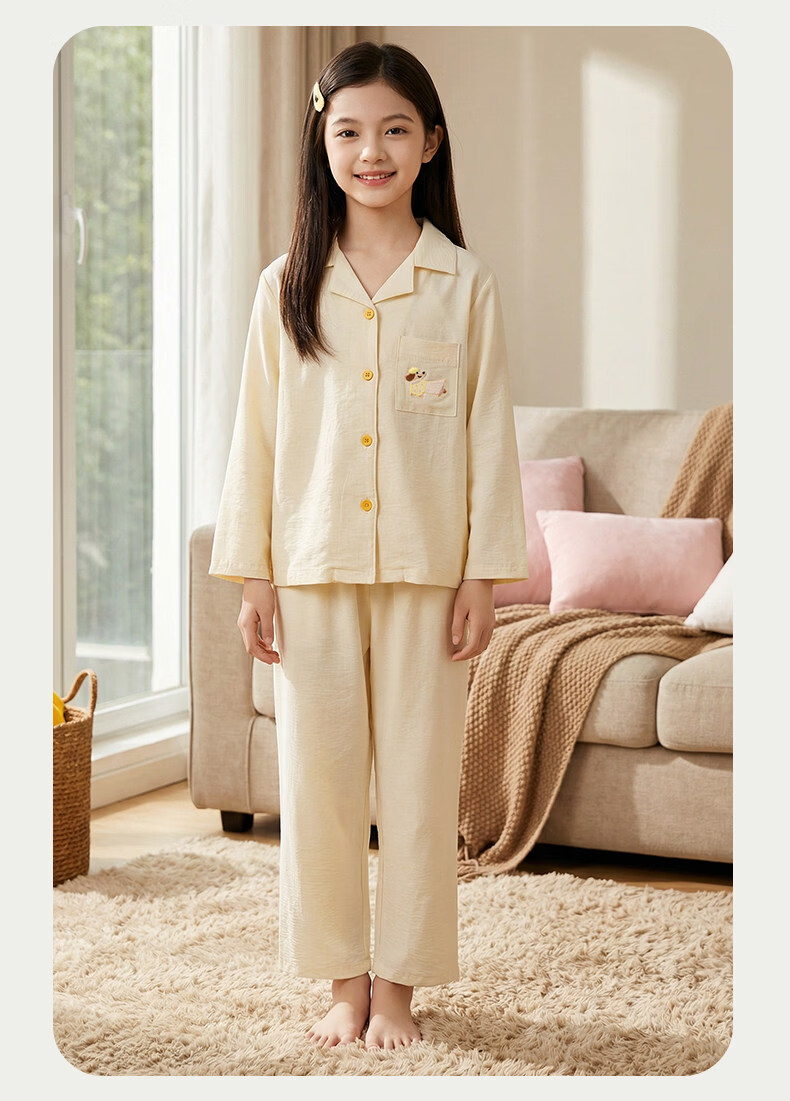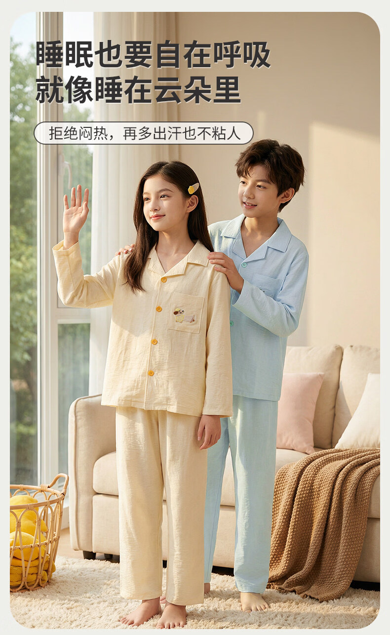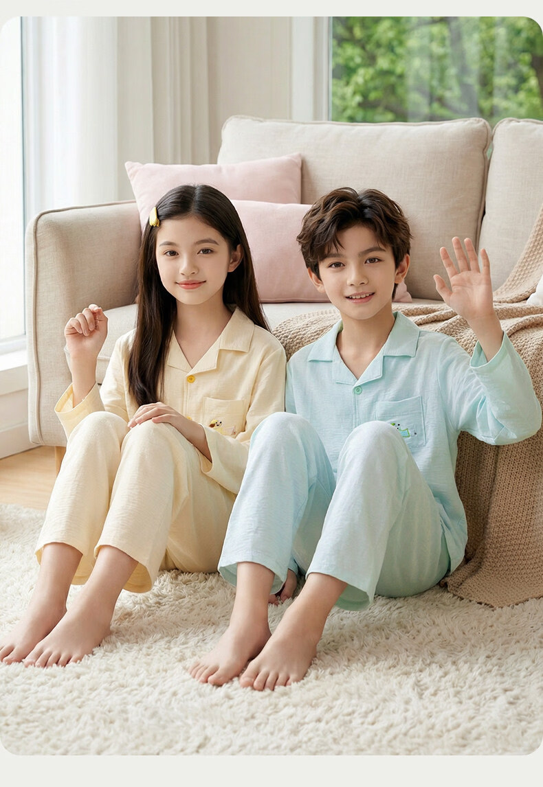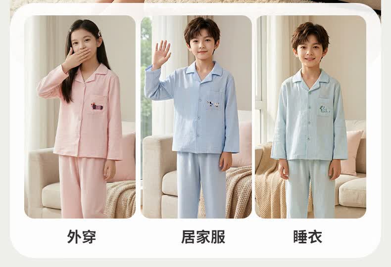 猫人儿童睡衣长袖开衫家居服套装男童女童春秋款中大童可外穿睡衣 云朵蓝 120
