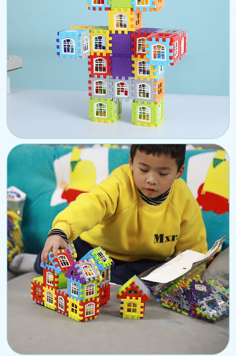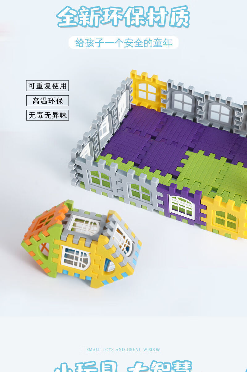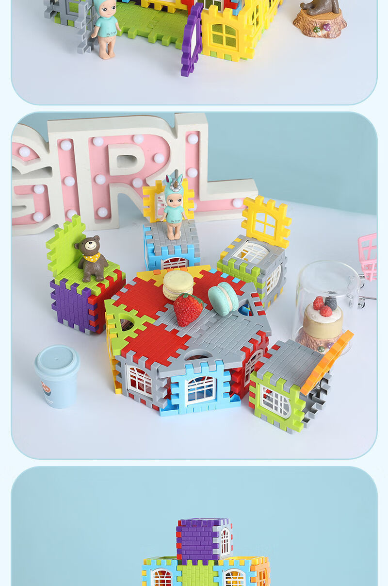【严选拼搭房子积木玩具88片儿童手工DIY拼接积木拼装玩具 房子积木88片(72积木+16窗袋装++图纸