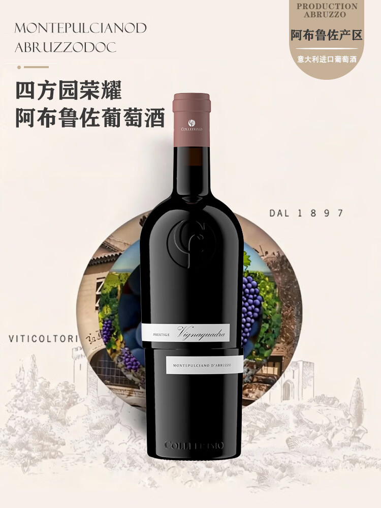 ACCORNERO意大利原瓶进口翡丽山四方园荣耀阿布鲁佐红葡萄酒 送礼750ml 翡丽山四方园荣耀阿布鲁佐红葡萄酒