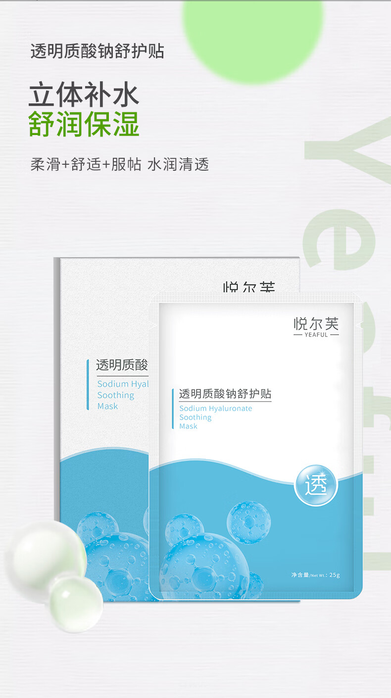 悦尔芙(Yeaful)透明质酸钠清爽舒护贴深层补水保湿护肤修复面膜 水库蓝膜+提亮橙色灯泡膜各1盒 拯救沙漠肌·水库蓝膜