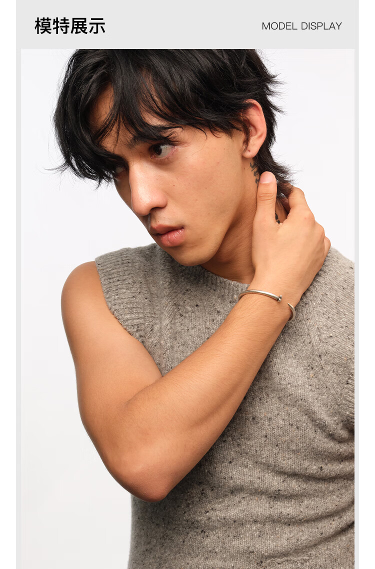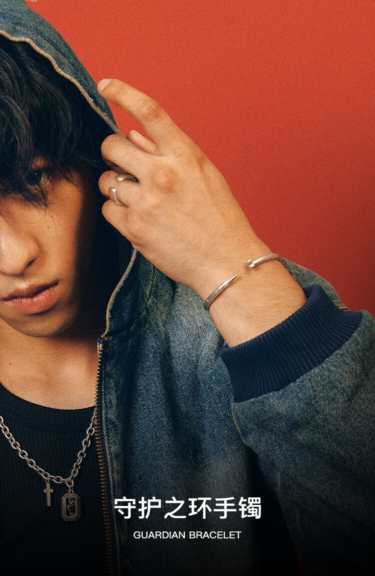 BABAMA【明星同款】公益雪豹守护之环手镯男女情侣手链生日礼物 银色