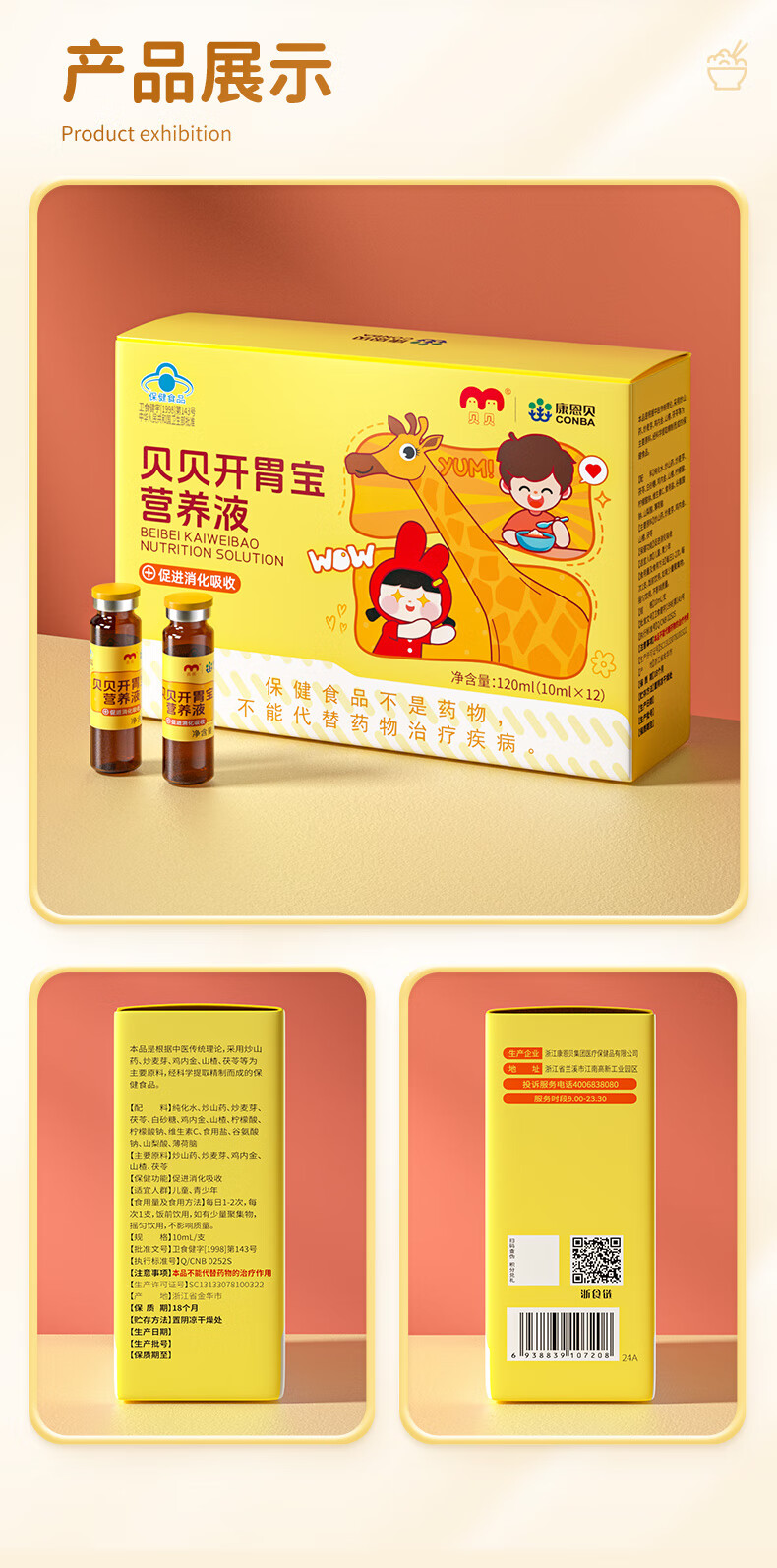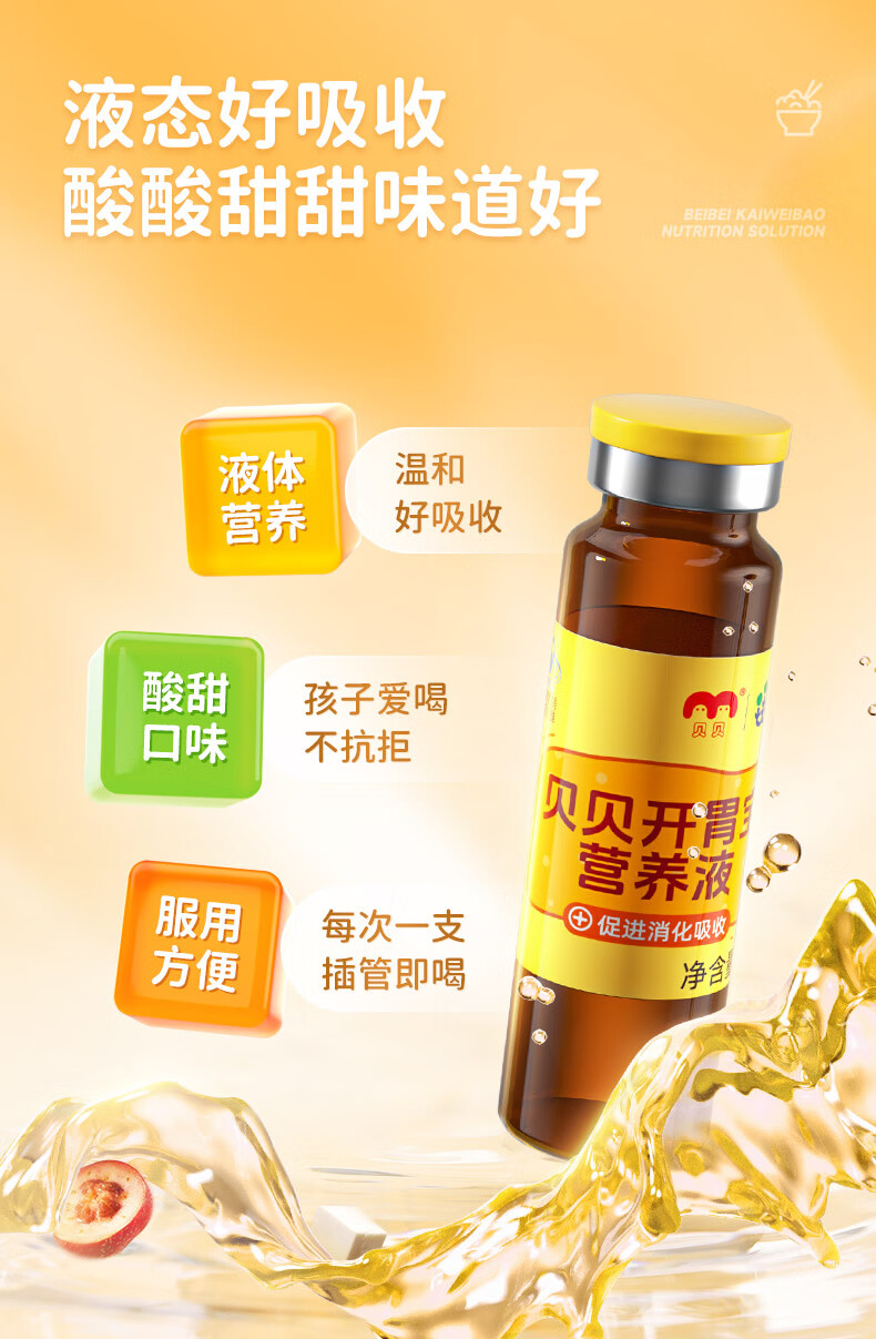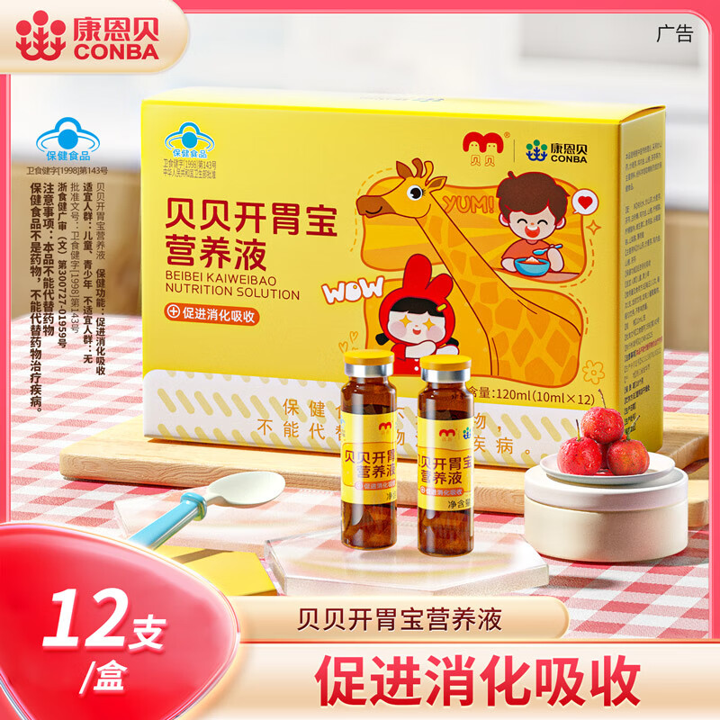 康恩贝 贝贝开胃宝营养液 促进消化吸收 口服液 儿童青少年10ml*12支/盒 1盒体验装 可用12天