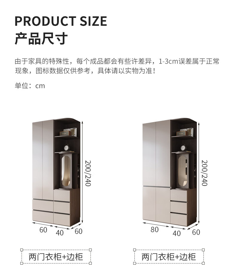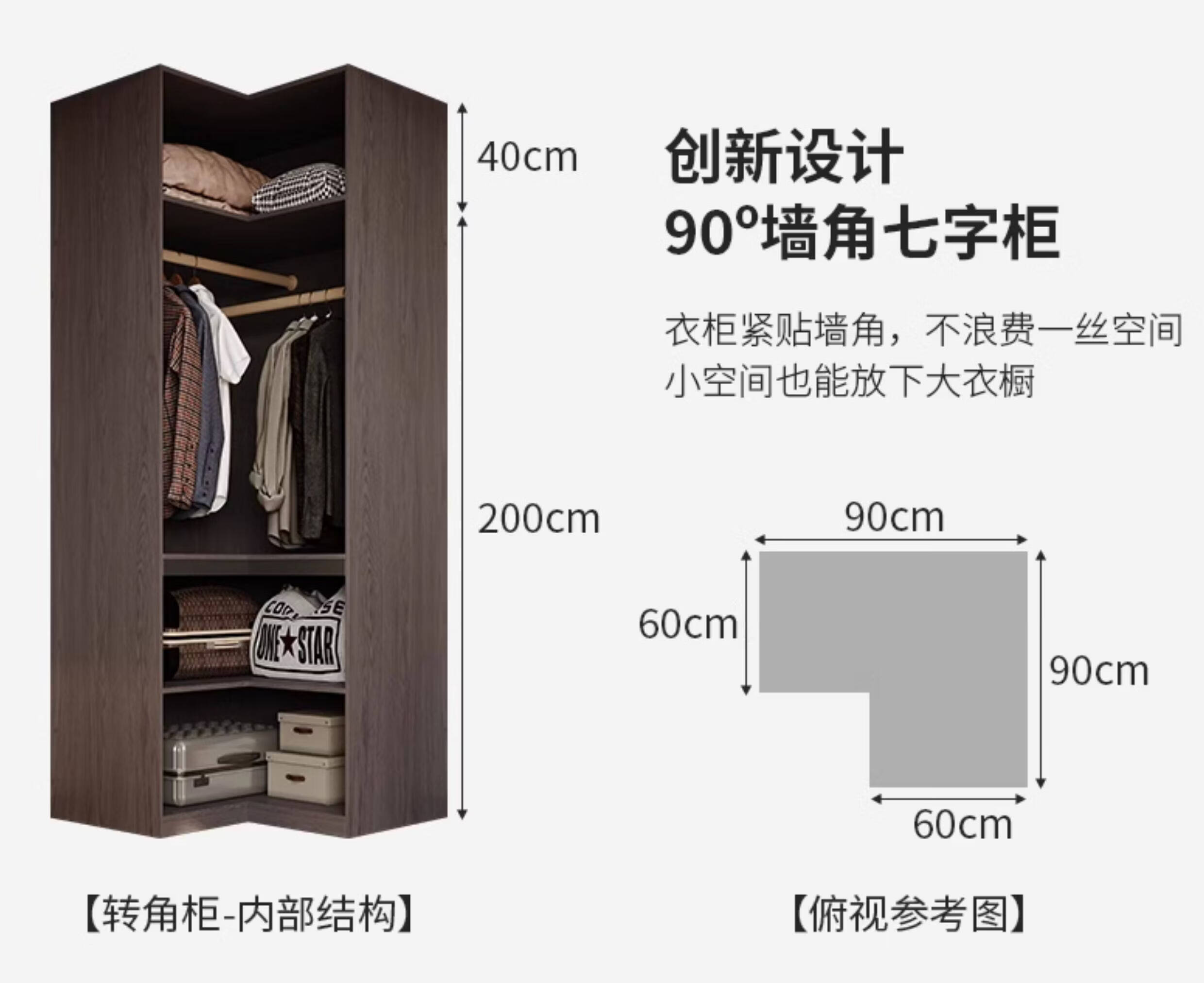 宜美芬 EMAYFUN实木ENF级定制衣柜家用卧室储物奶油风一门到顶平开门简约大衣橱 0.9*0.9配套转角柜【2.4米高】【18MM孕婴ENF级实木】