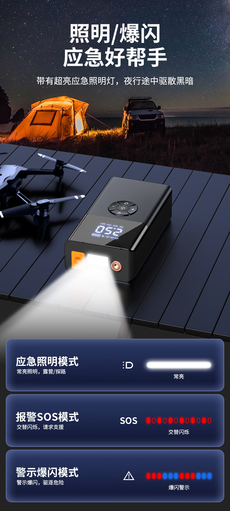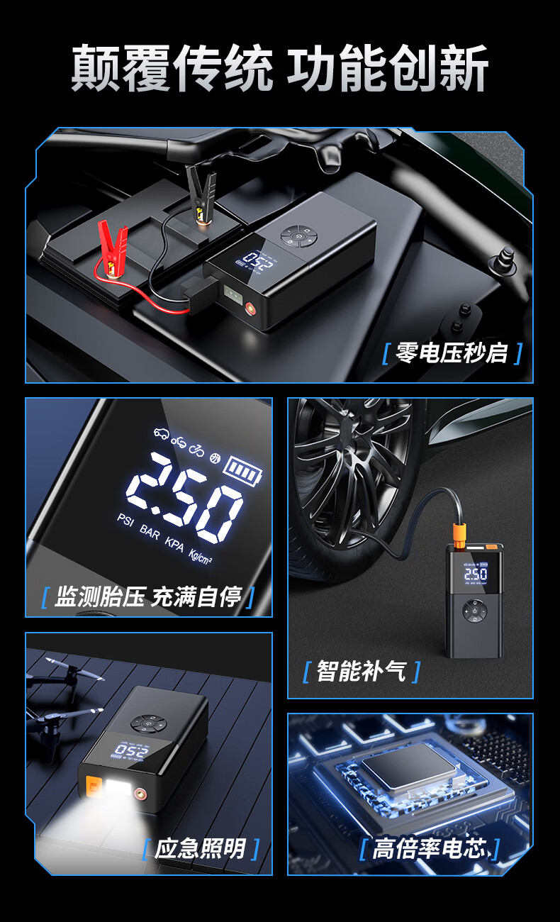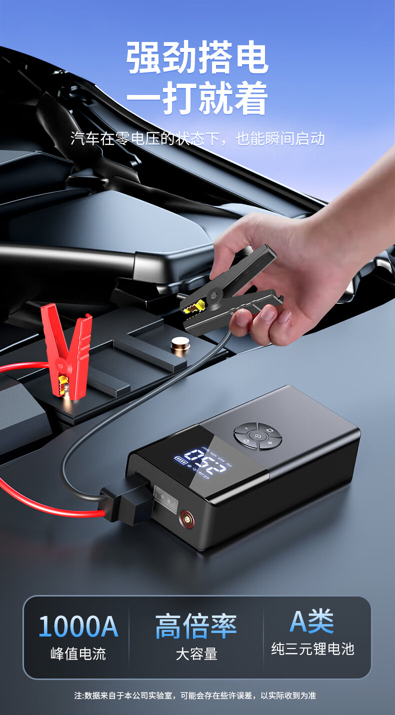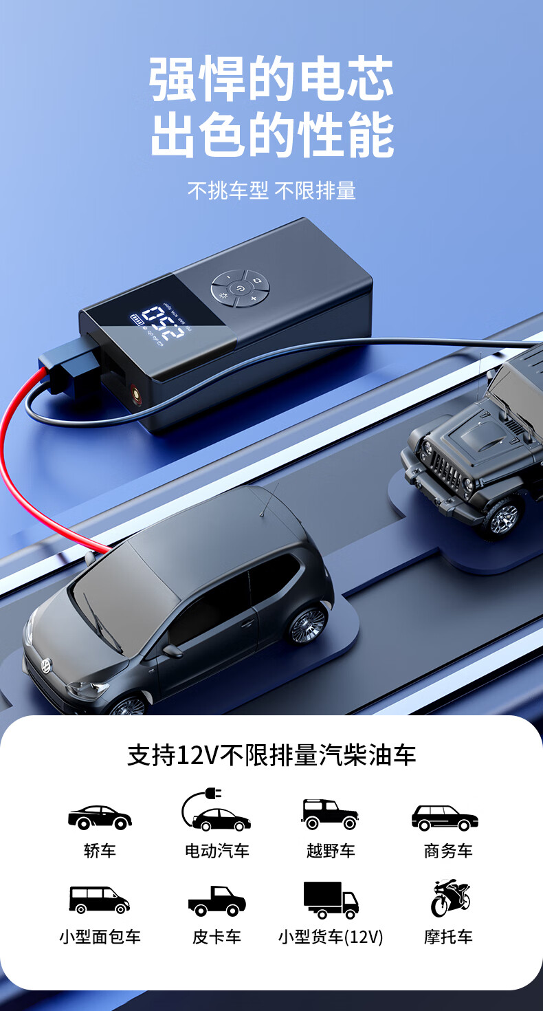 谱硕【A类电池】汽车应急启动电源充气泵一体机数显车载电瓶搭电宝强启打火神器各类轮胎打气户外照明 顶配【12V不限排丨2000A电流】智能夹+收纳袋