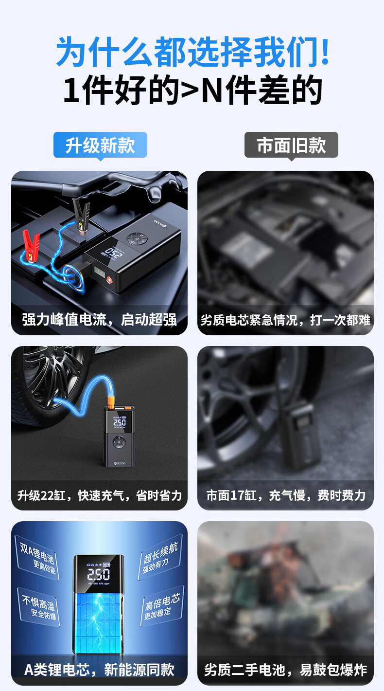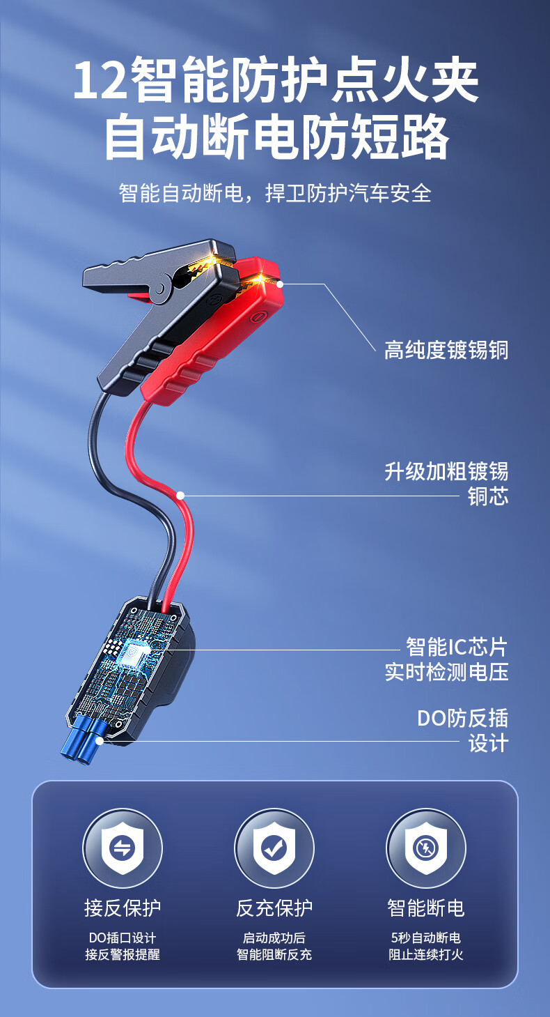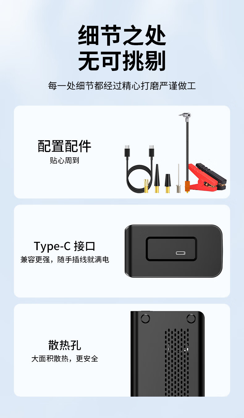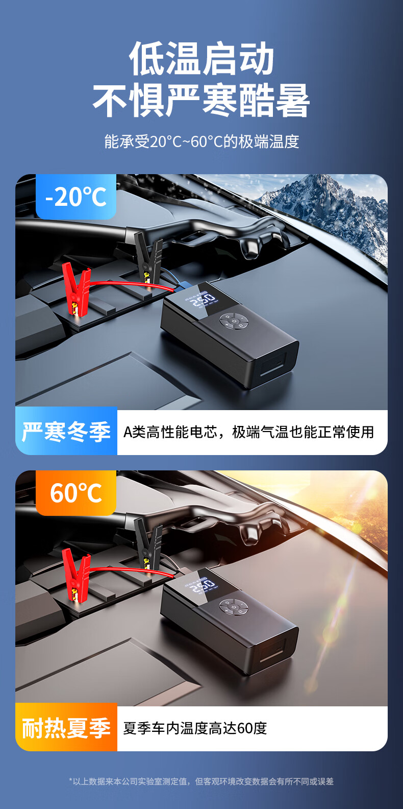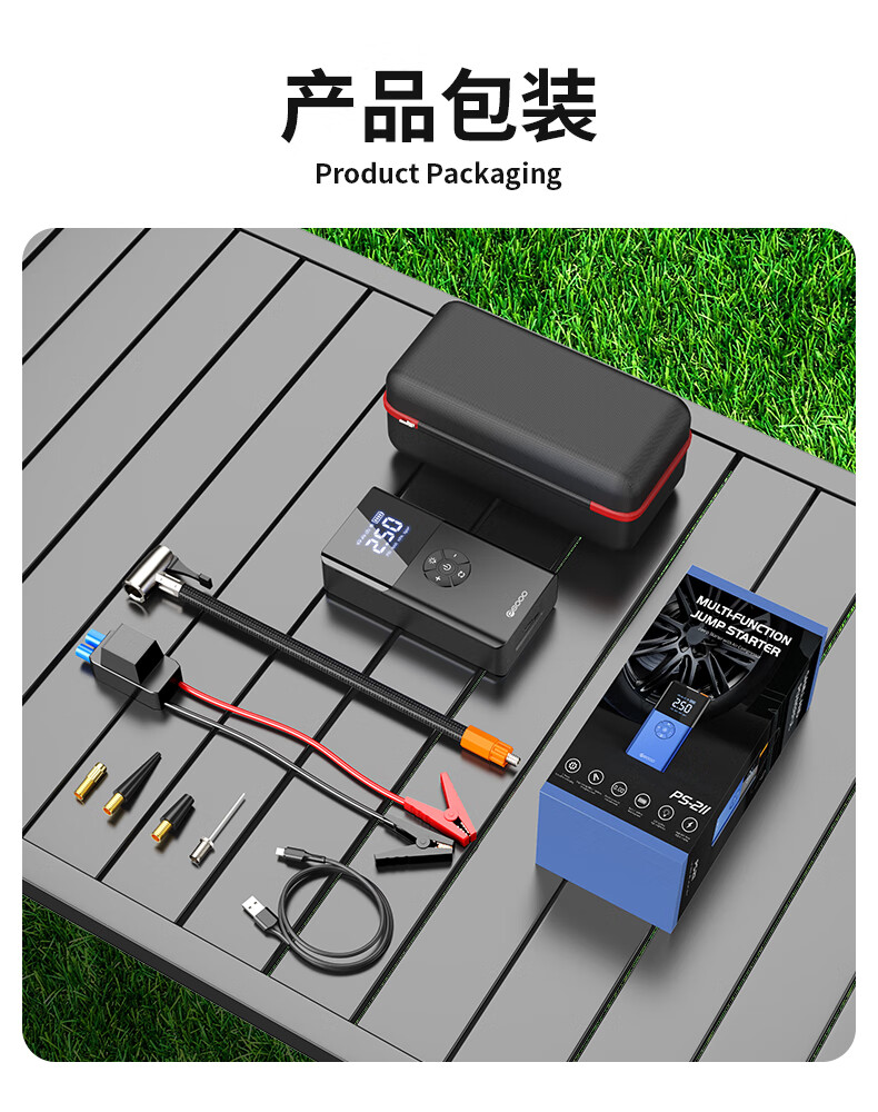谱硕【A类电池】汽车应急启动电源充气泵一体机数显车载电瓶搭电宝强启打火神器各类轮胎打气户外照明 顶配【12V不限排丨2000A电流】智能夹+收纳袋