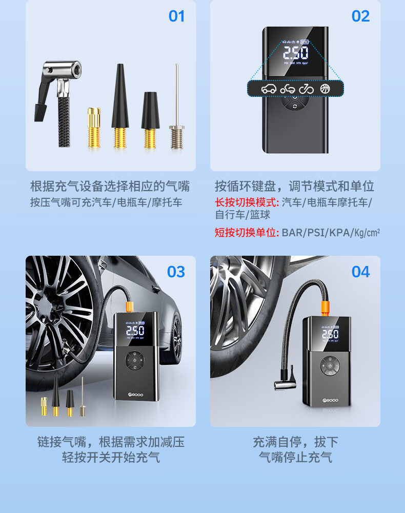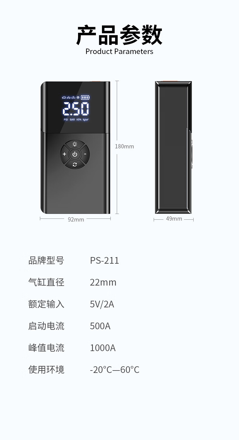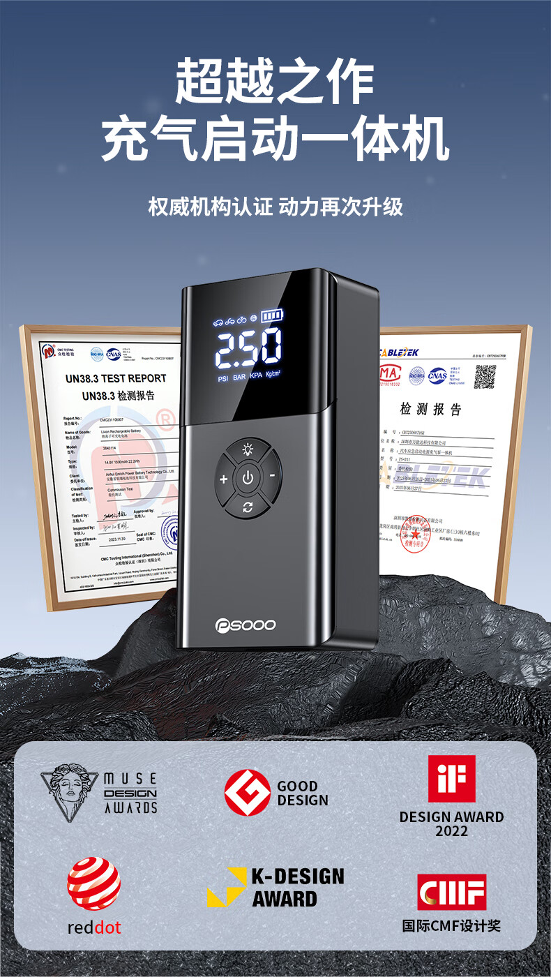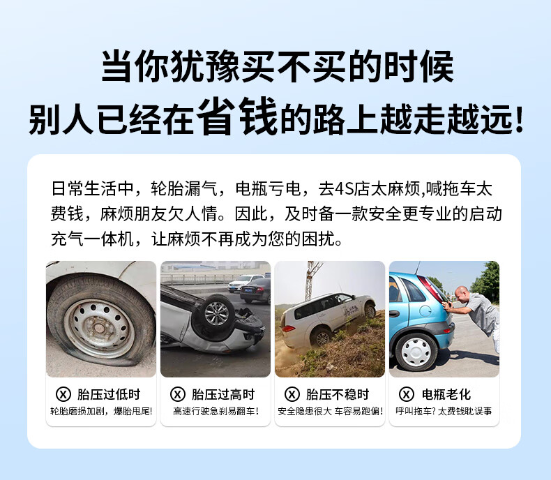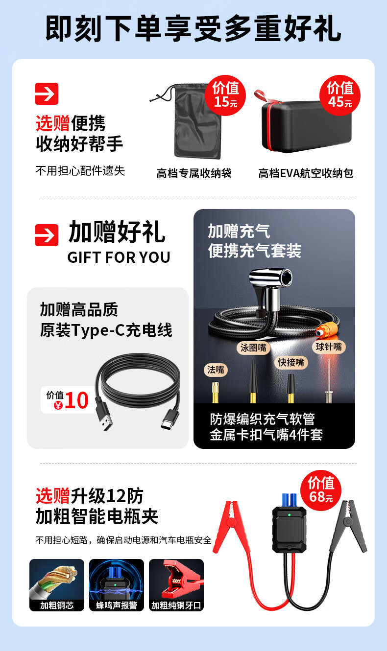 谱硕【A类电池】汽车应急启动电源充气泵一体机数显车载电瓶搭电宝强启打火神器各类轮胎打气户外照明 顶配【12V不限排丨2000A电流】智能夹+收纳袋