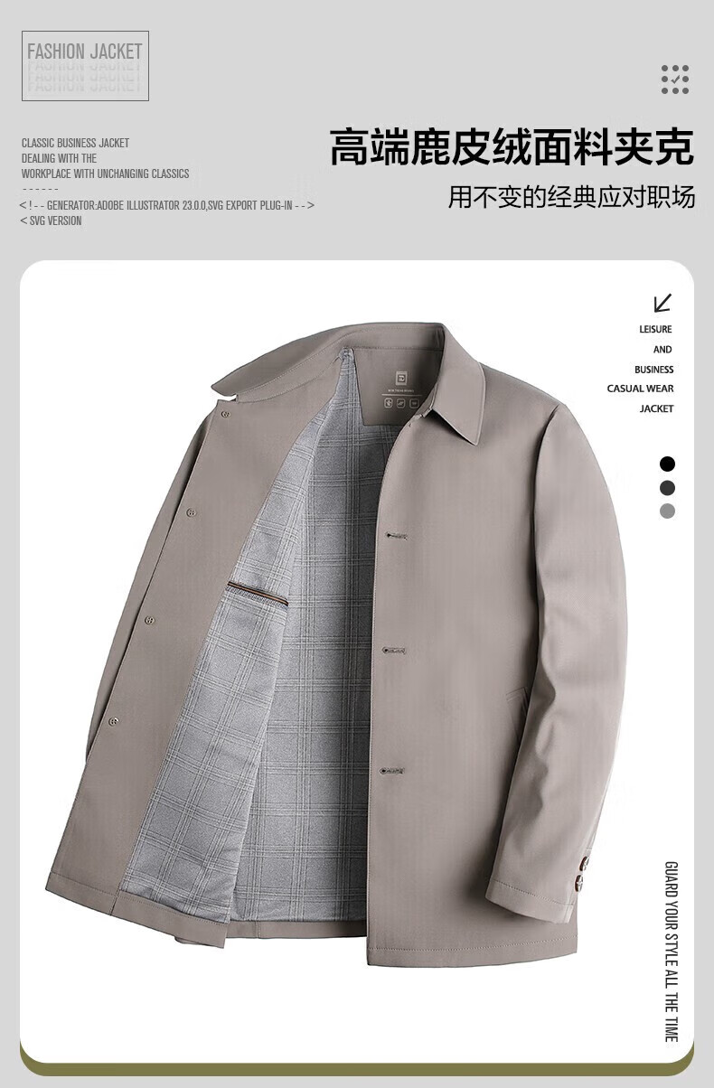 才子(TRIES)外套男行政夹克男士商务休闲立领春秋新款通勤风上衣男 灰色 XL (175/92A)