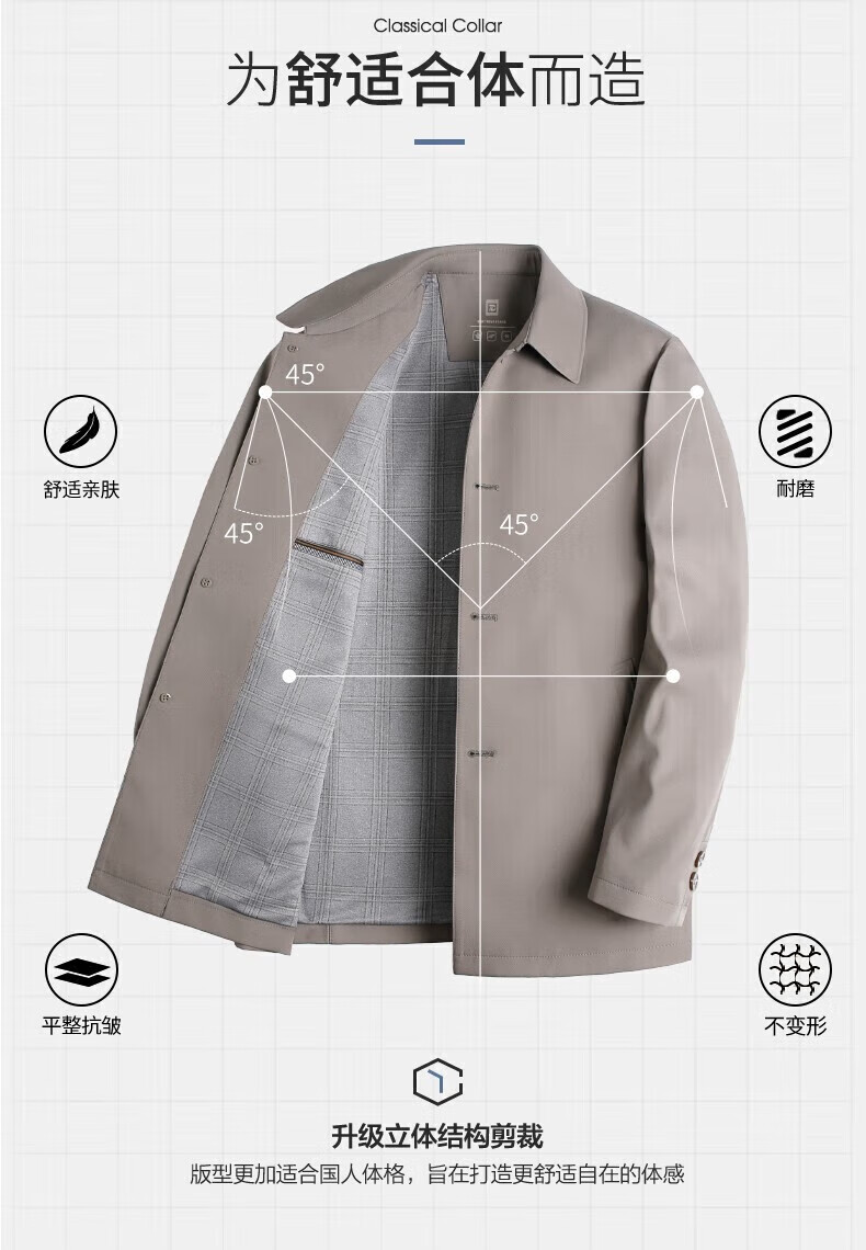 SHANSHAN杉杉行政夹克男春季新款抗皱无缝压胶翻领外套男士通勤 藏青色 L 175 /175