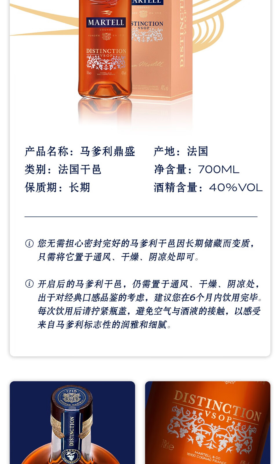 马爹利正品行货 VSOP奢品缔造 XO干邑白兰地法国原装瓶进口洋酒节日送礼 700mL 1瓶 马爹利名士