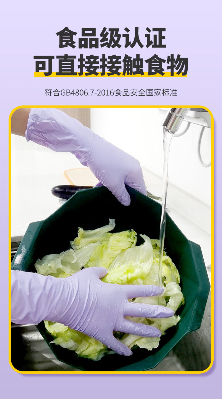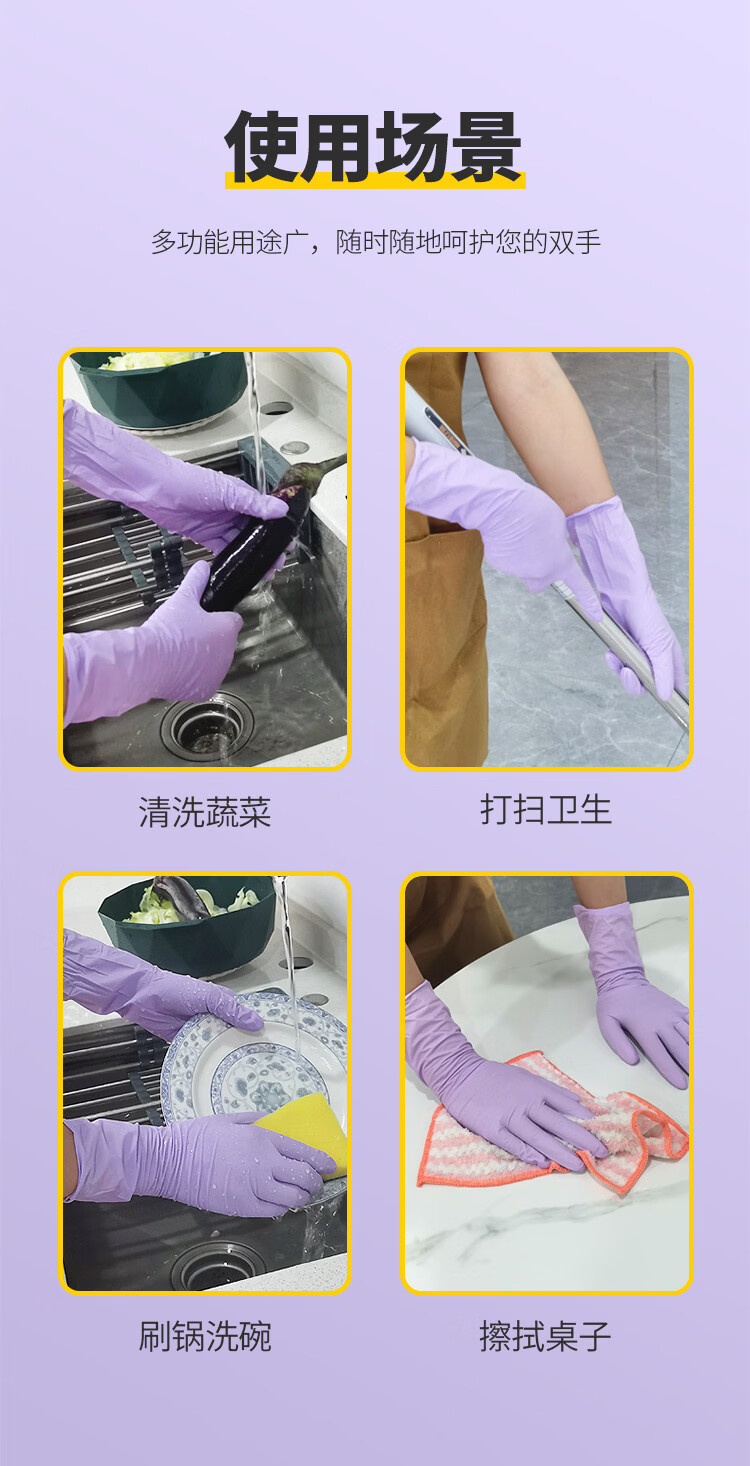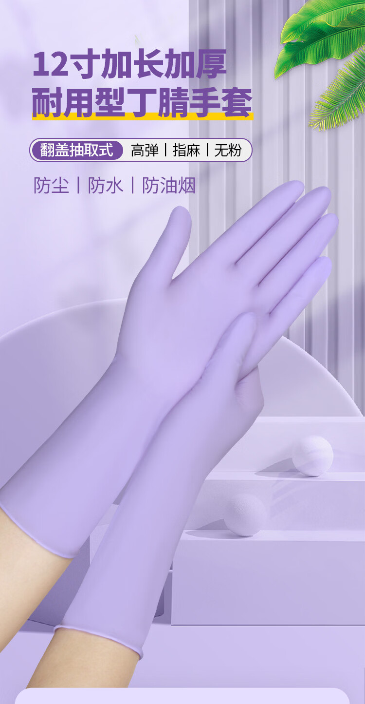 恬舒一次性丁腈手套加长加厚食品级12寸洗碗做家务清洁耐酸碱耐磨丁晴 【粉色】盒装12寸S号