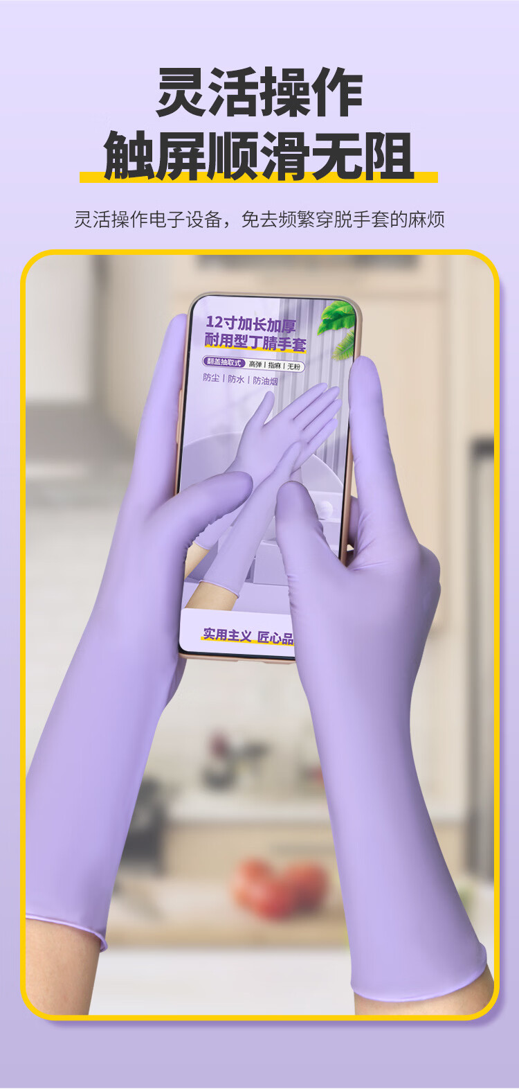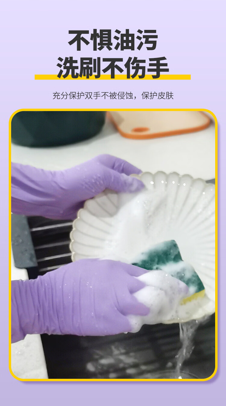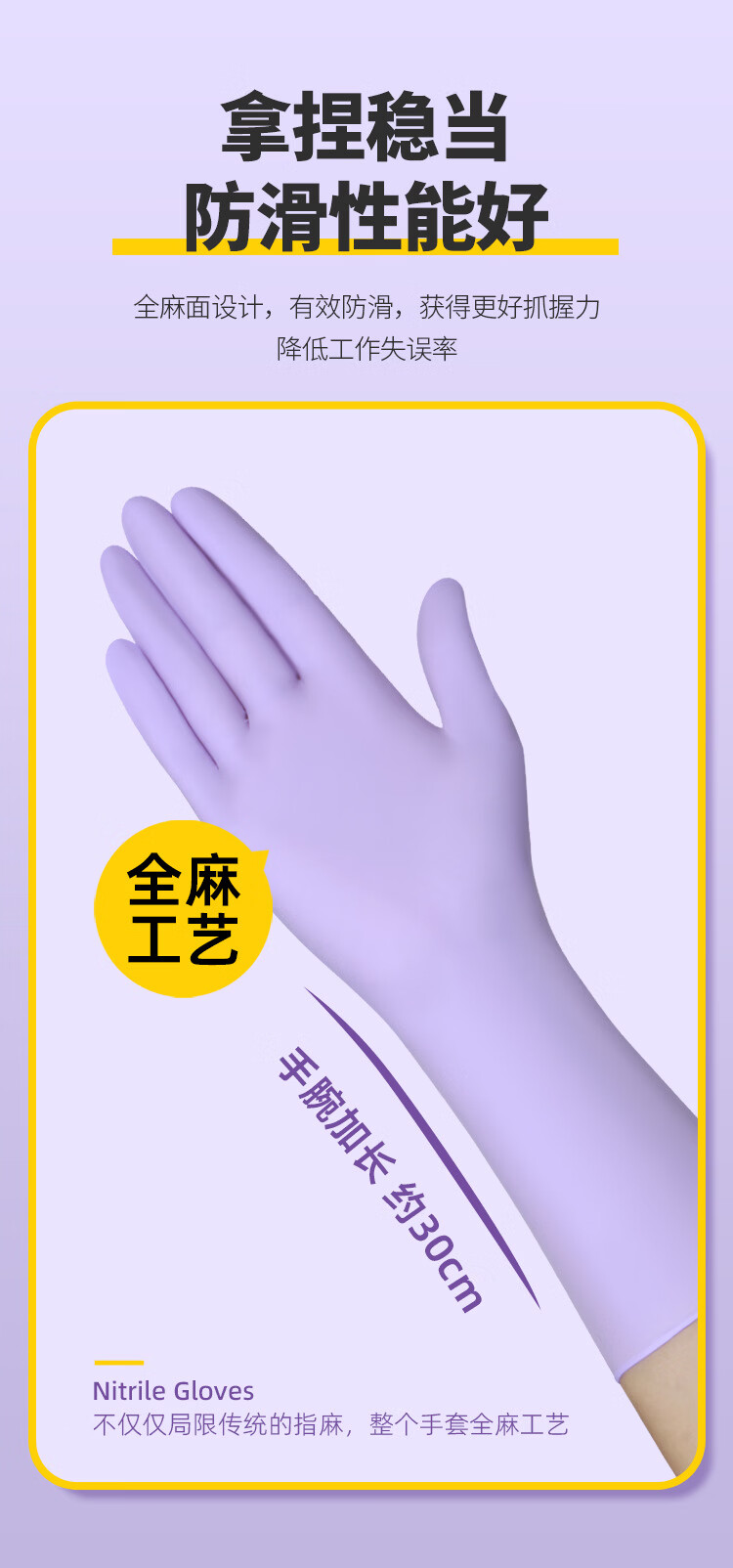 恬舒一次性丁腈手套加长加厚食品级12寸洗碗做家务清洁耐酸碱耐磨丁晴 【粉色】盒装12寸S号