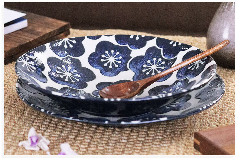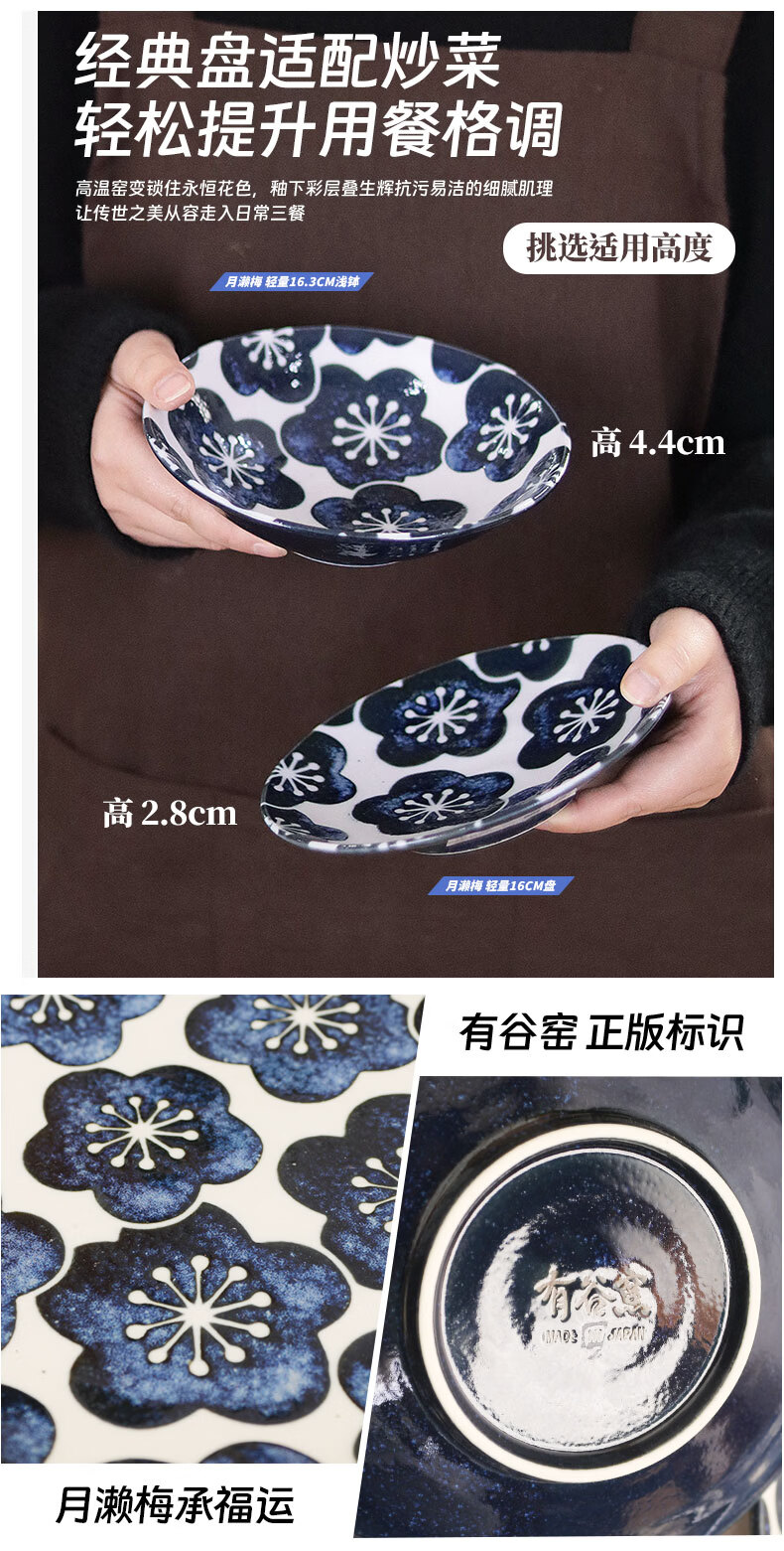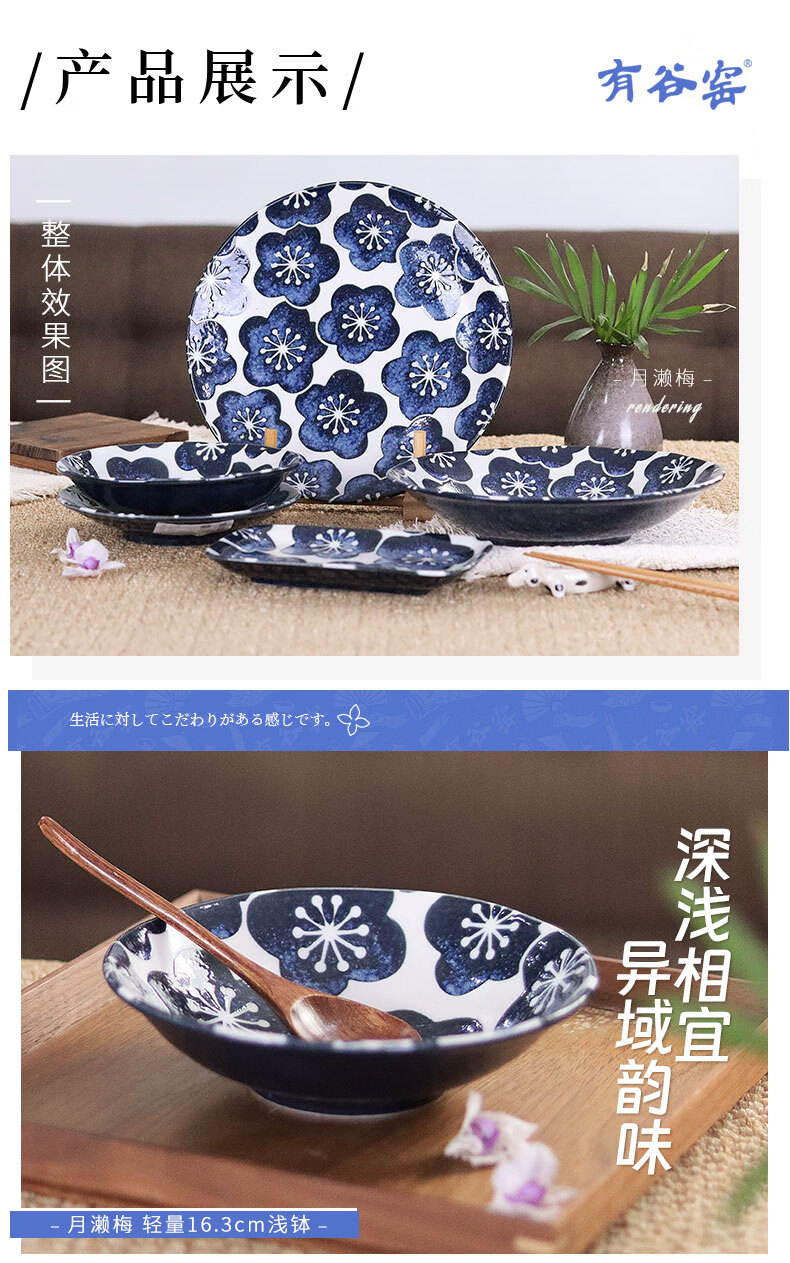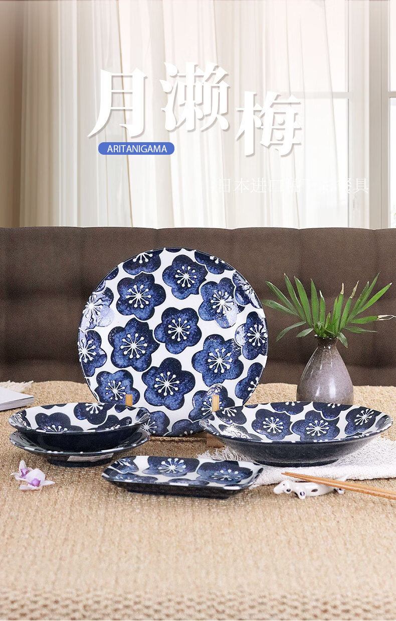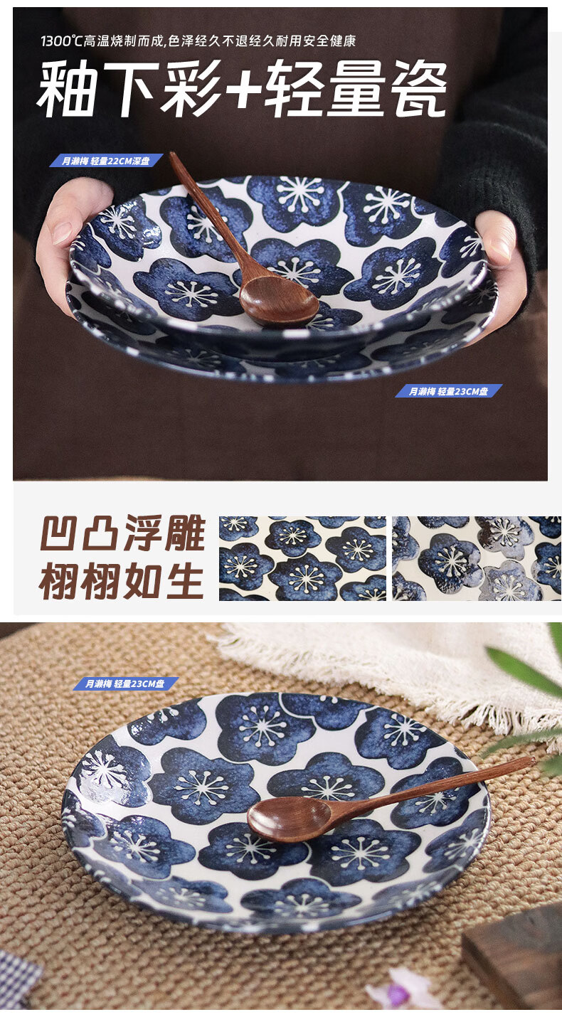 有谷窑日本进口月濑梅碗盘日式餐具简约高颜值釉下彩盘子精致碗陶瓷盘子 月濑梅 轻量23cm盘