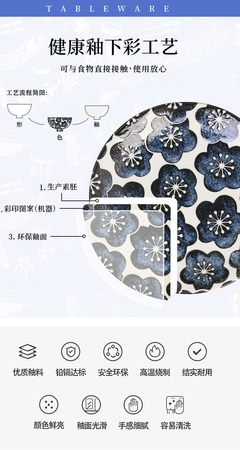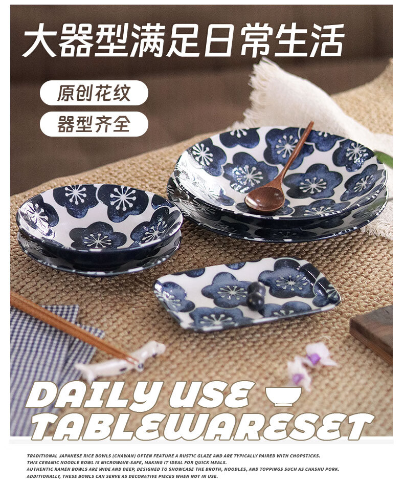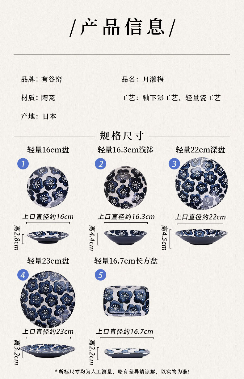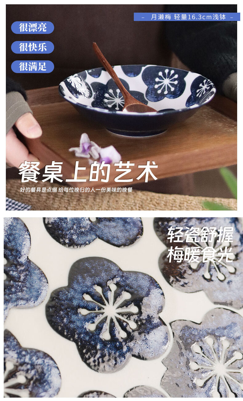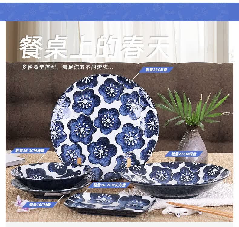 有谷窑日本进口月濑梅碗盘日式餐具简约高颜值釉下彩盘子精致碗陶瓷盘子 月濑梅 轻量23cm盘