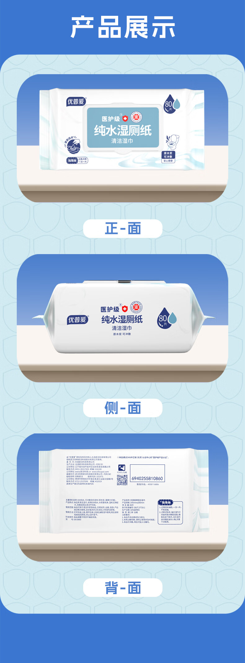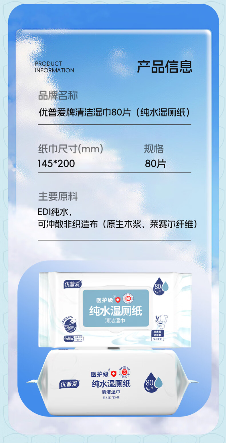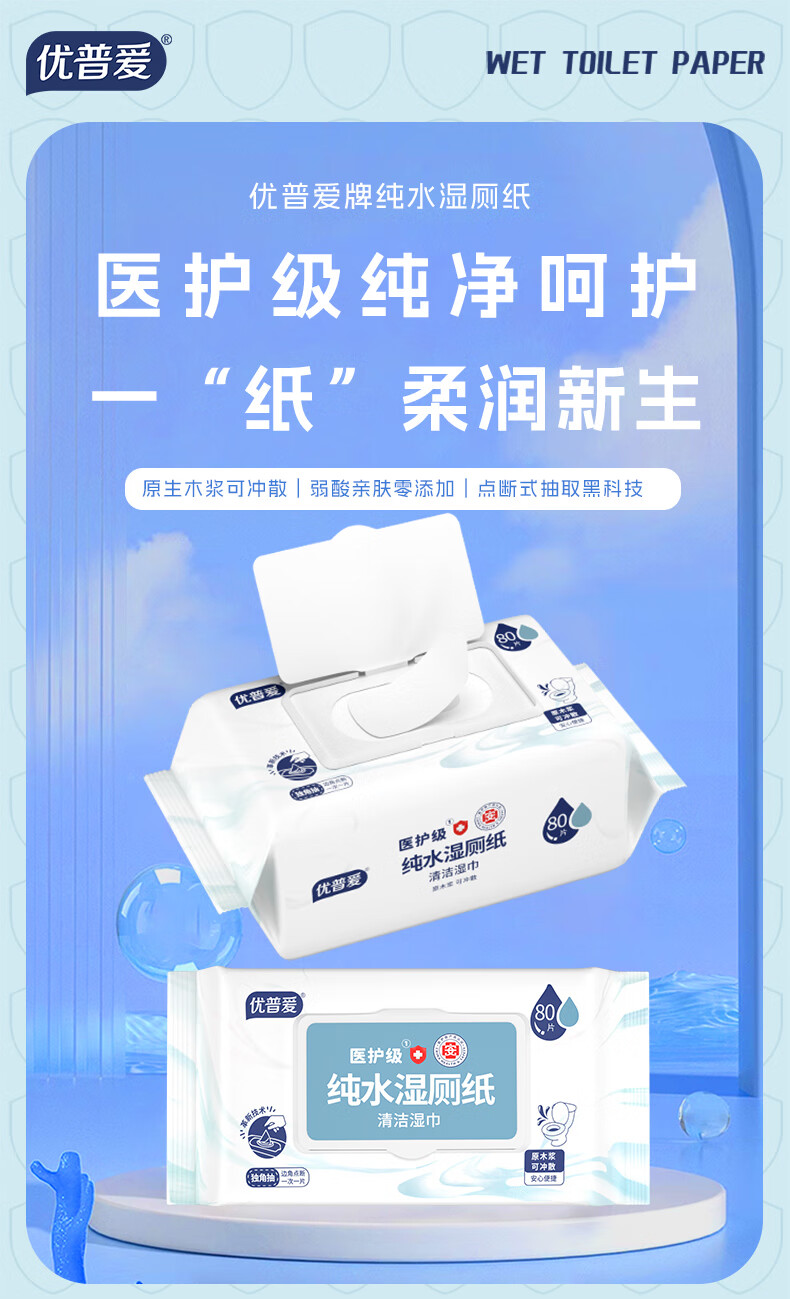 优普爱纯水湿厕纸医护级厕纸不连抽80片可冲散厕用卫生湿巾 纯水湿厕纸 80抽*1包 【家庭装】80抽*18包