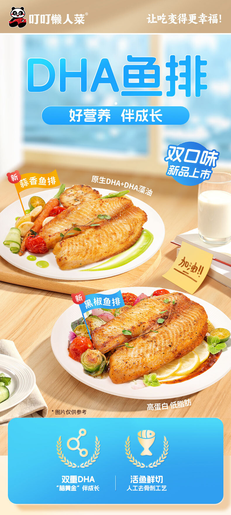 叮叮懒人菜DHA鱼排100g儿童早餐营养高蛋白半成品量贩装 预制菜年货 黑椒鱼排100g*5+蒜香鱼排100g*5