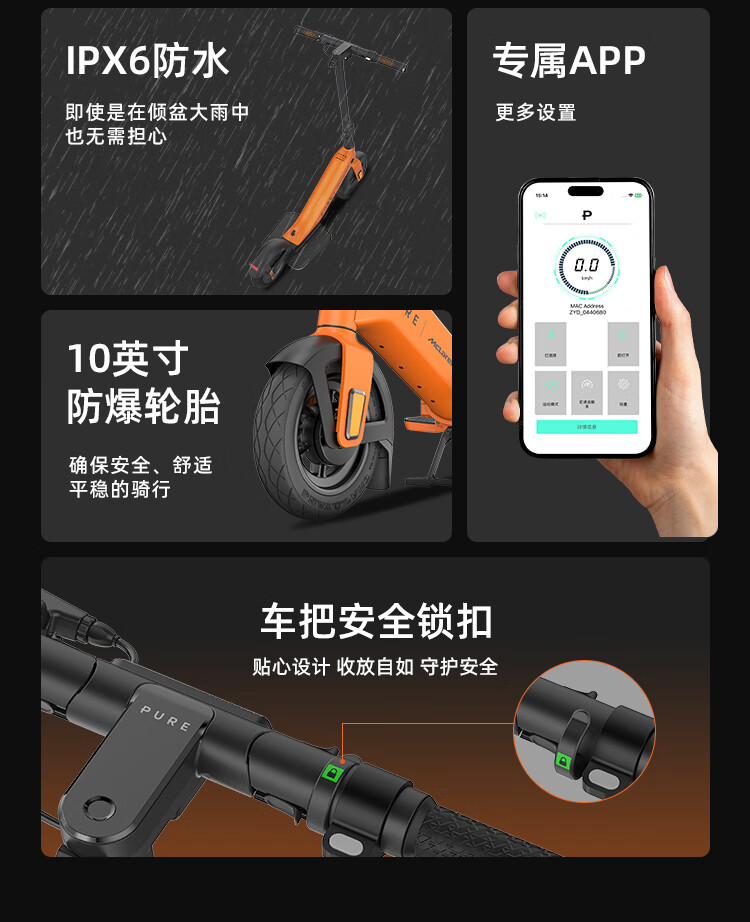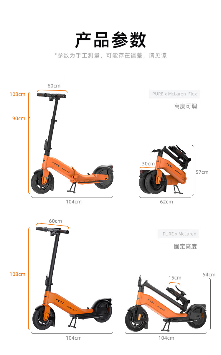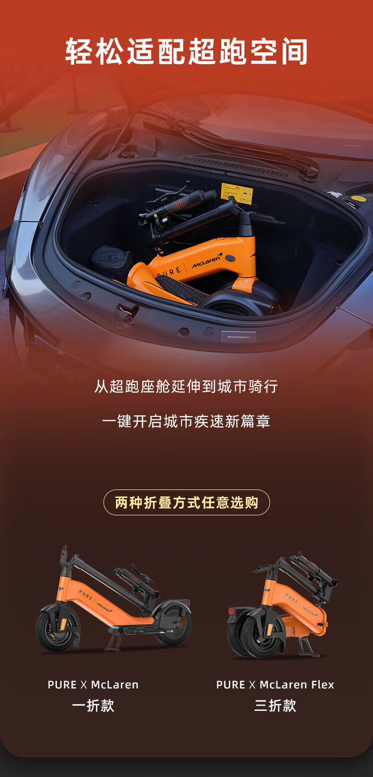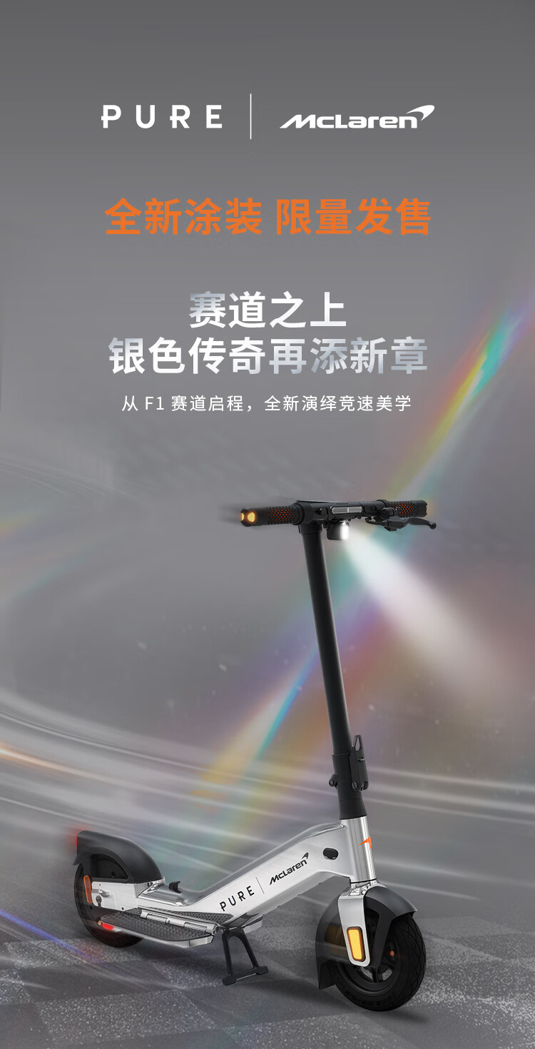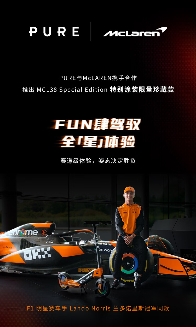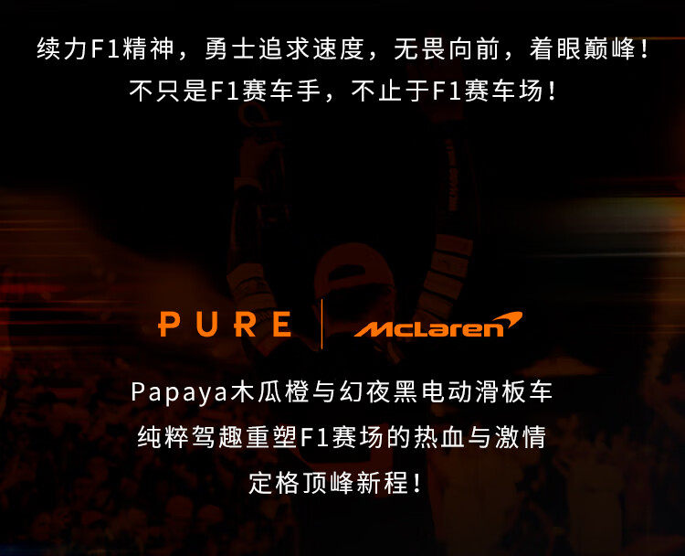 佩尚PURE x McLAREN合作款电动滑板车兰多诺里斯同款迈凯伦限量发售款 PURE x McLAREN 木瓜橙
