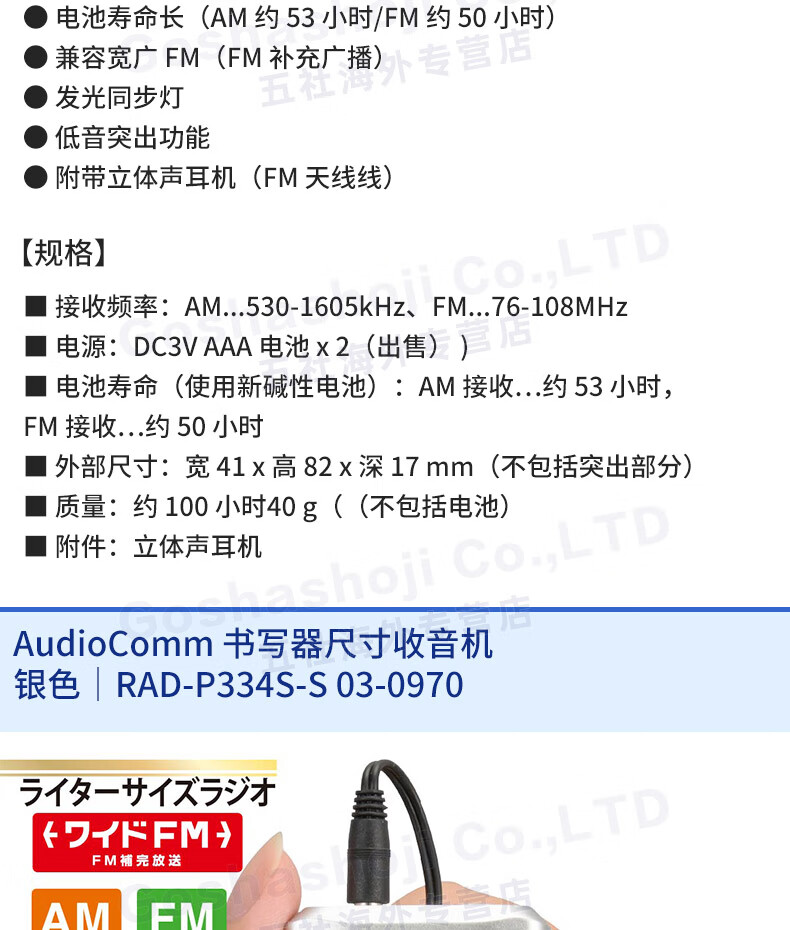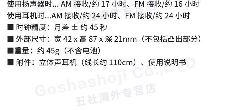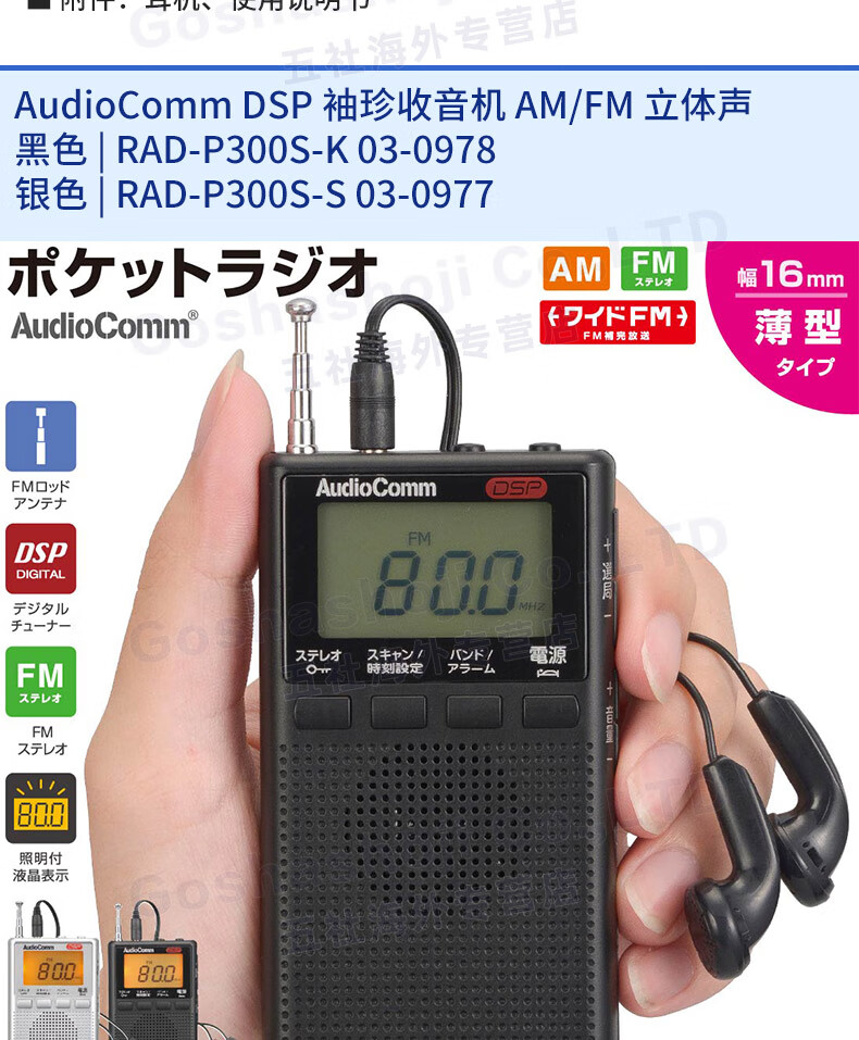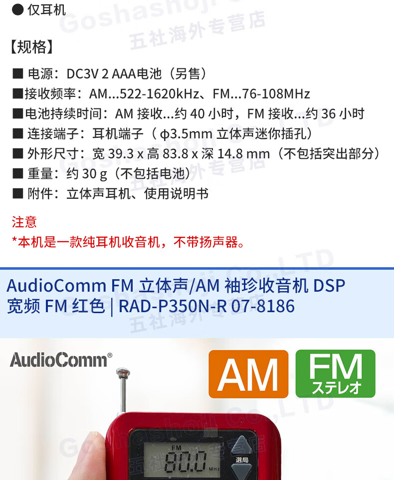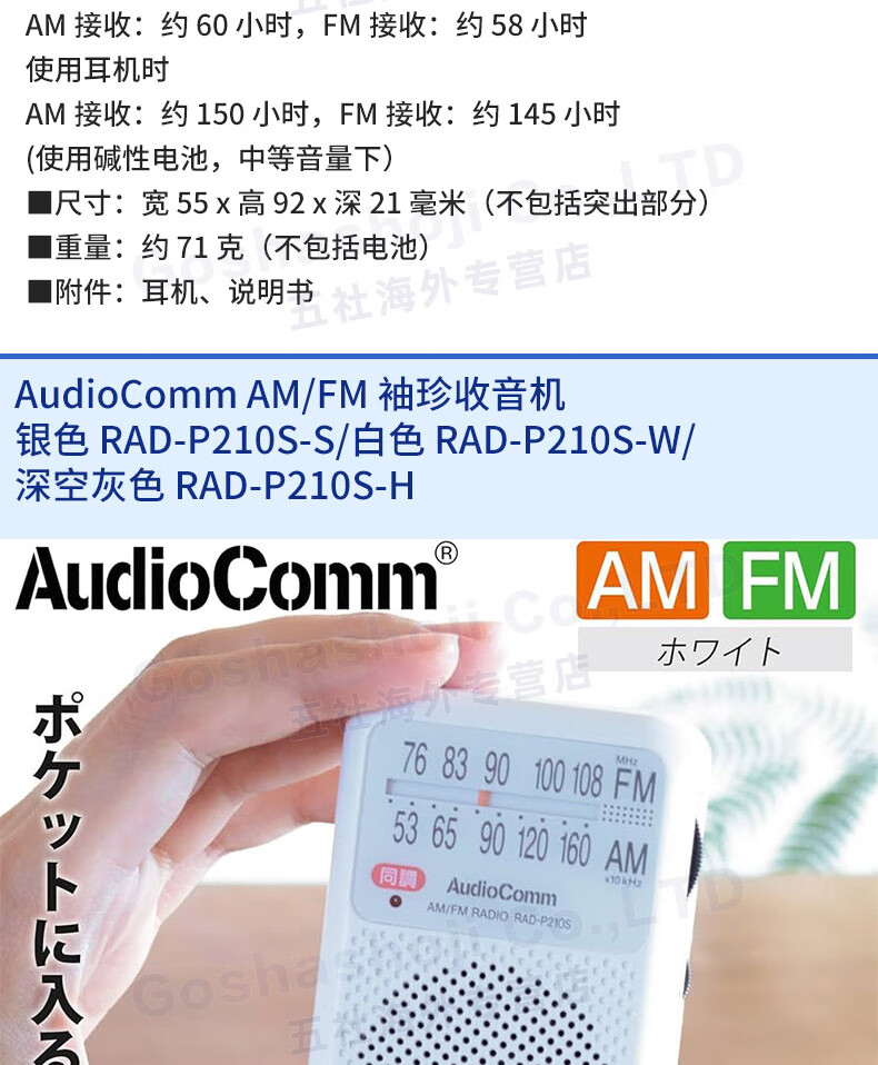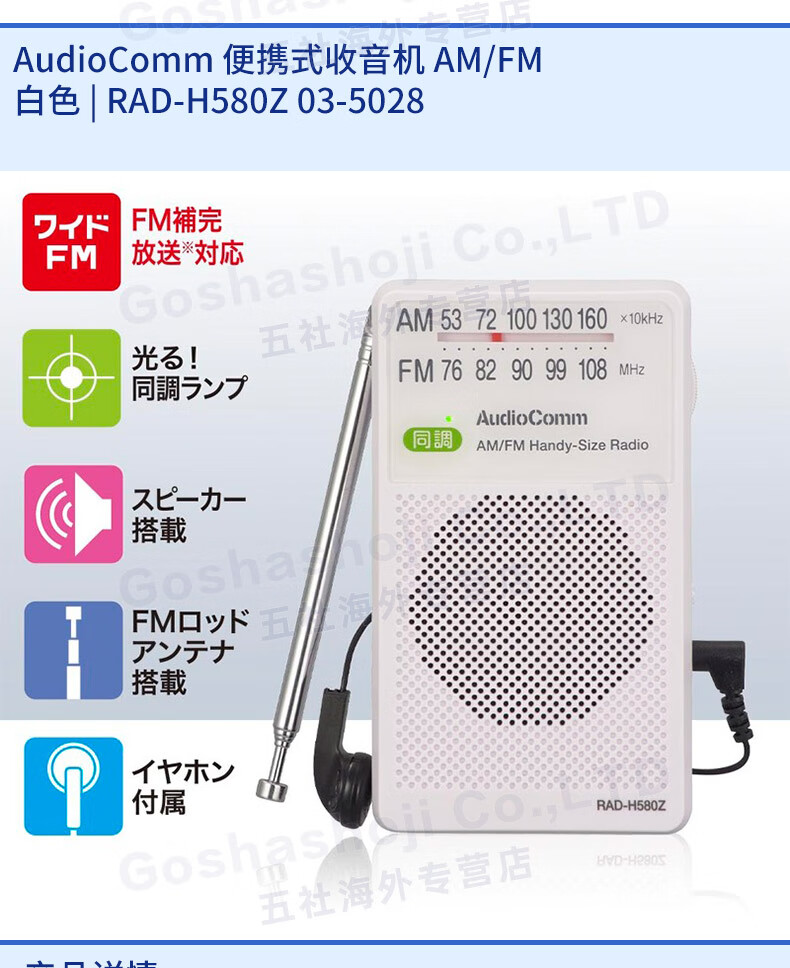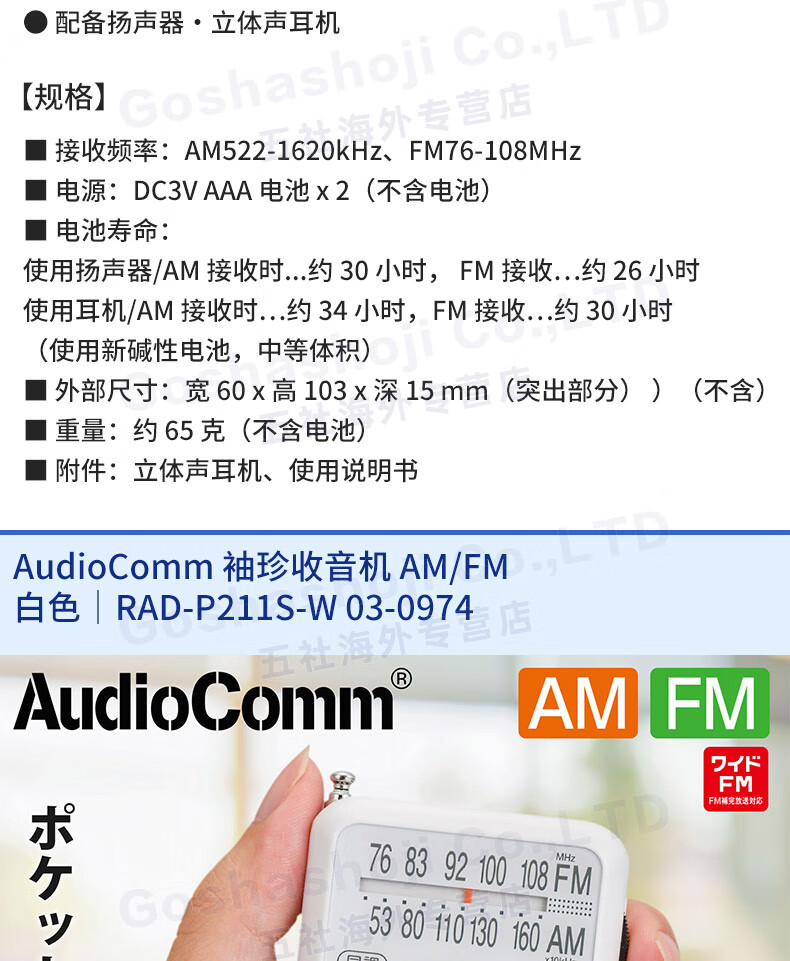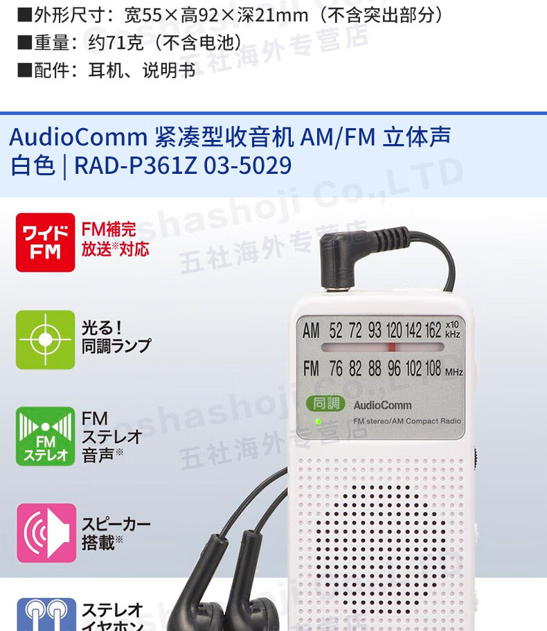 OHM【日本直邮】OHM欧姆电机FM\/AM迷你便携口袋式收音机 电池续航型 RAD-P350N-W【白色】