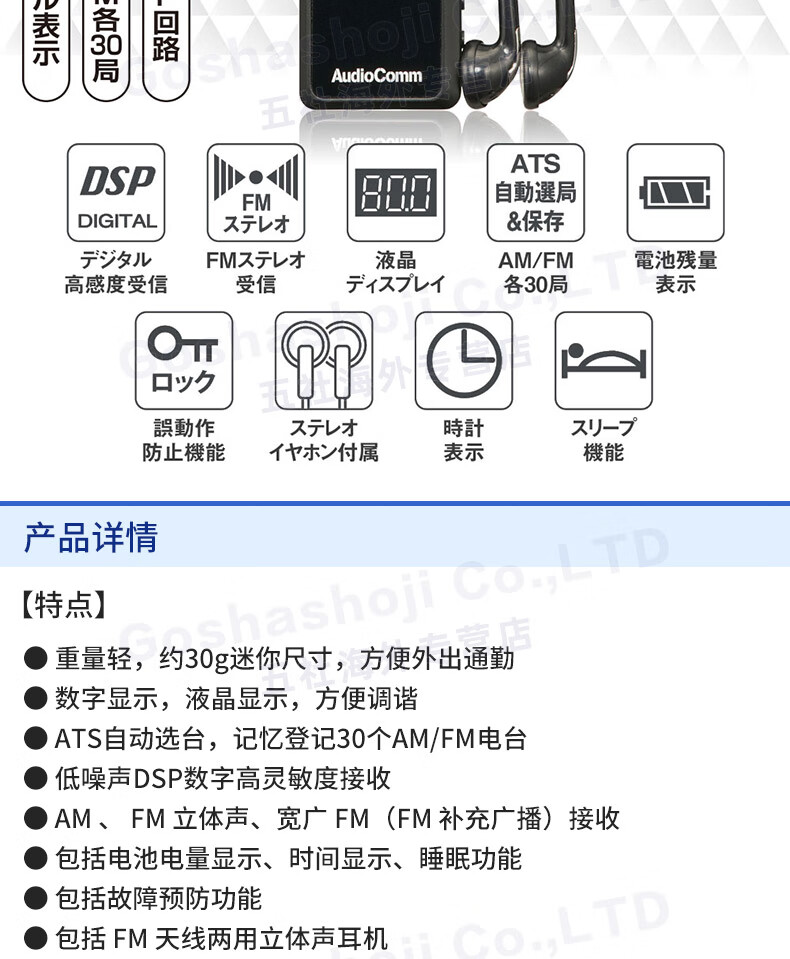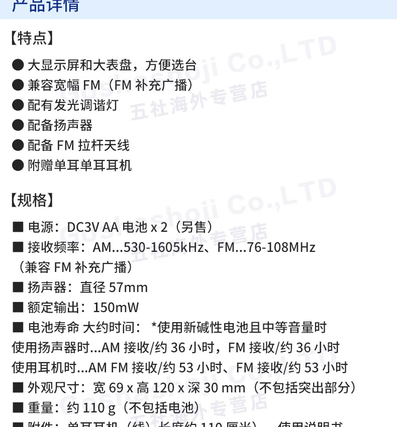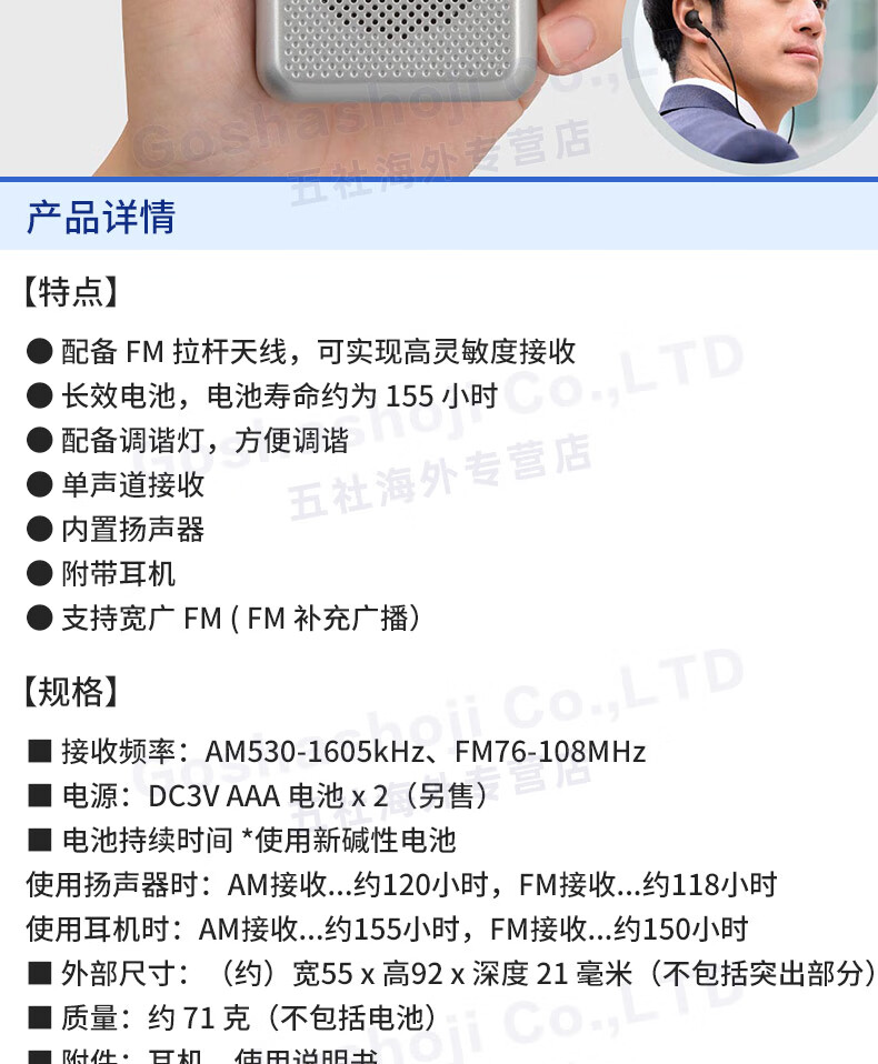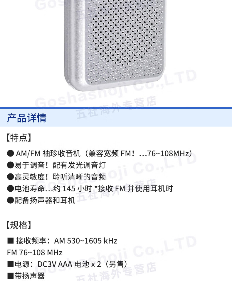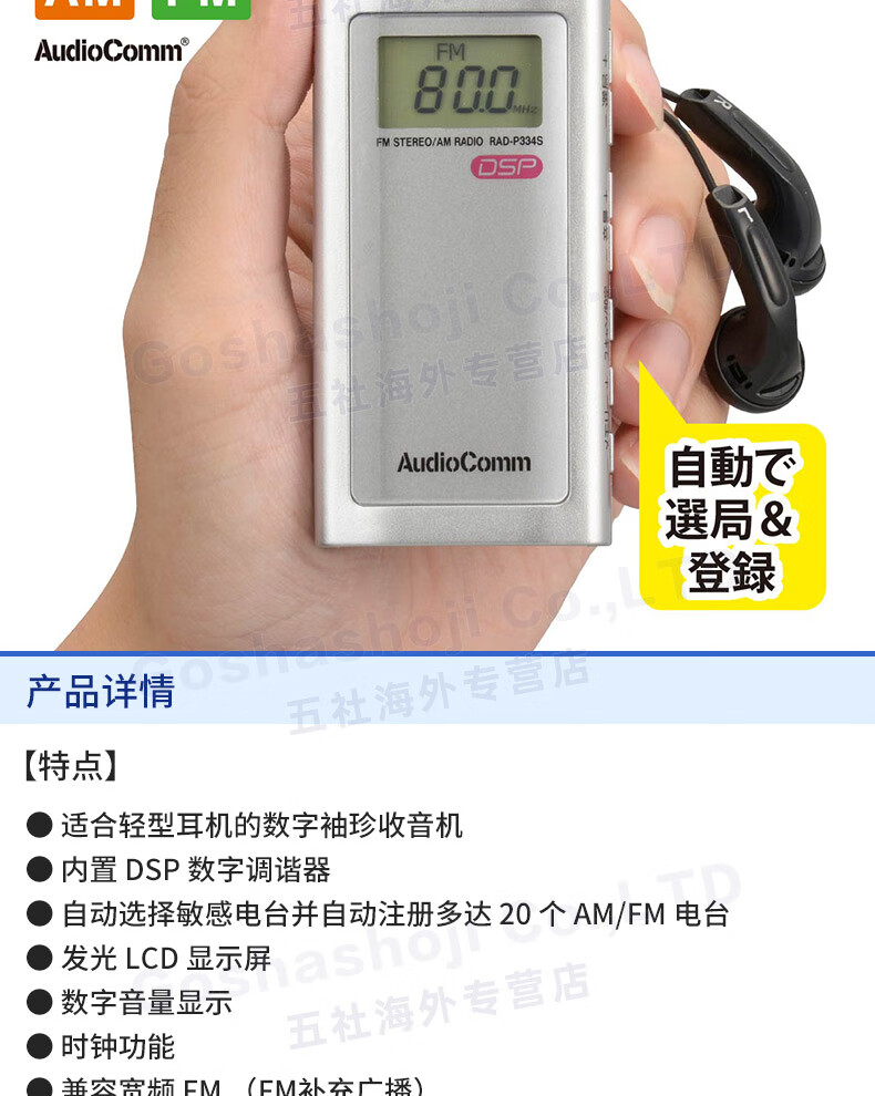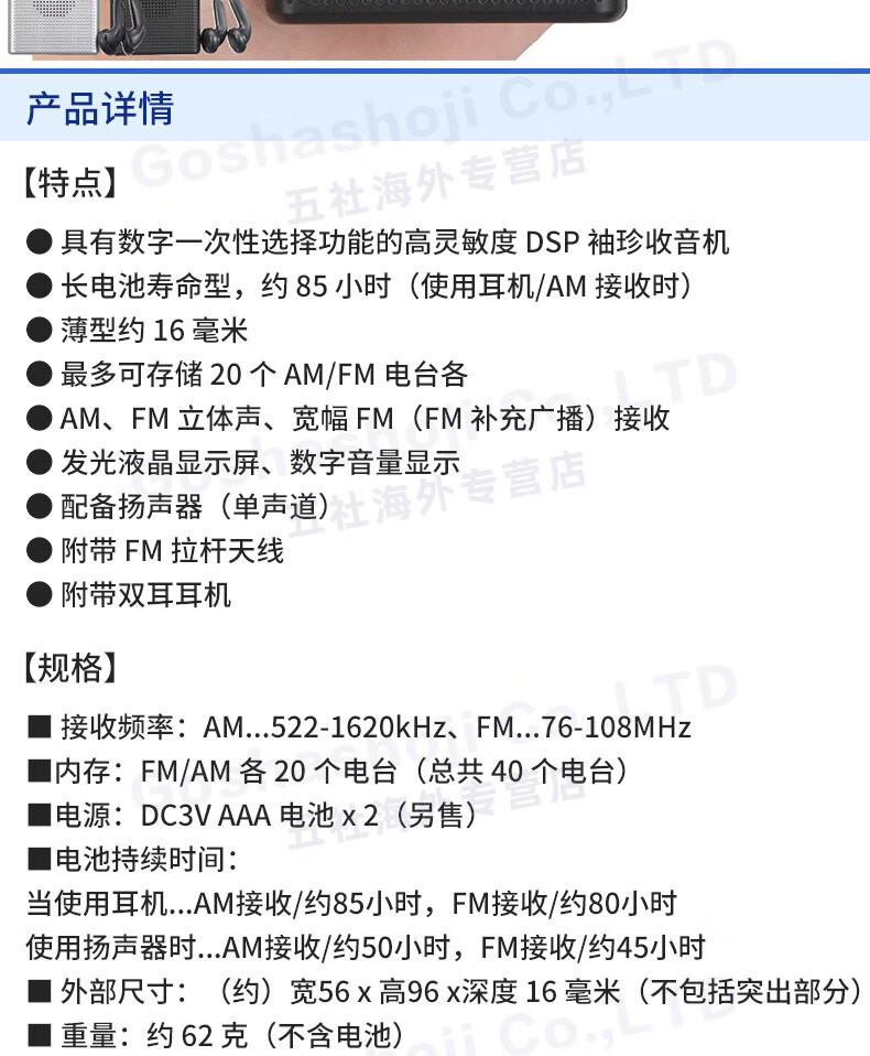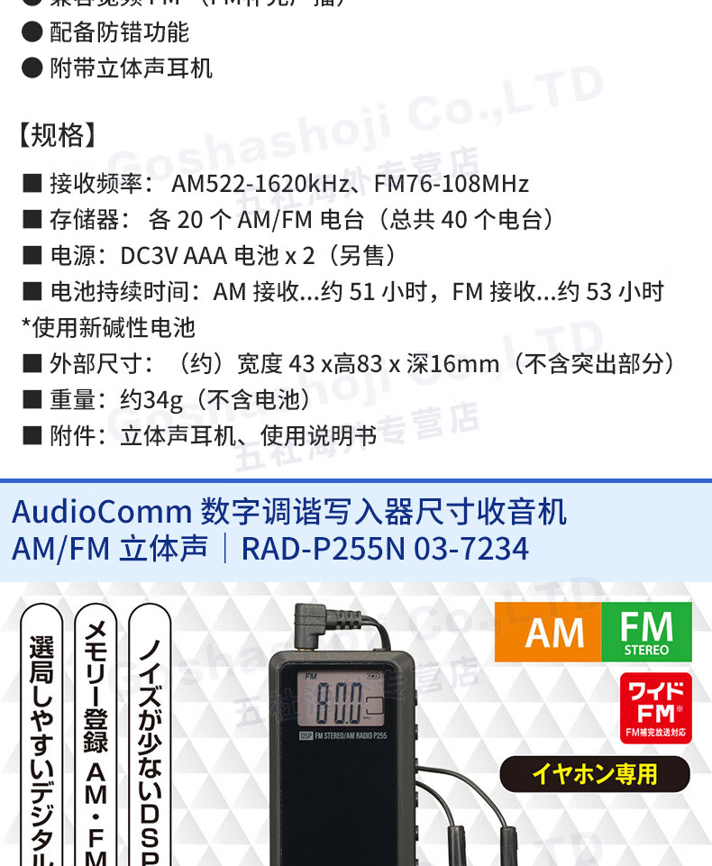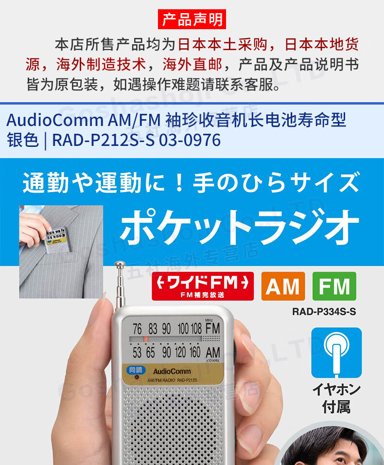 OHM【日本直邮】OHM欧姆电机FM\/AM迷你便携口袋式收音机 电池续航型 RAD-P350N-W【白色】