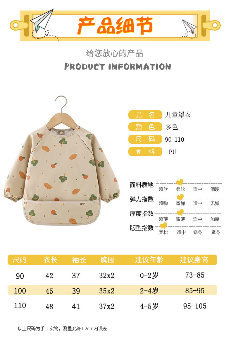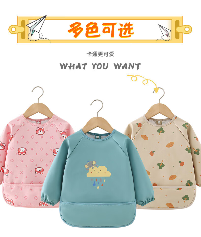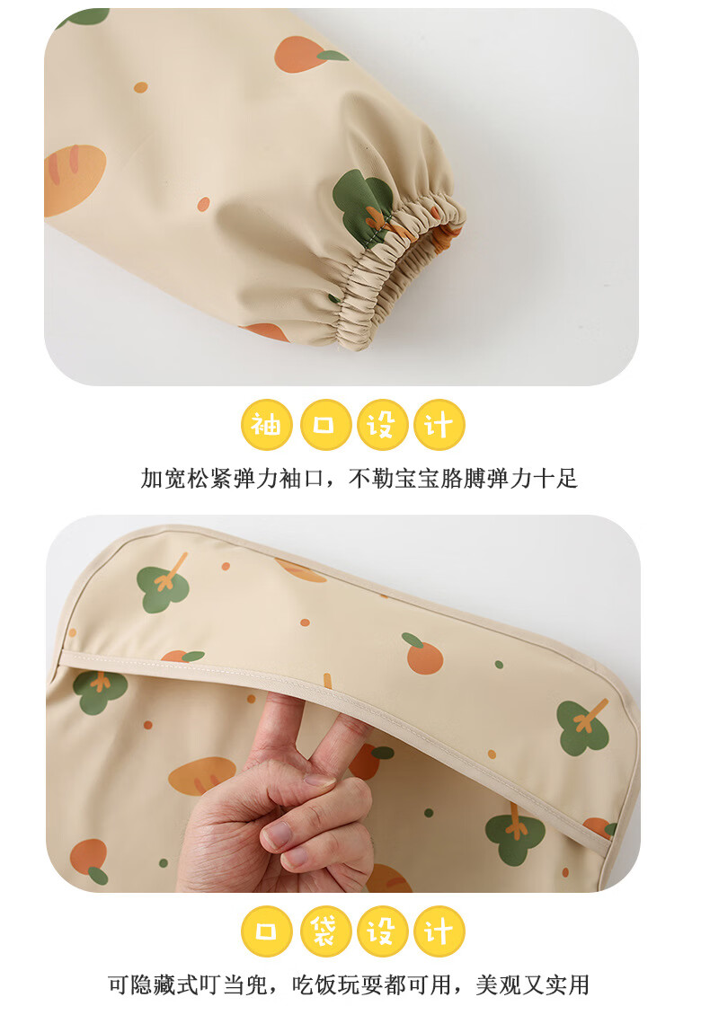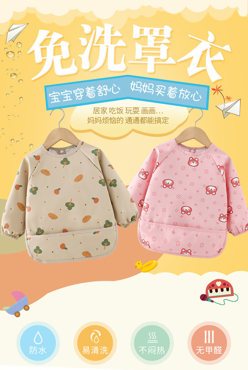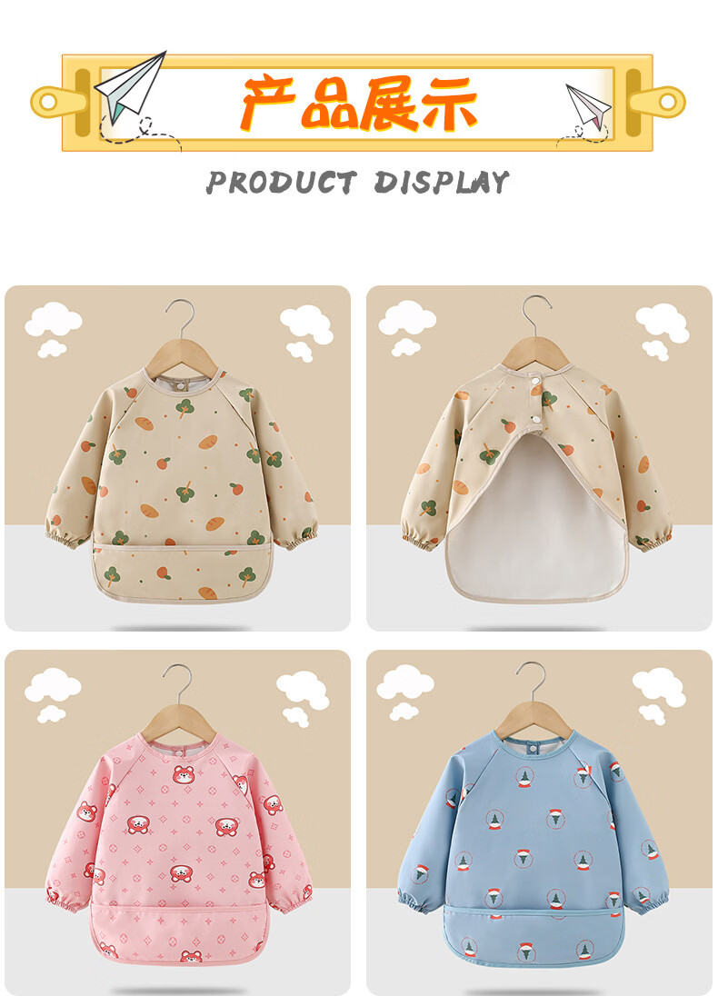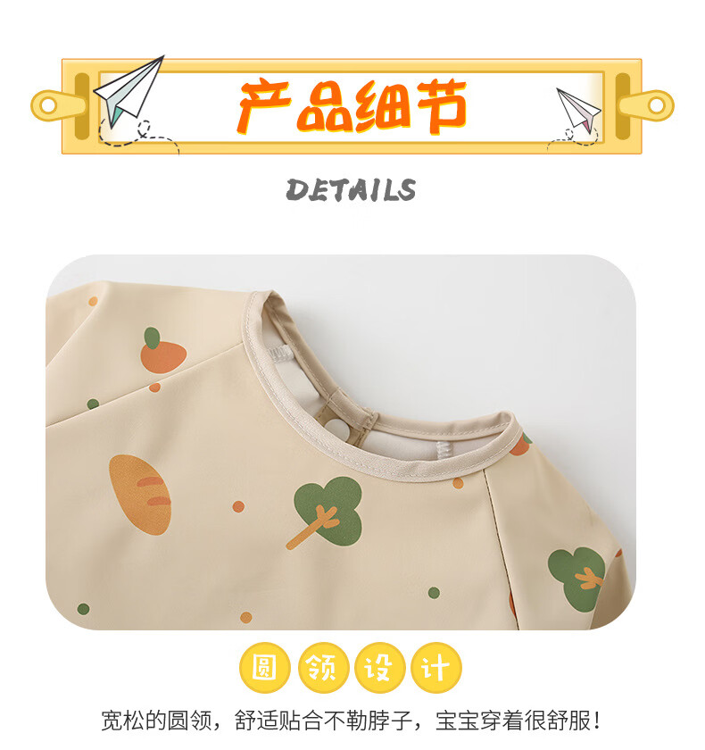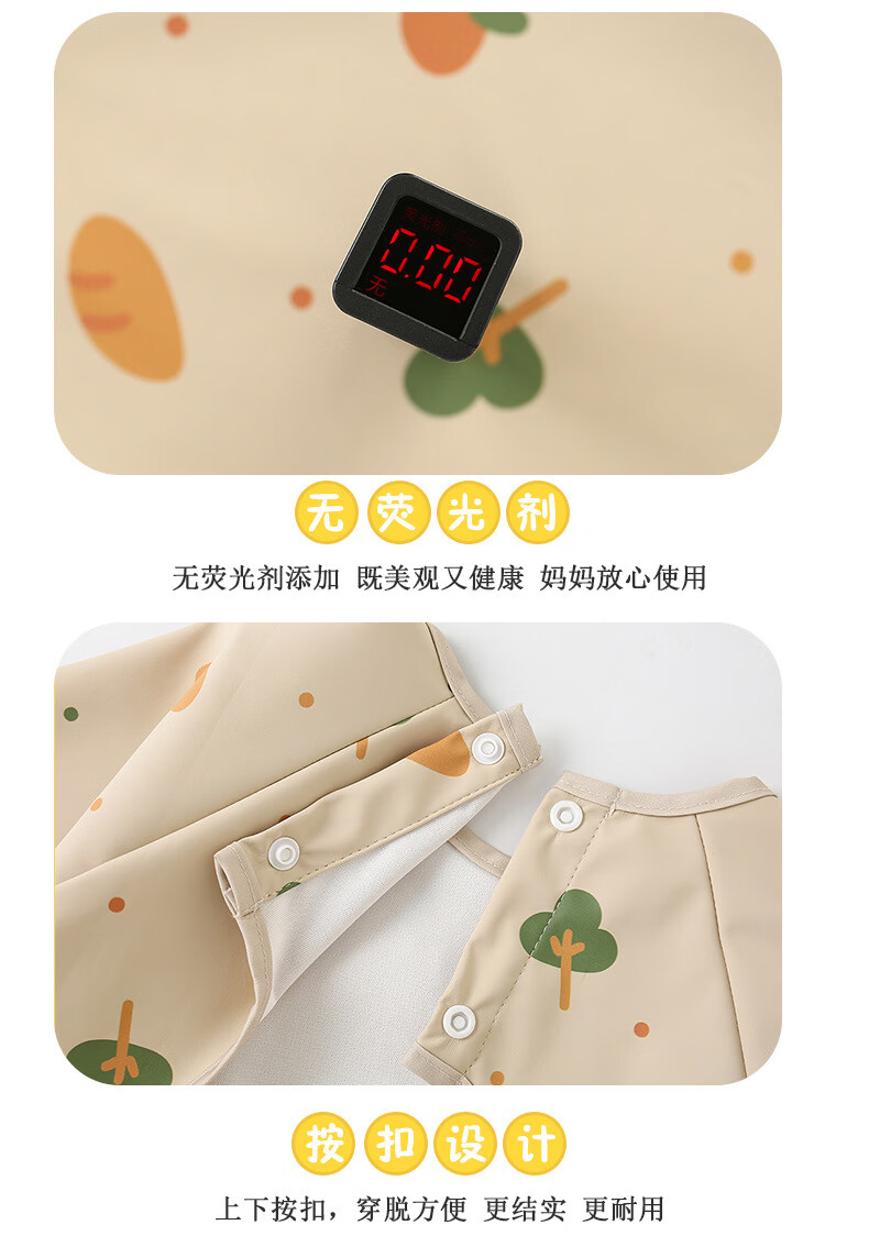 【直发】宝宝PU防水罩衣儿童吃饭围兜辅食反穿护衣幼儿园画画围裙 面包树 90码【建议73-85cm】