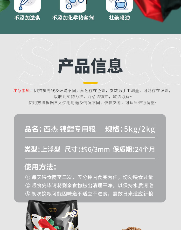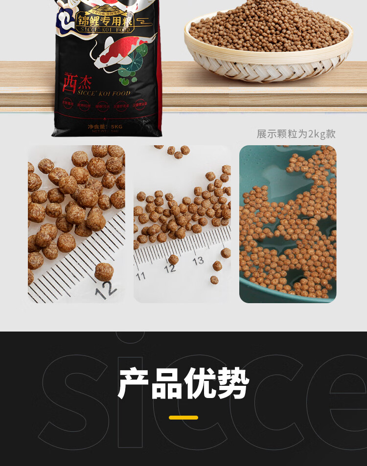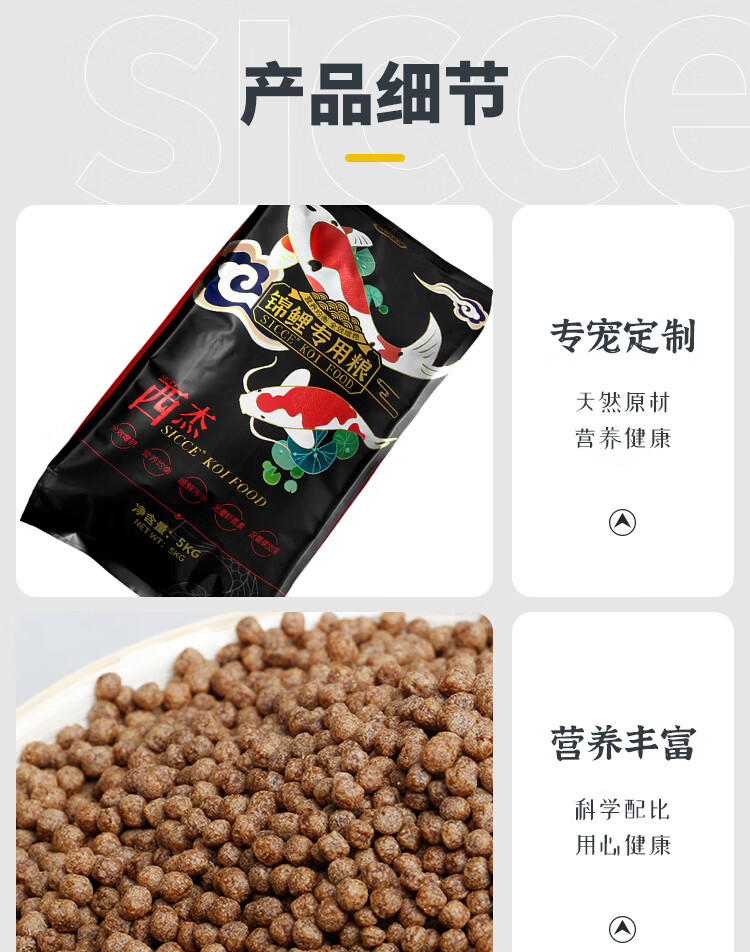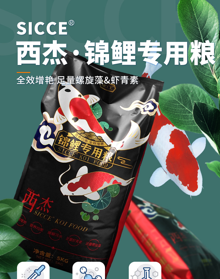 SICCE 锦鲤饲料专用鱼粮金鱼饲料大包颗粒鱼粮螺旋藻全效增艳金鱼鱼食 锦鲤专用2kg小粒3mm(适合8cm以上)