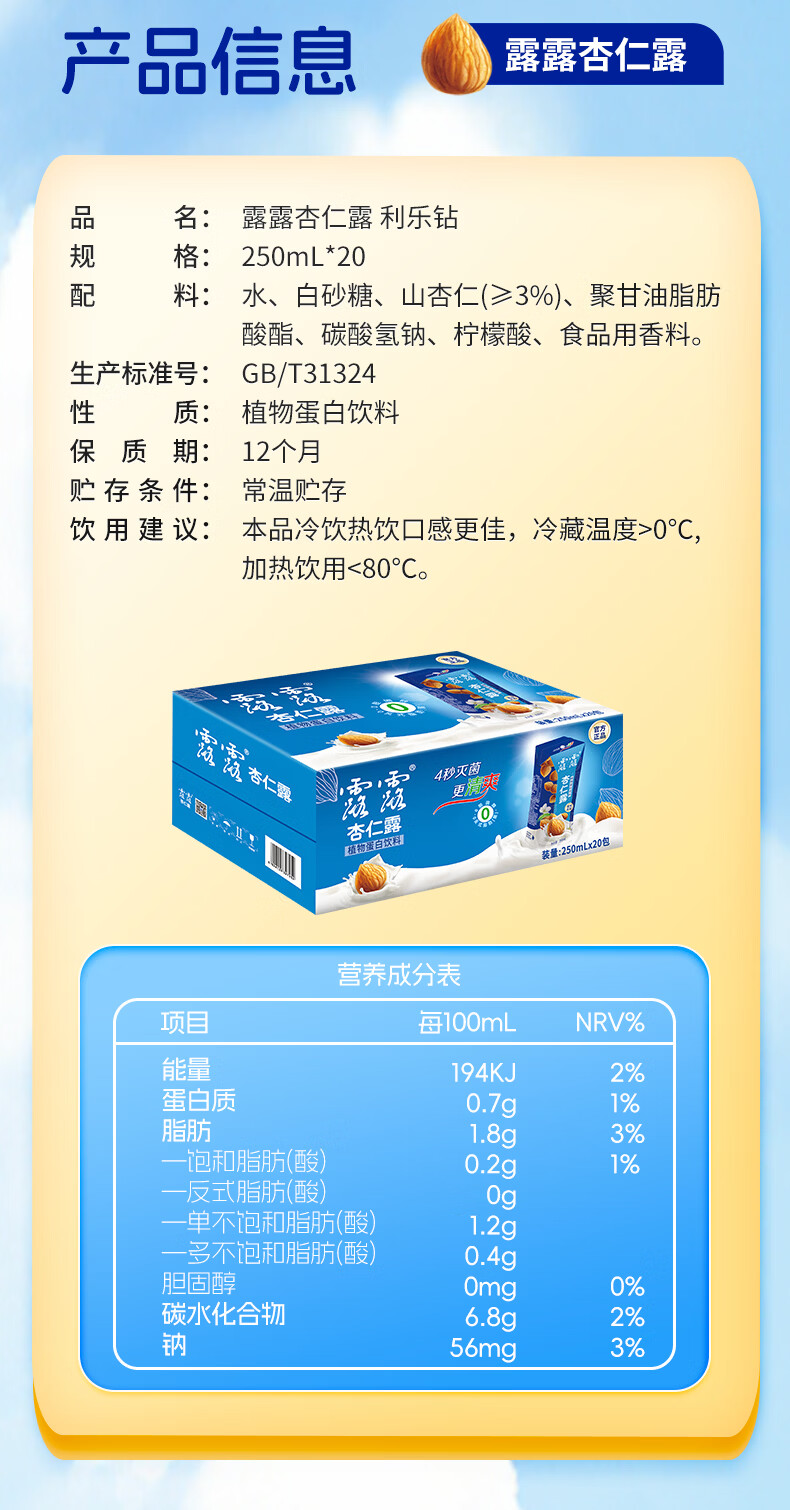 露露杏仁露经典250mL*20利乐钻整箱杏仁植物蛋白营养送礼早餐代餐 250mL*20