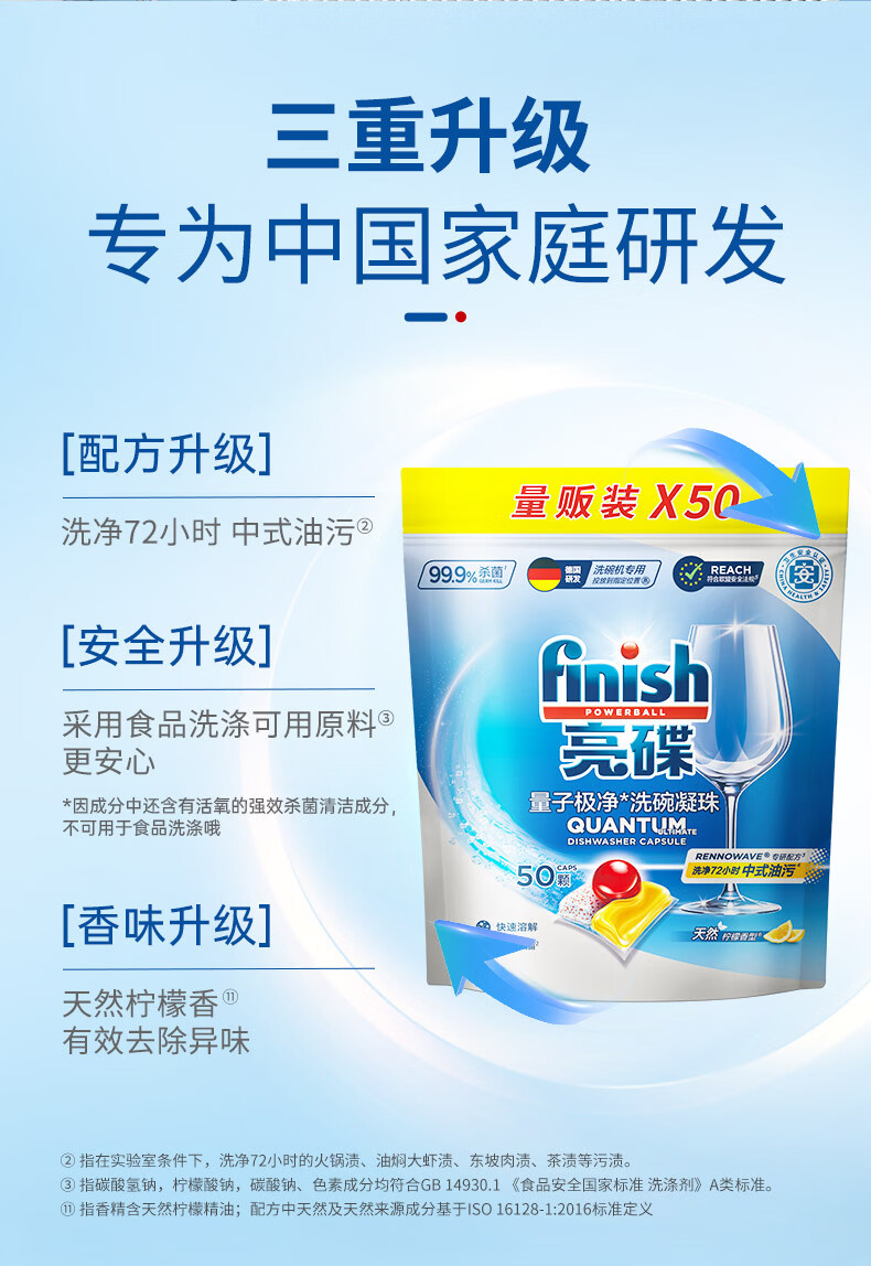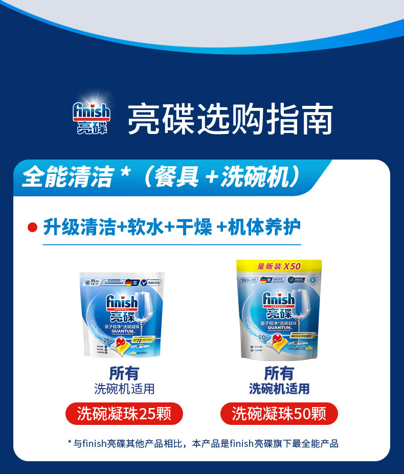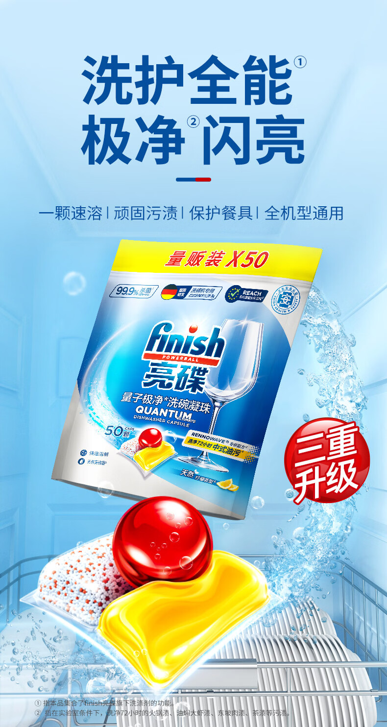 亮碟(finish)洗碗机专用洗碗凝珠洗碗块洗碗粉清洁剂洗碗凝珠三合一亮碟剂 洗碗凝珠50颗*2袋