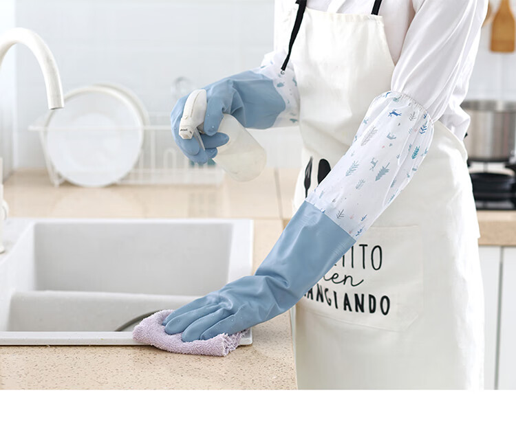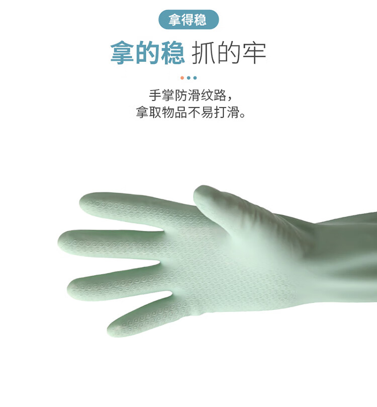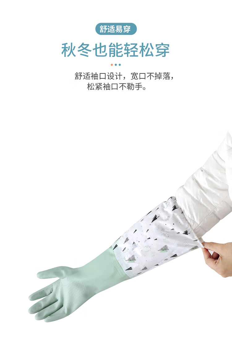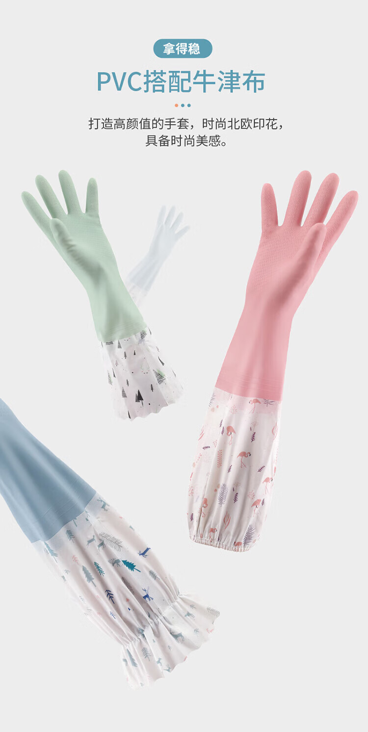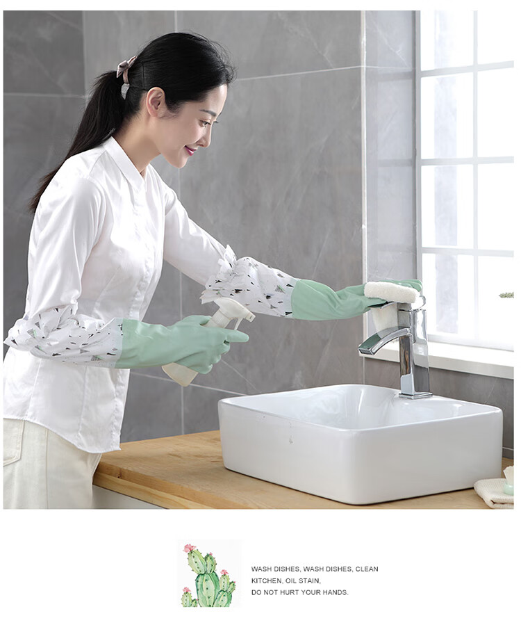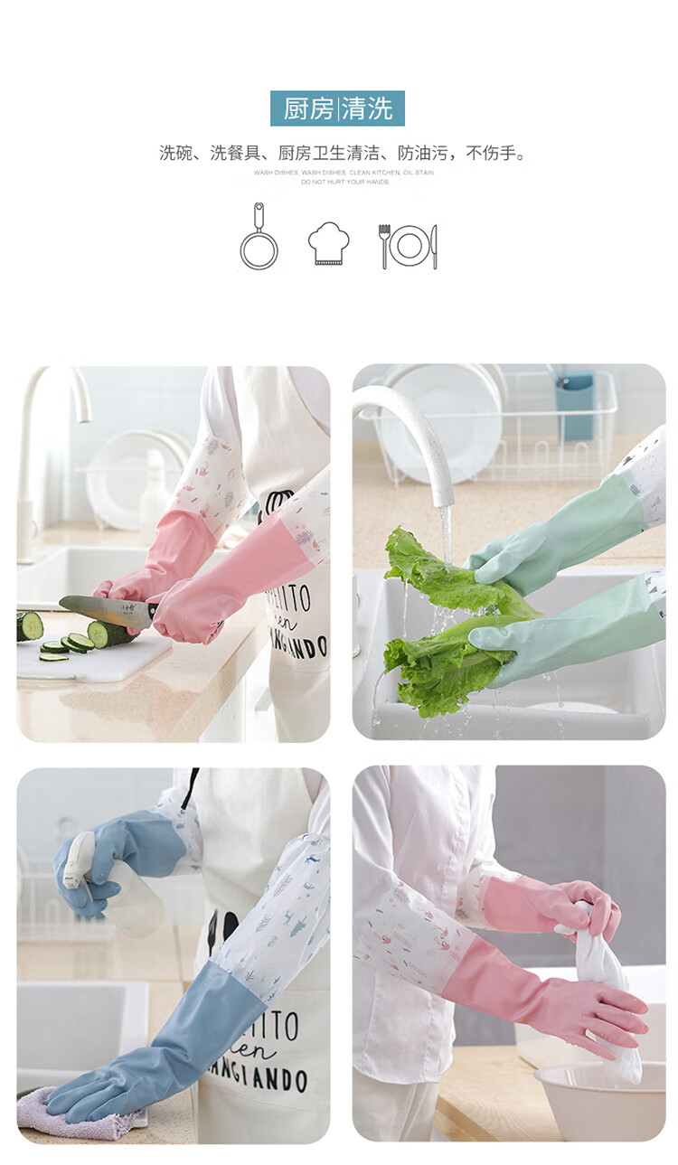 雅高长款洗碗手套均码家务清洁橡胶手套防水耐磨厨房袖套 夏季短款手套3双装