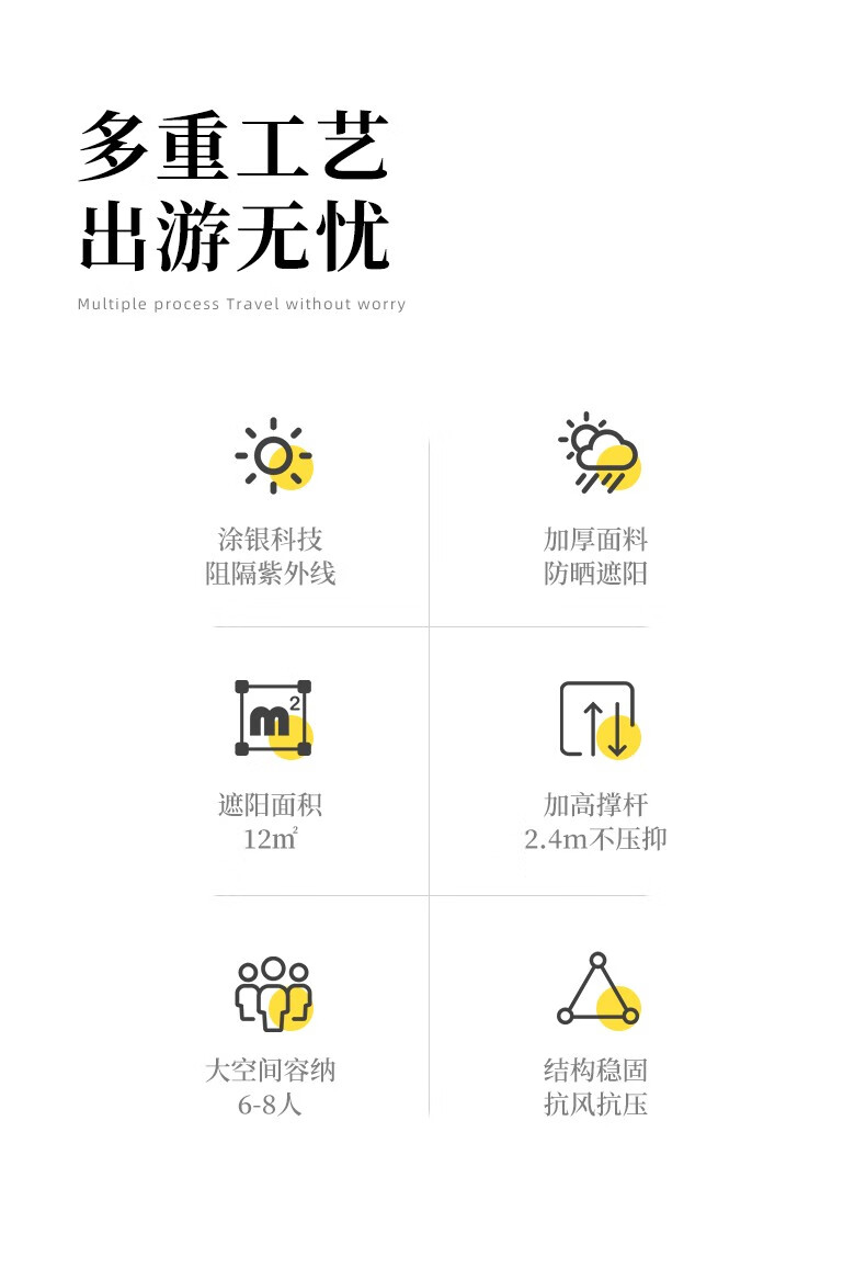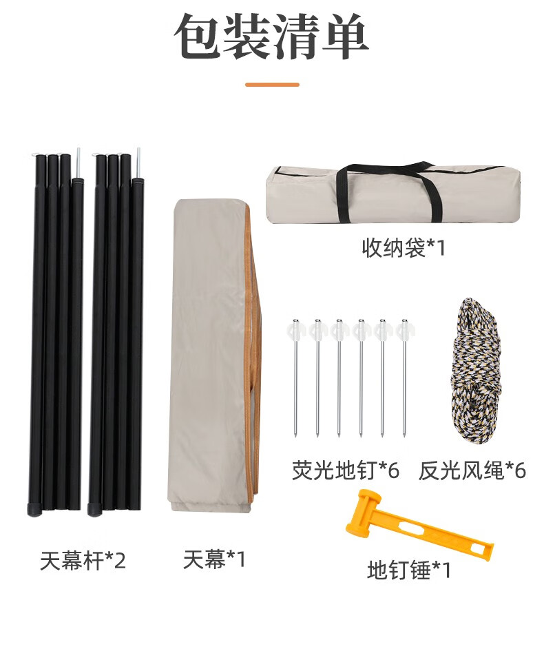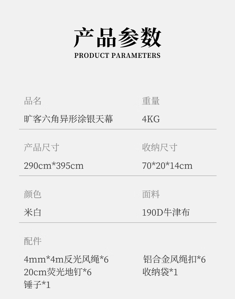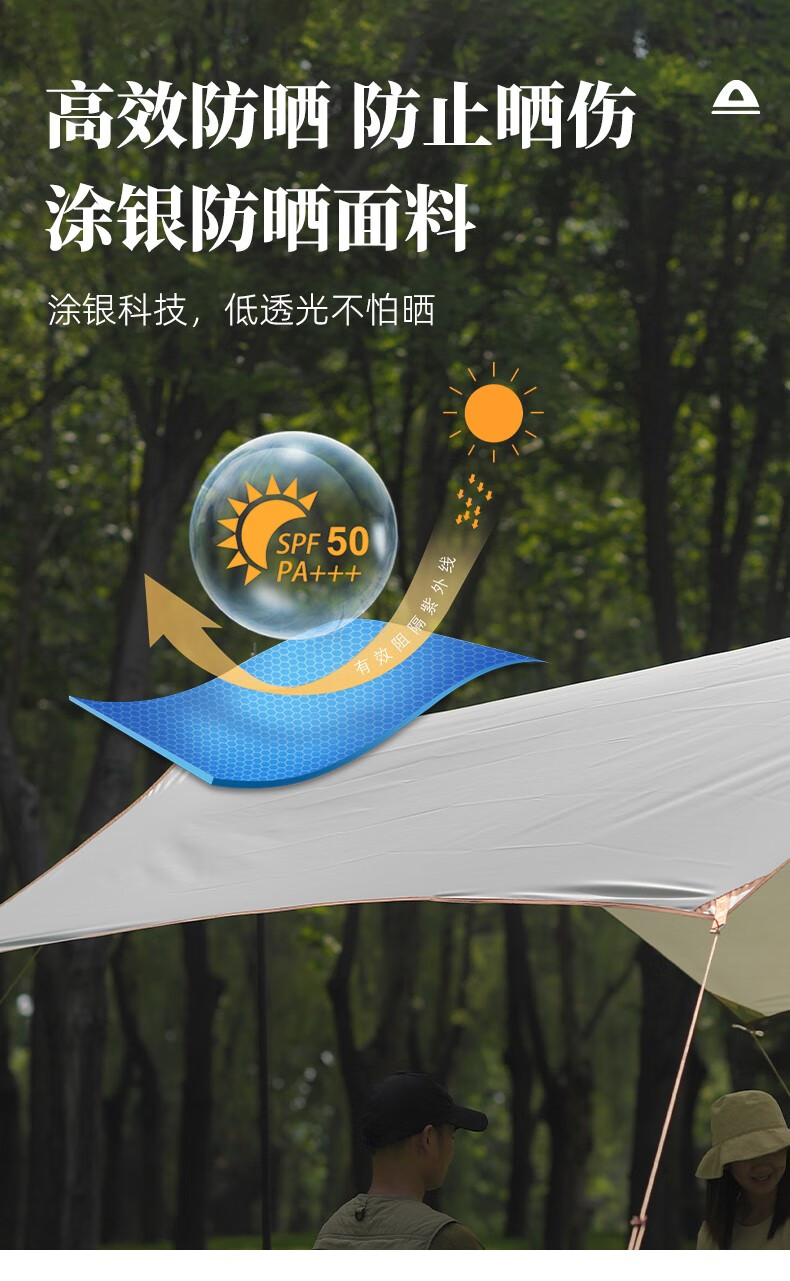 旷客旷客户外露营天幕六角蝶形涂银防晒遮阳压胶防水防紫外线异形天幕 豪华款-流沙金涂银款3*4六角蝶形