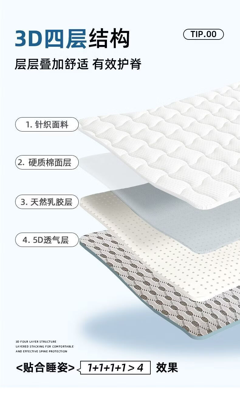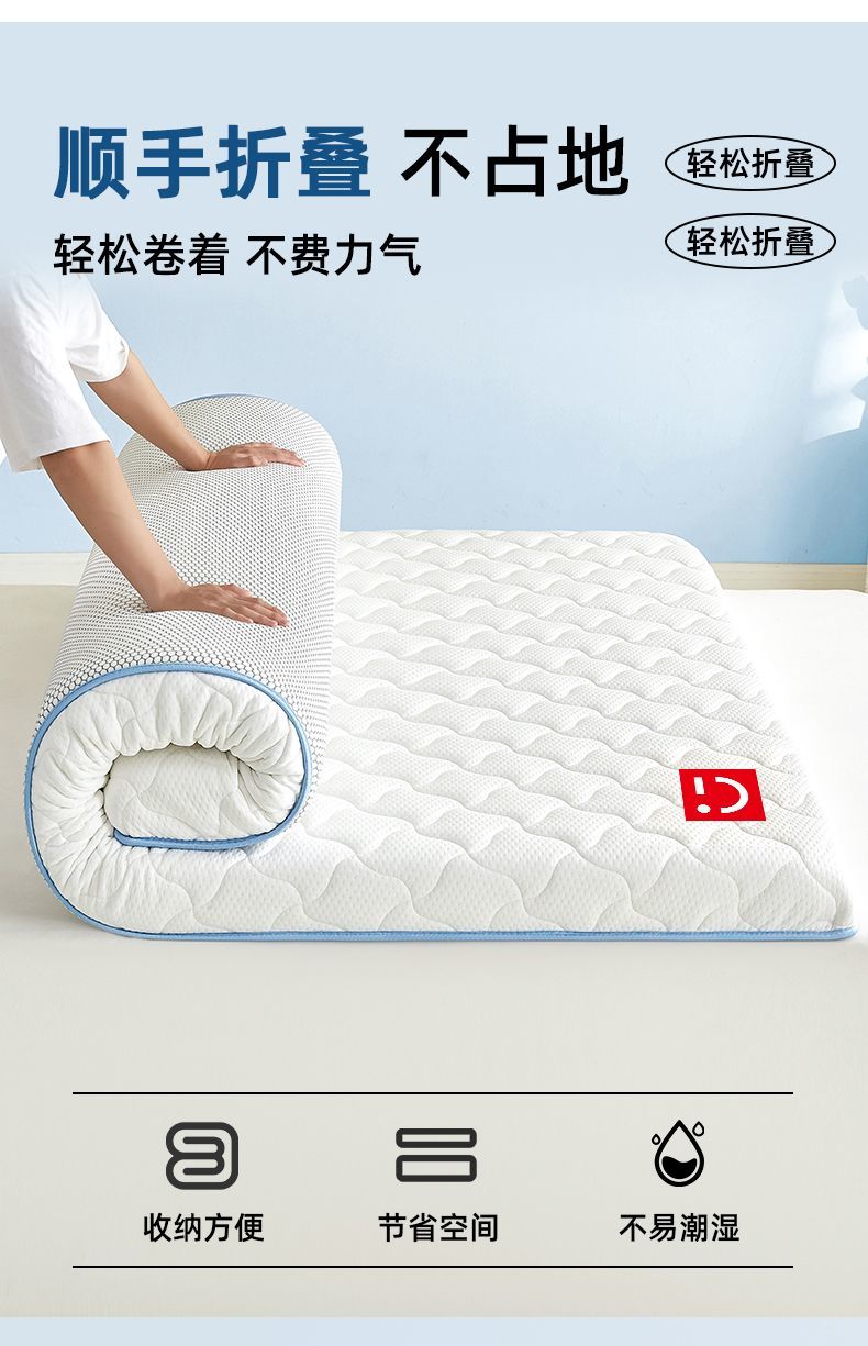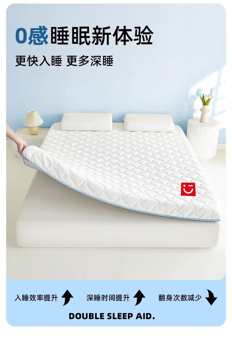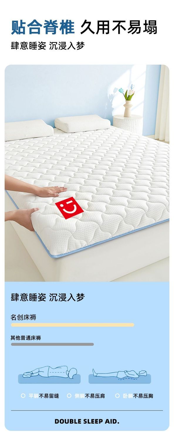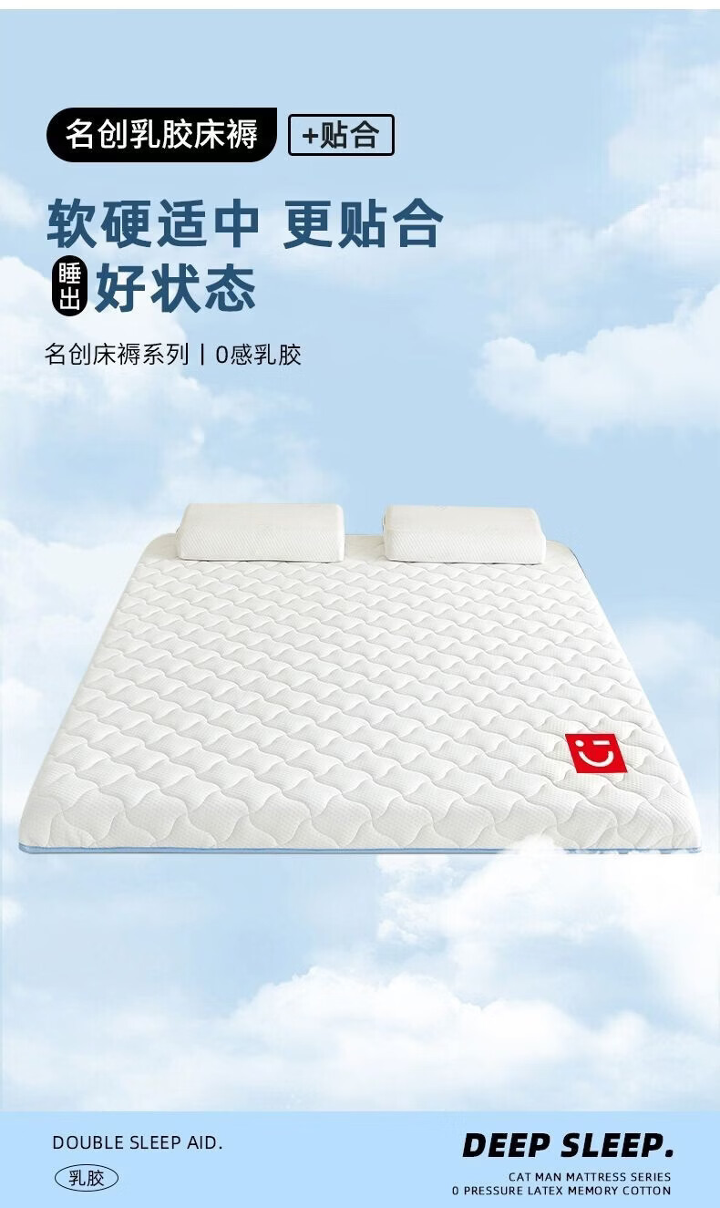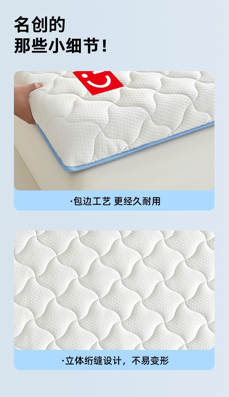 名创优品(MINISO)乳胶床垫遮盖物1.5x2米 床褥垫子软垫海绵垫单双人宿舍褥子垫背 风车灰-灰边厚约5cm 150cm*200cm-双人床