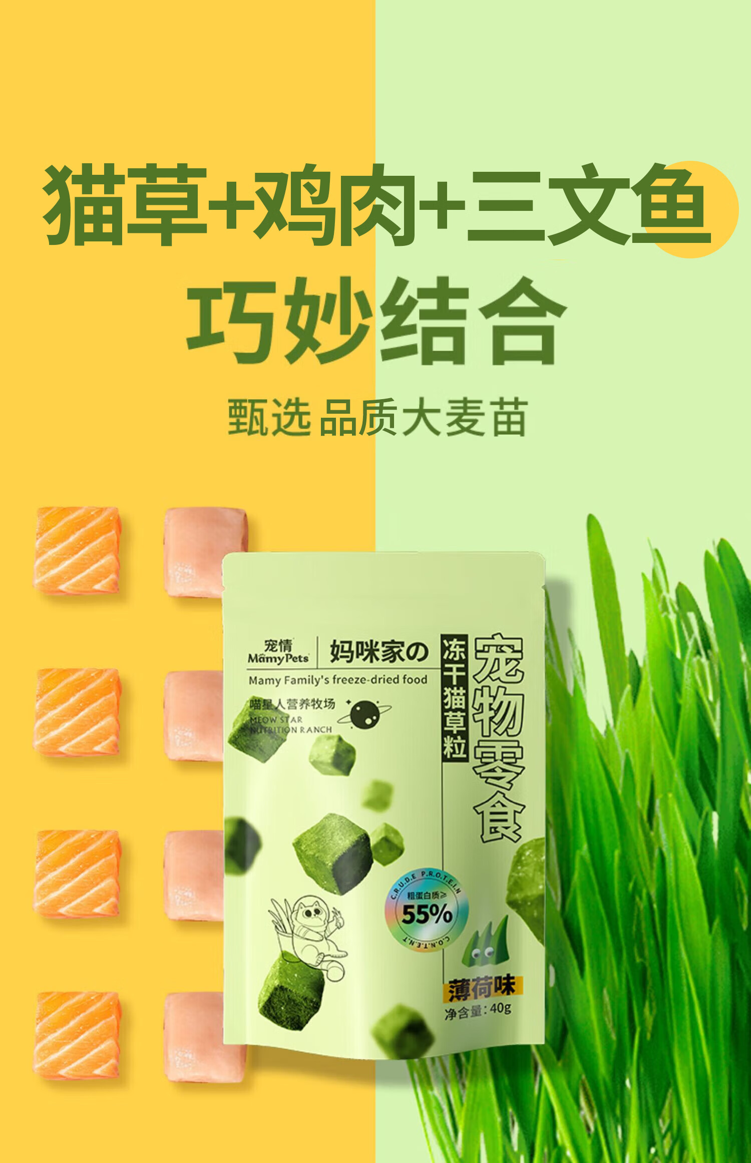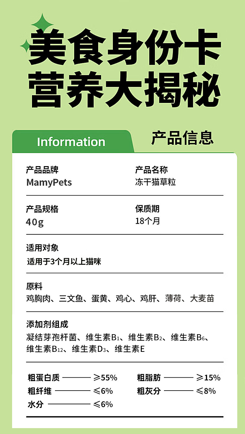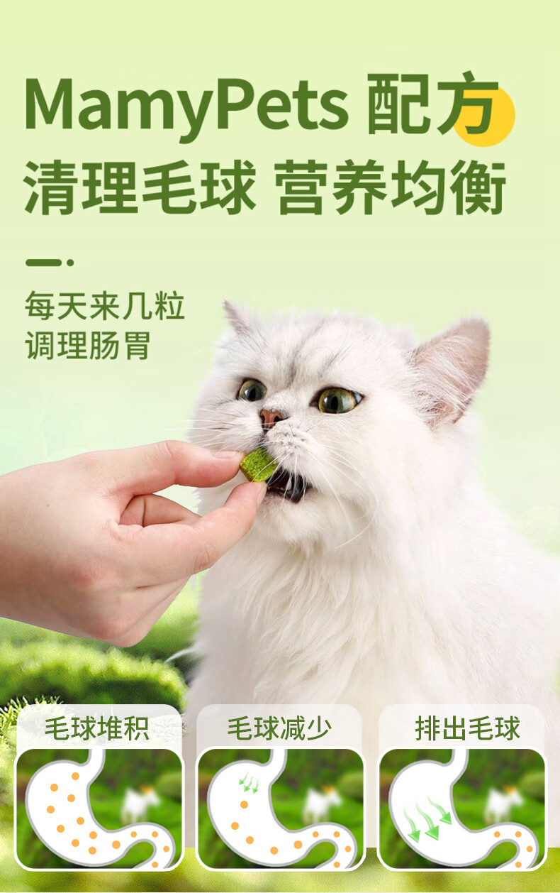 MamyPets猫草粒冻干猫零食猫咪排毛化毛膏功能零食猫薄荷磨牙棒猫草片90粒