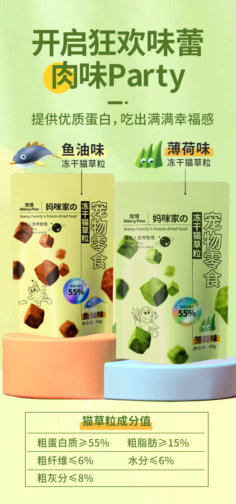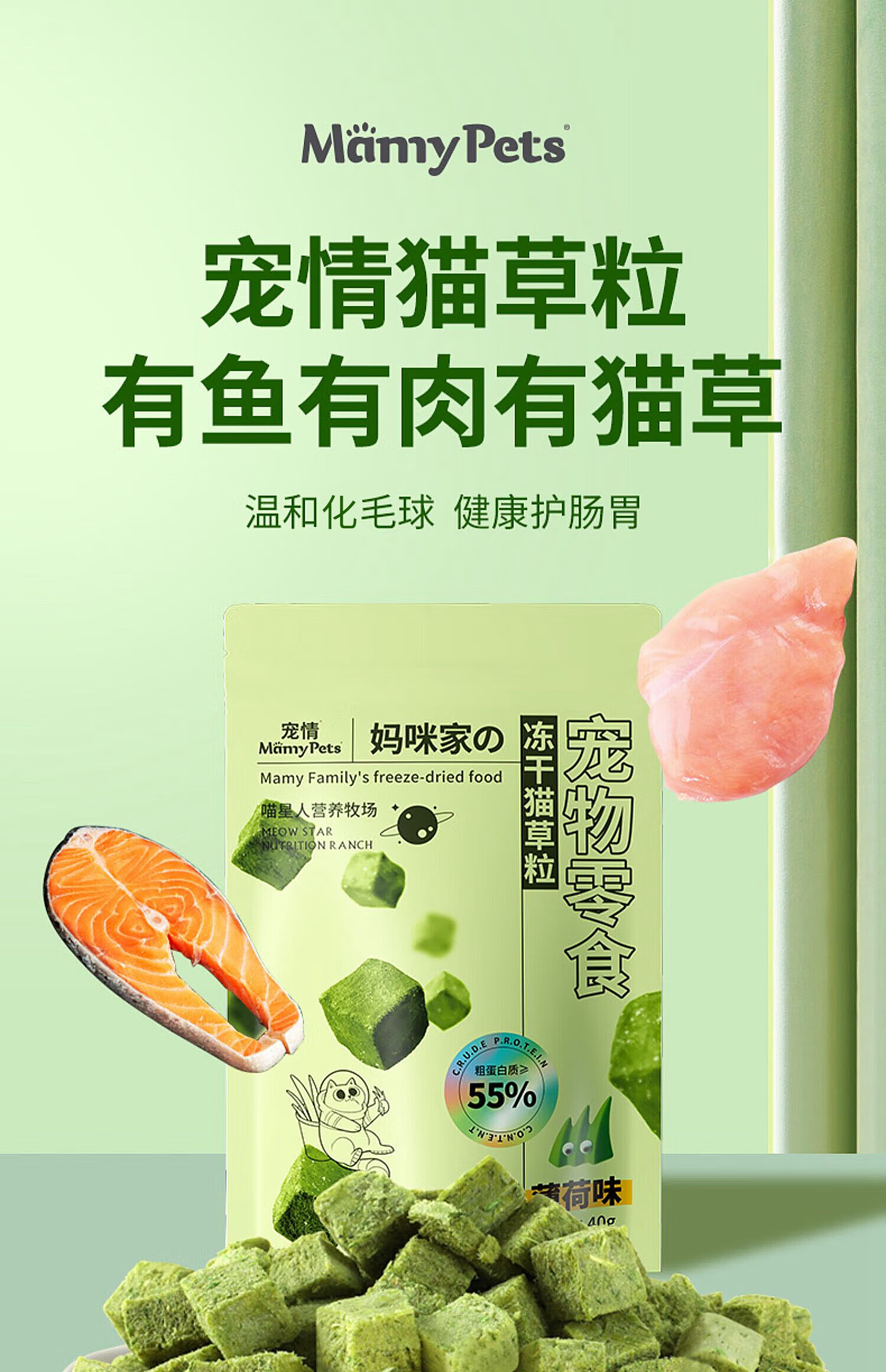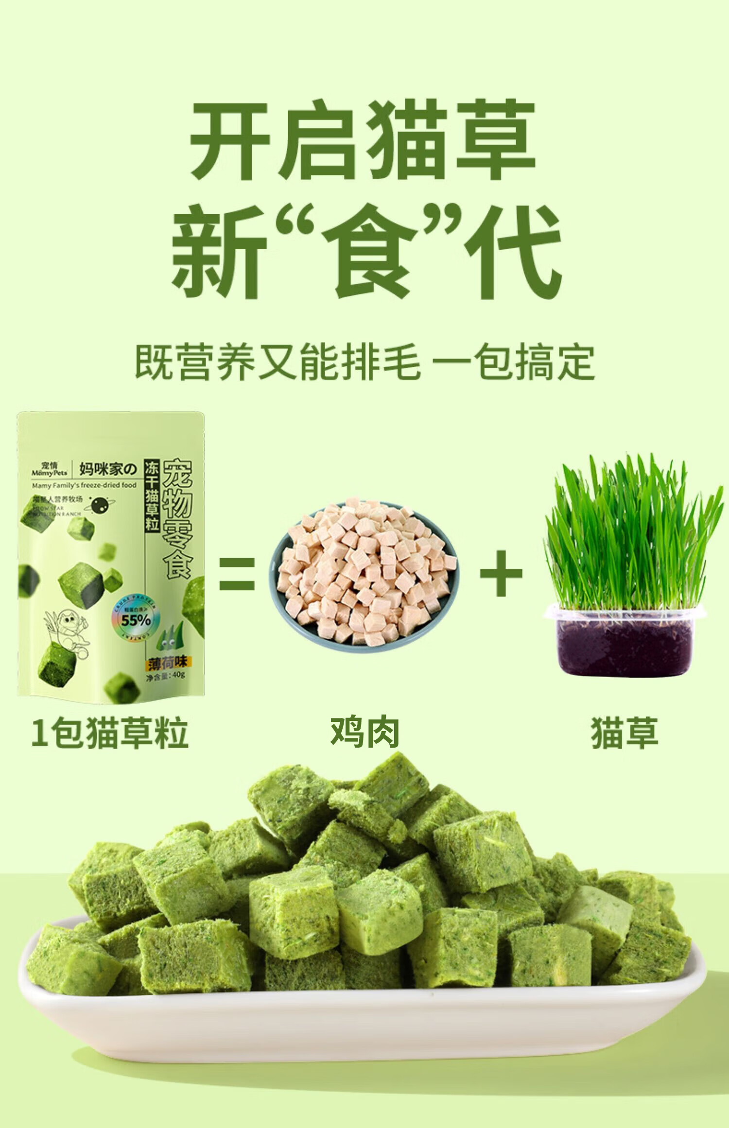 MamyPets猫草粒冻干猫零食猫咪排毛化毛膏功能零食猫薄荷磨牙棒猫草片90粒