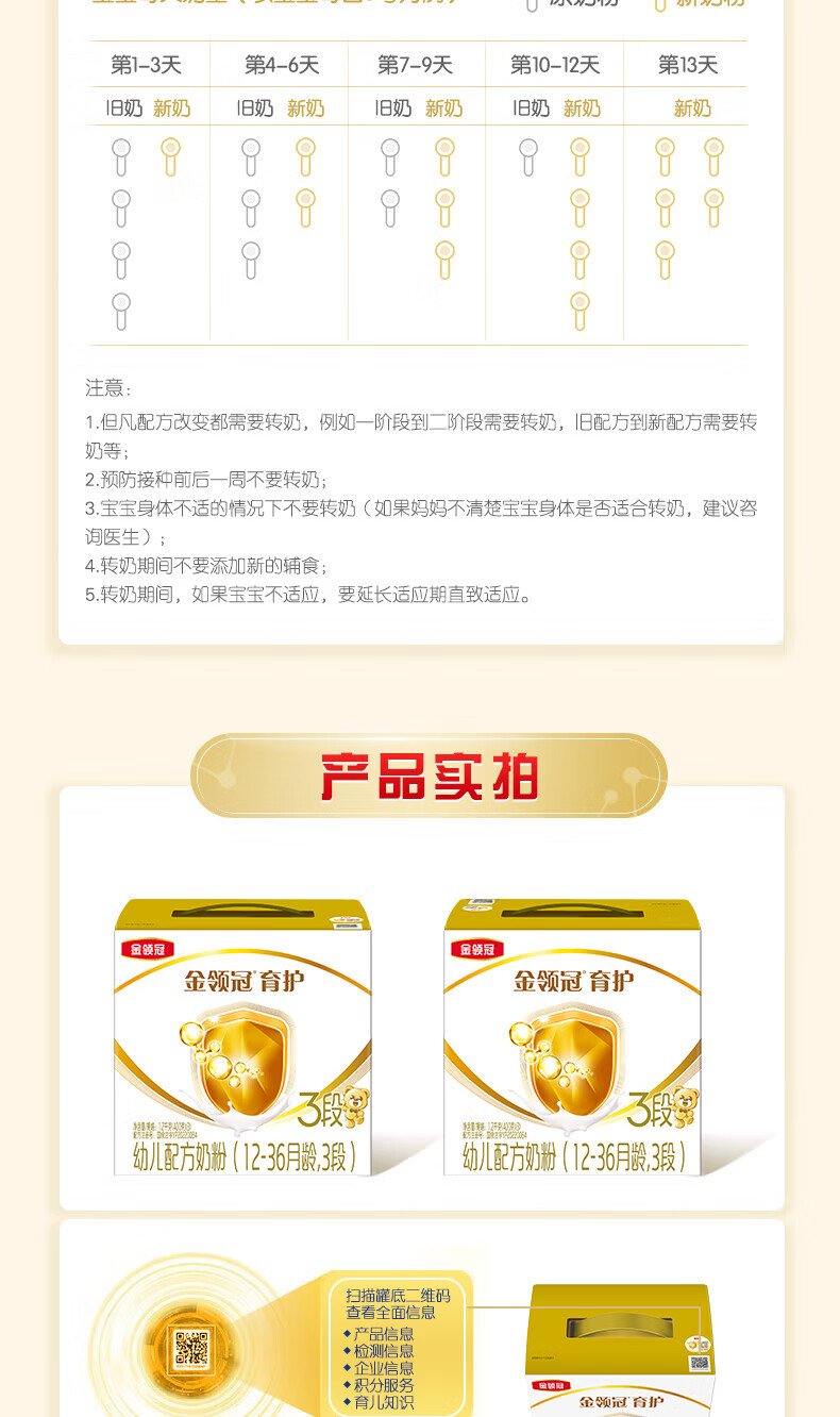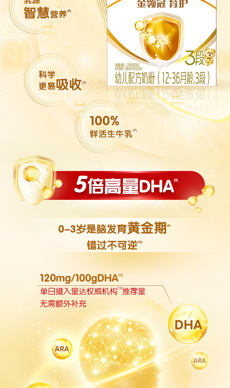 伊利奶粉金领冠3段育护非960g/400g/1200g幼儿配方奶粉盒装 3段1200g