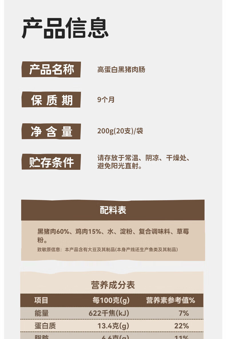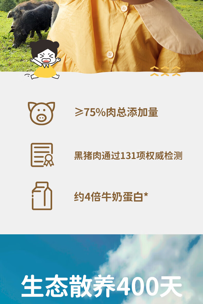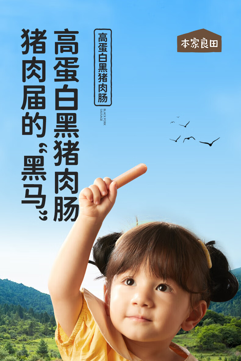 本家良田高蛋白黑猪肉肠200g无添加白糖香肠营养即食肉肠早餐儿童零食 高蛋白黑猪肉肠2袋*400g