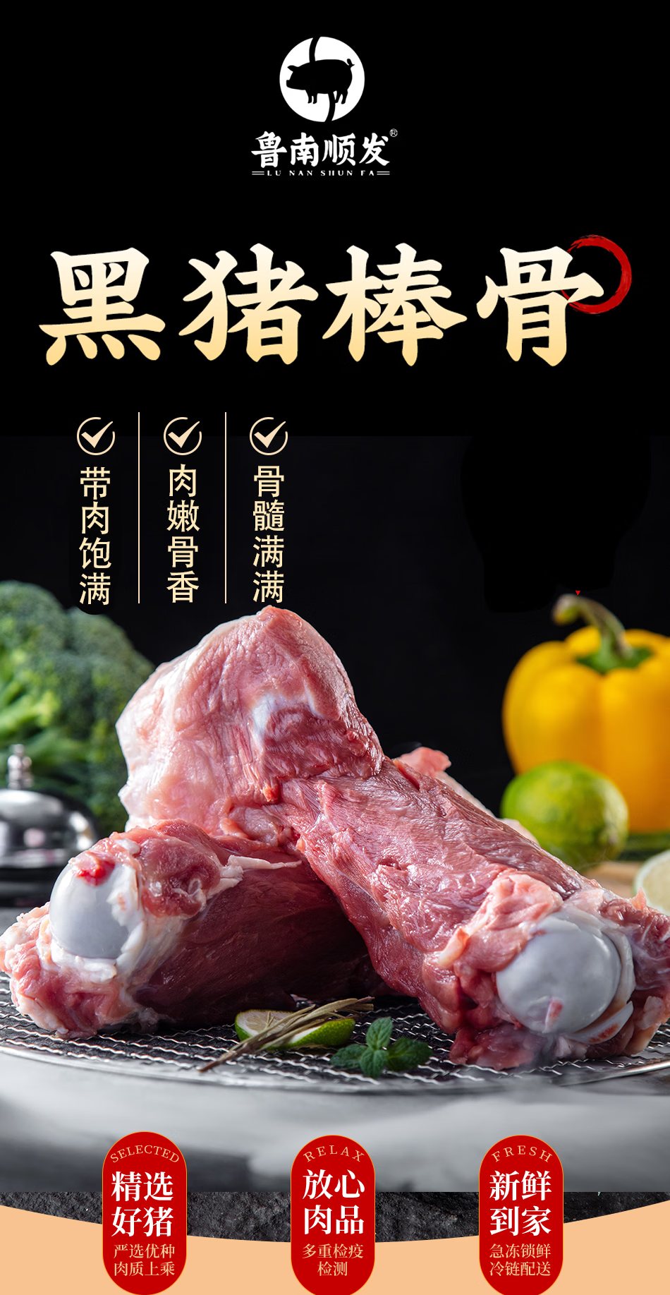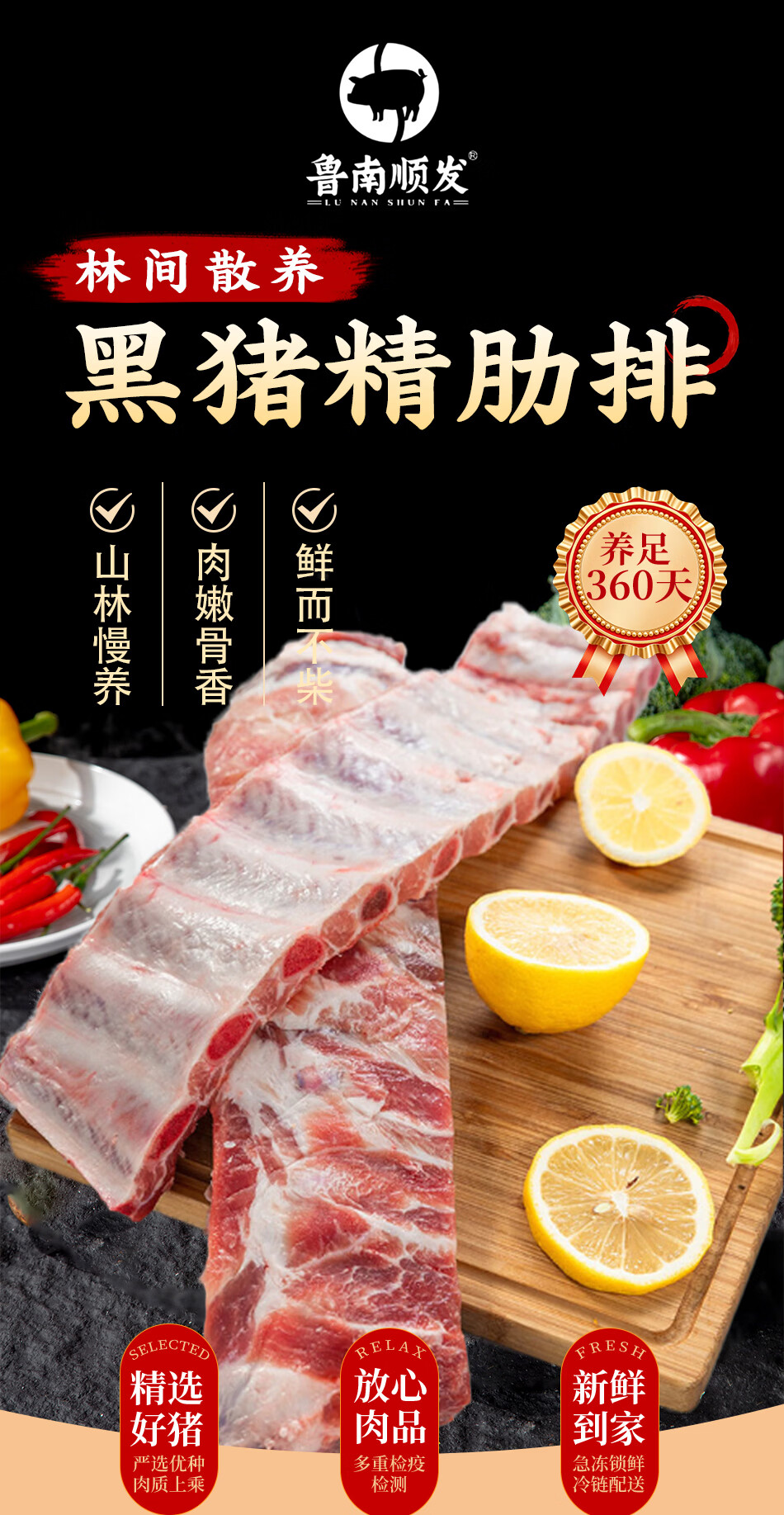 鲁南顺发黑猪肋排排骨五花肉棒骨蹄膀猪蹄块沂蒙山红烧烤肉 沂蒙山黑猪肋排净重2斤猪肉排骨肋排烤肉
