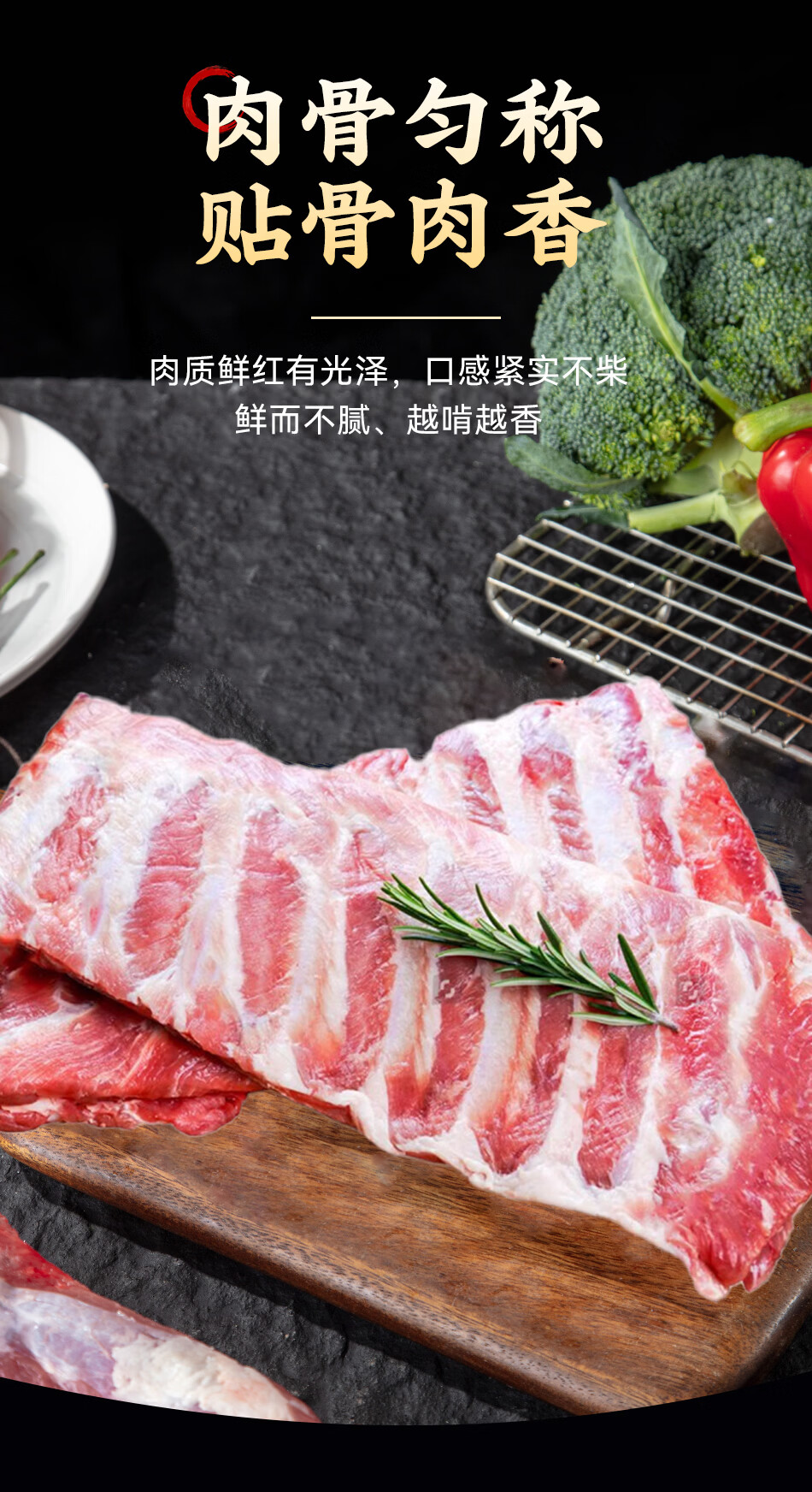 京东跑山猪国产黑猪肋排 冷冻免切排骨红烧炖汤猪肋骨猪肋条1.6斤