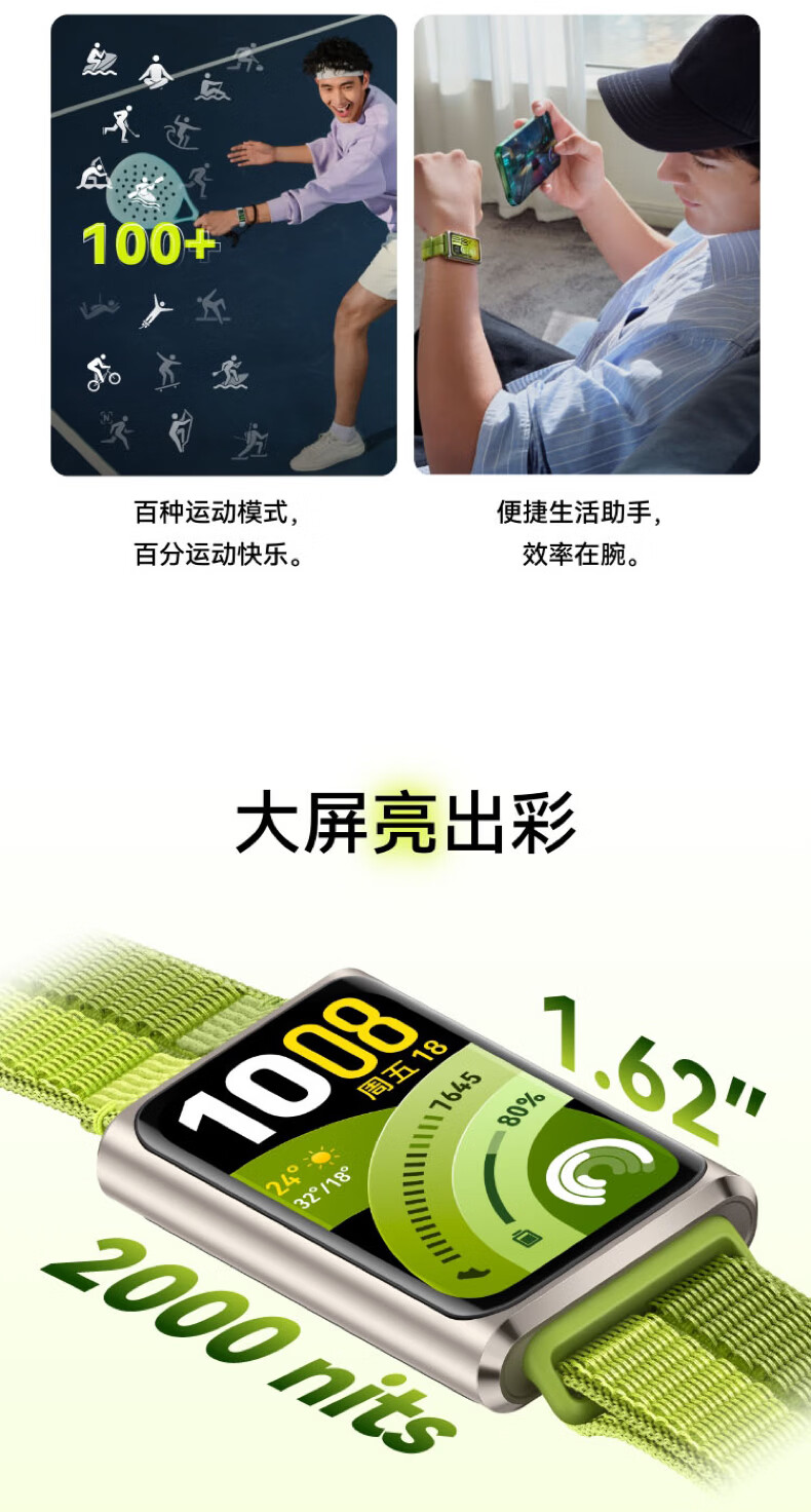 华为手环11Pro NFC 原野绿铝合金表壳1.62英寸高亮大屏刷新率达到60Hz独立GNSS定位精准室外跑骑新升级