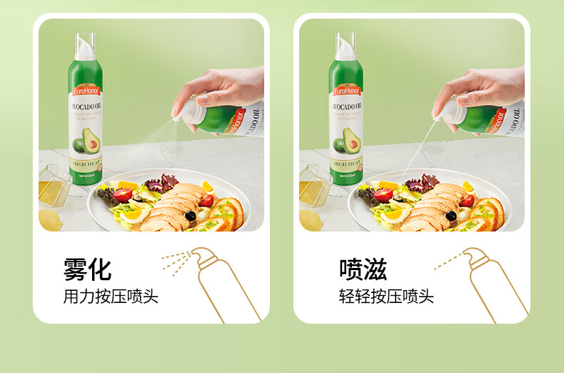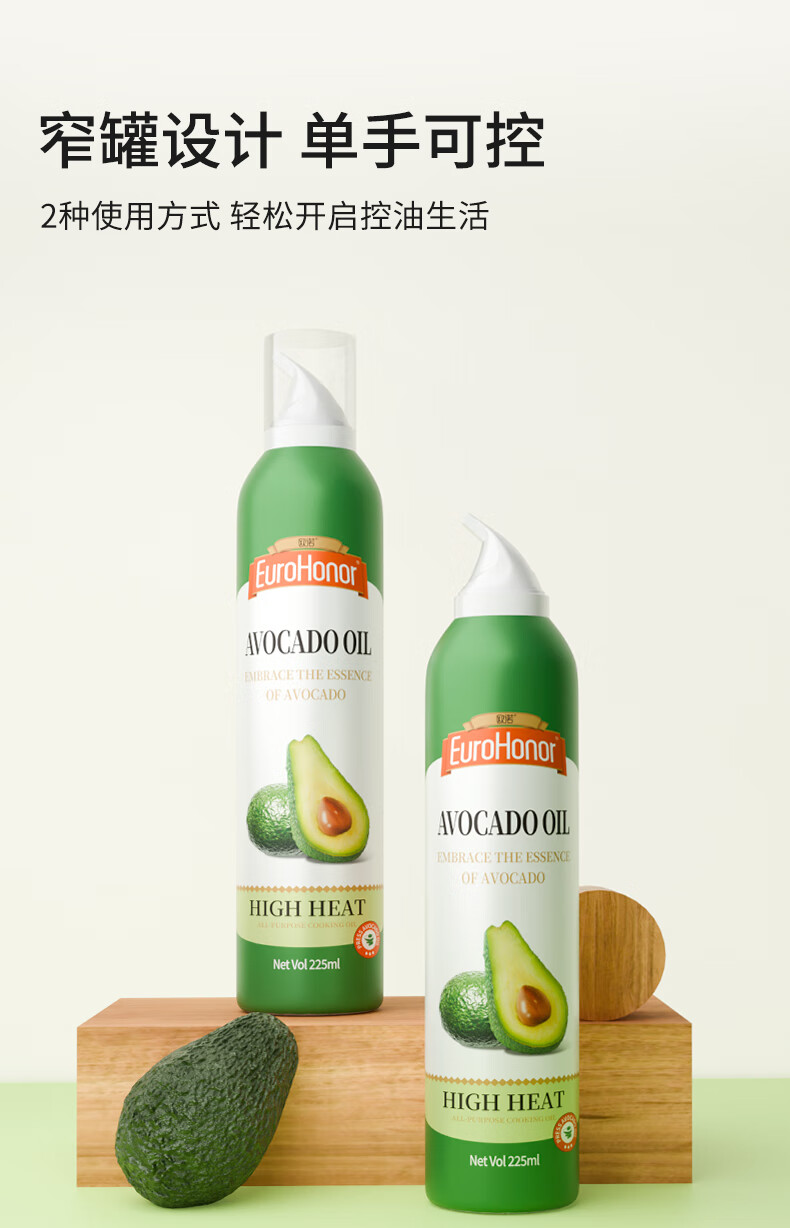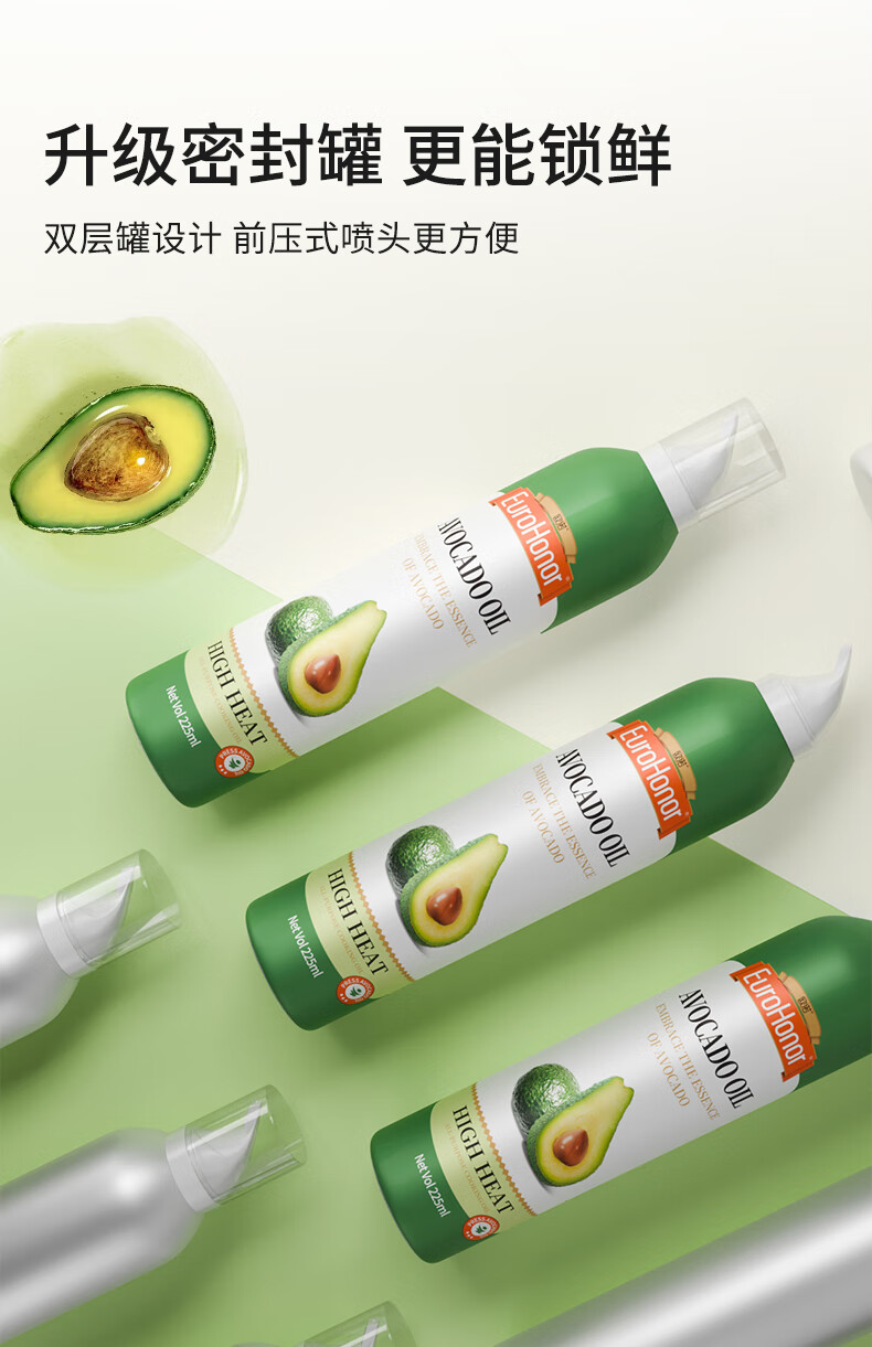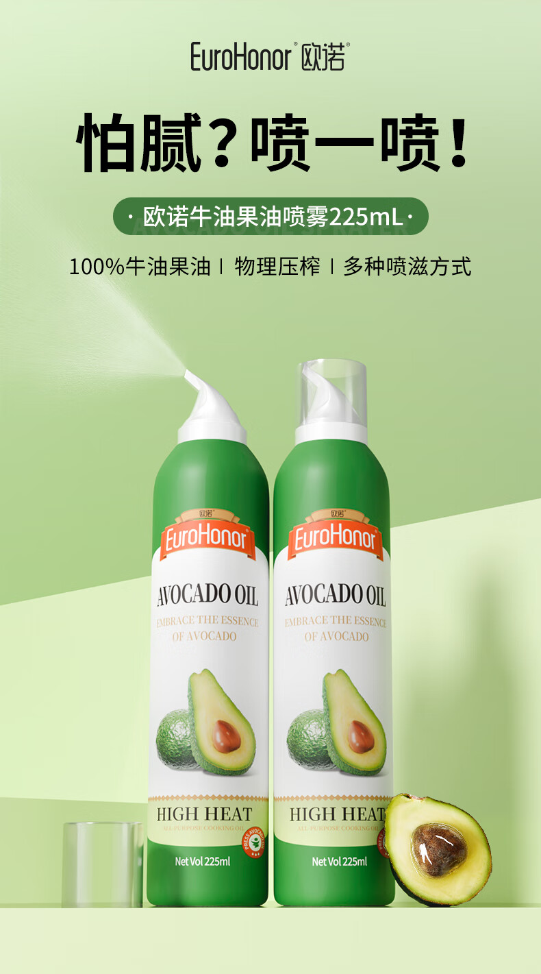 欧诺牛油果油喷雾装225ml 热炒耐高温少油烟健身轻食凉拌食用油
