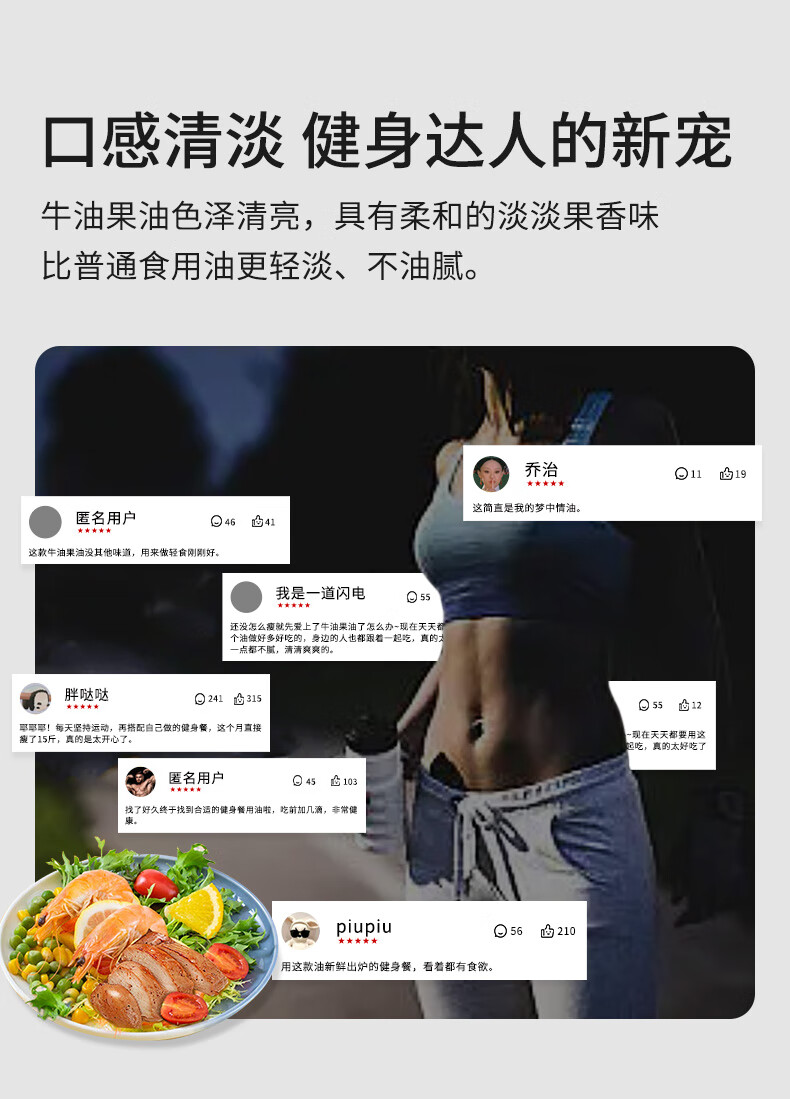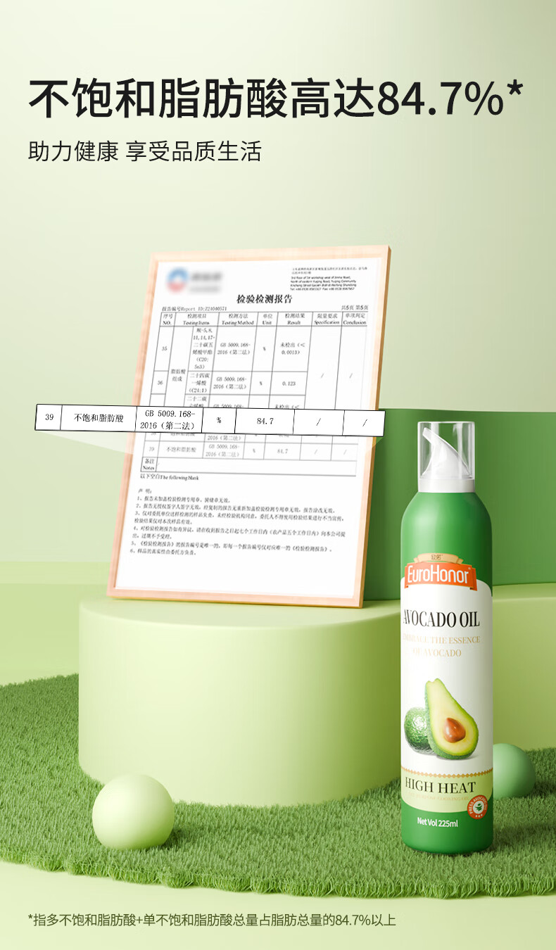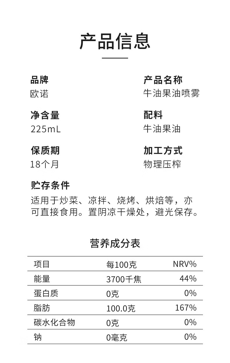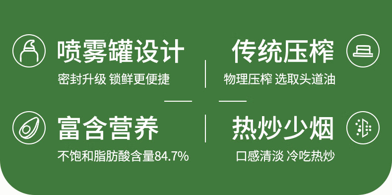 欧诺牛油果油喷雾装225ml 热炒耐高温少油烟健身轻食凉拌食用油