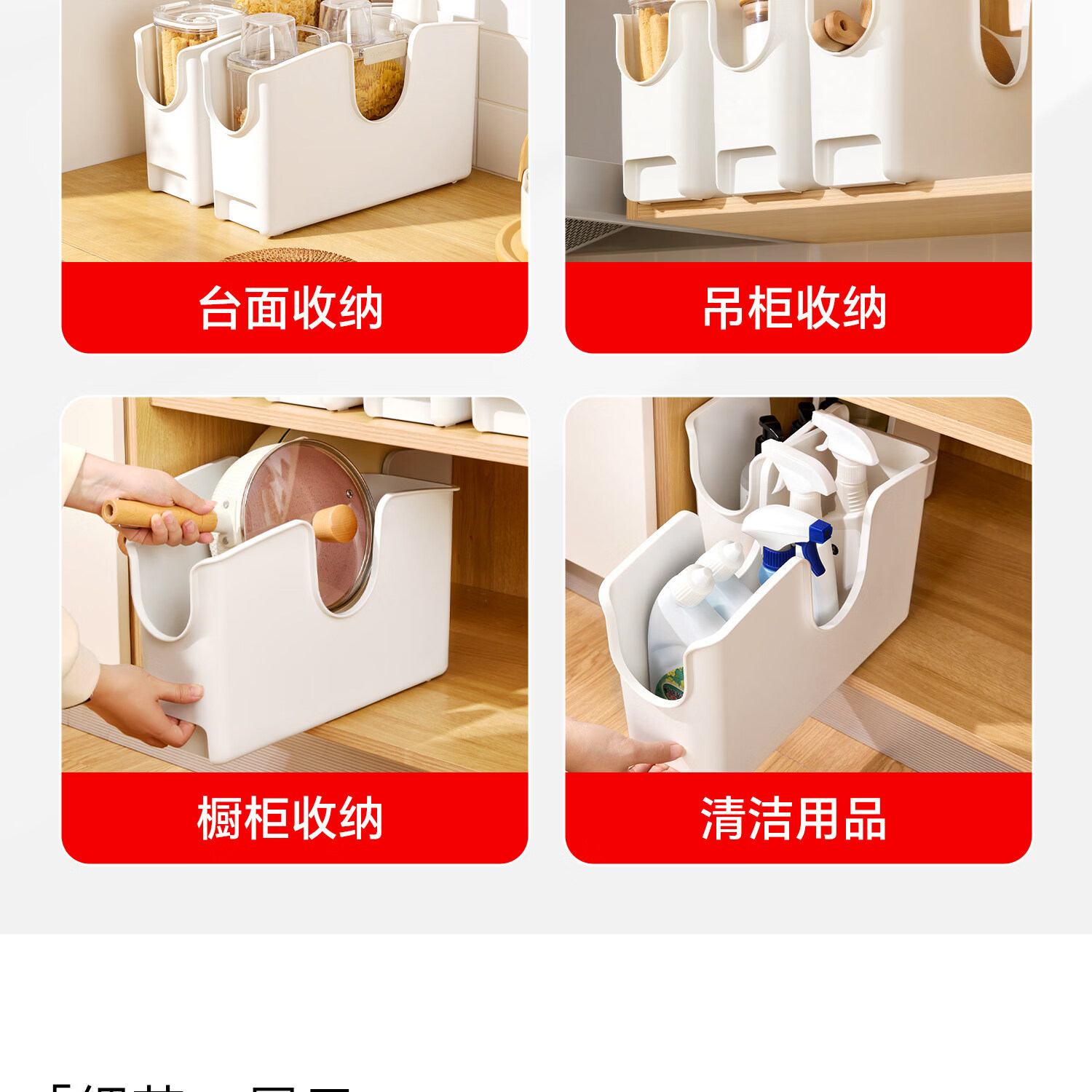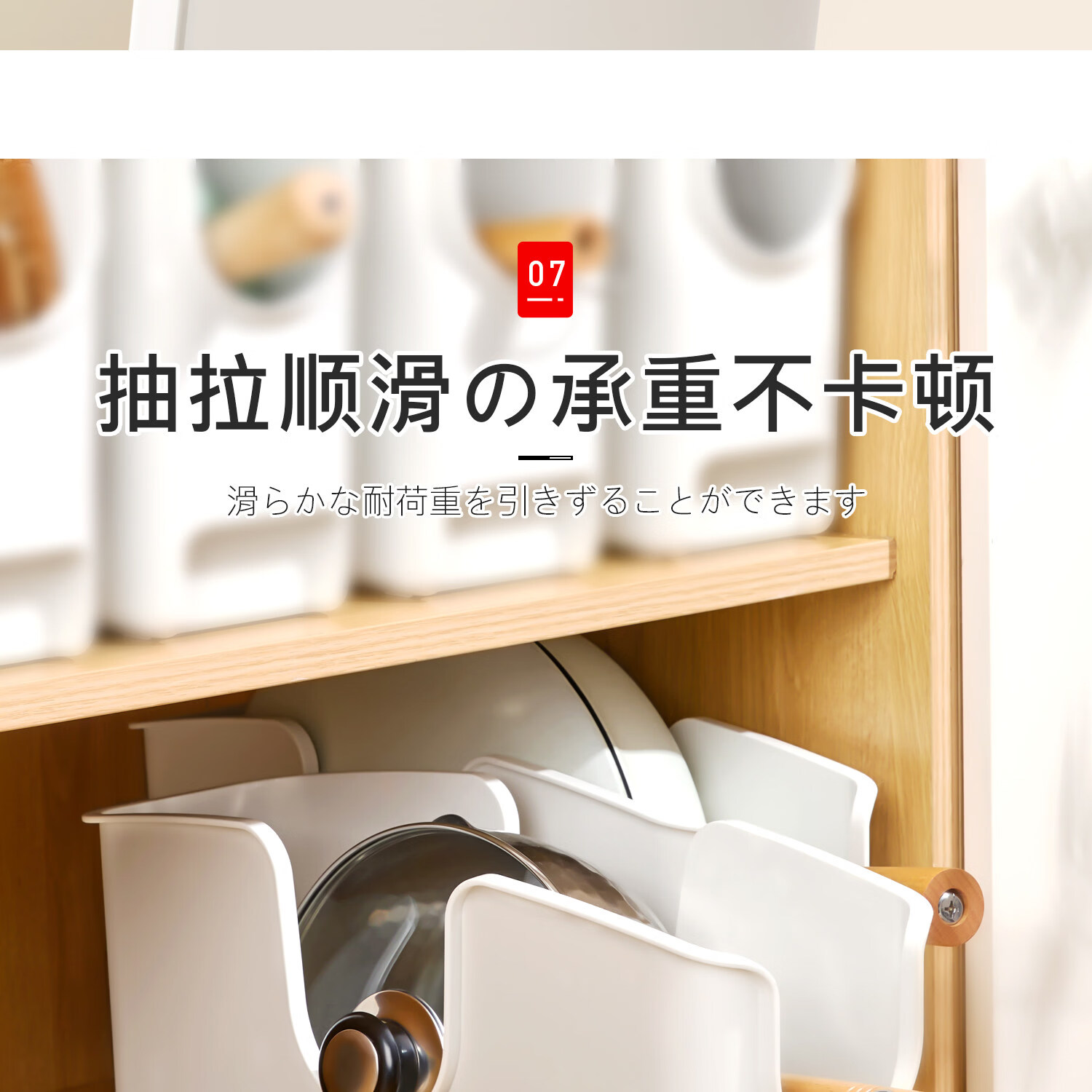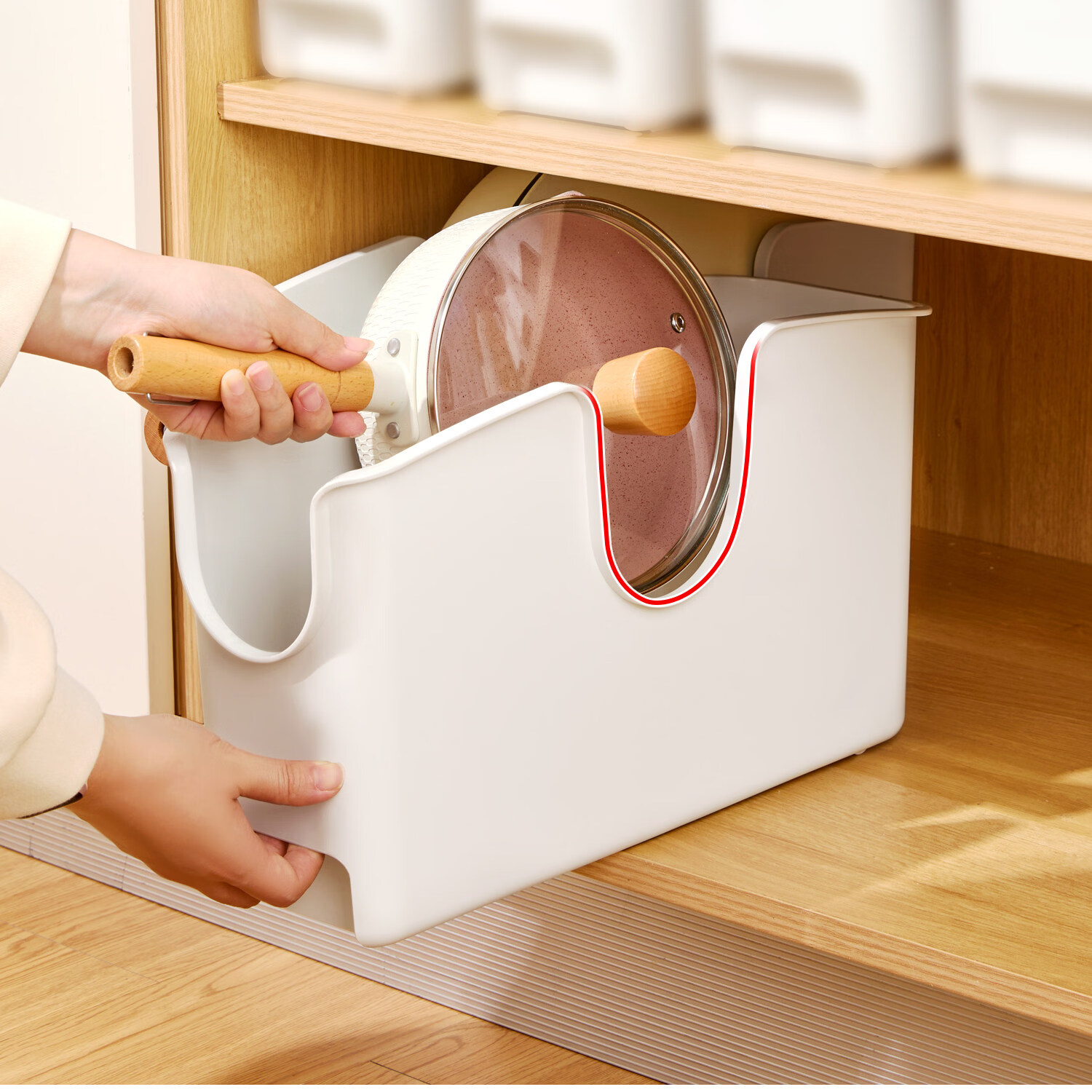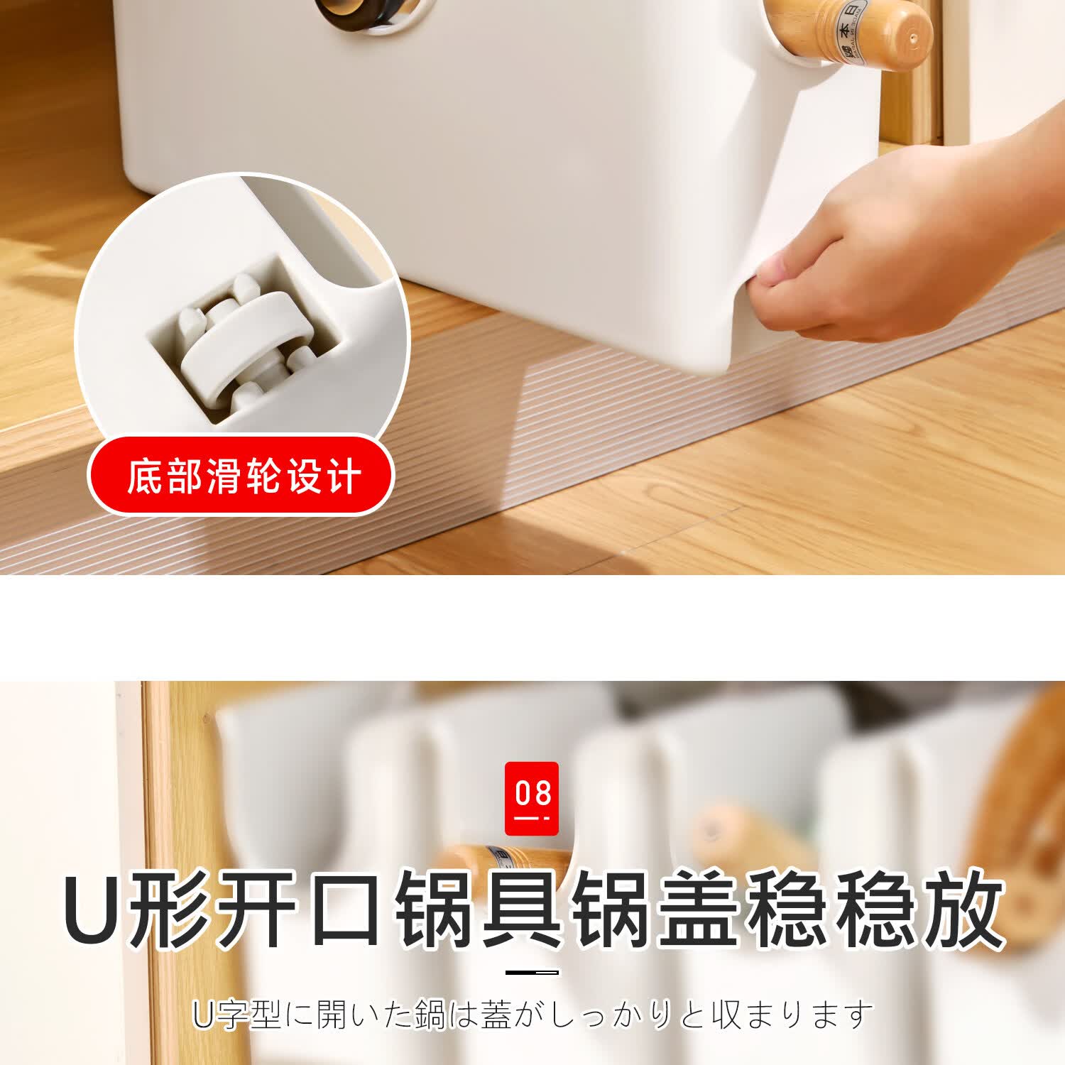 吱凡日本厨房锅具收纳盒带滚轮橱柜下水槽放锅盖调料瓶罐储物筐置物架 2个装【底部顺滑滚轮】