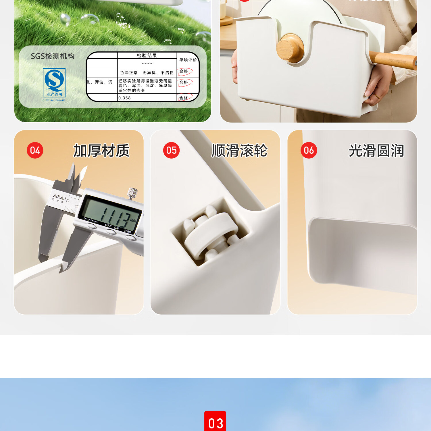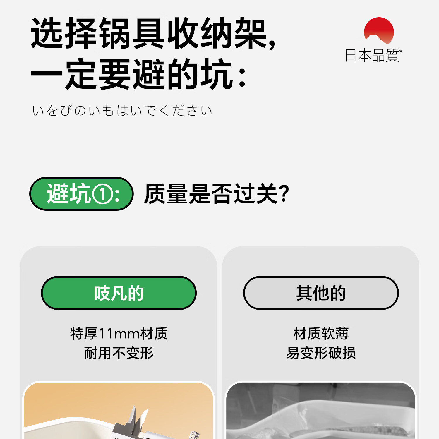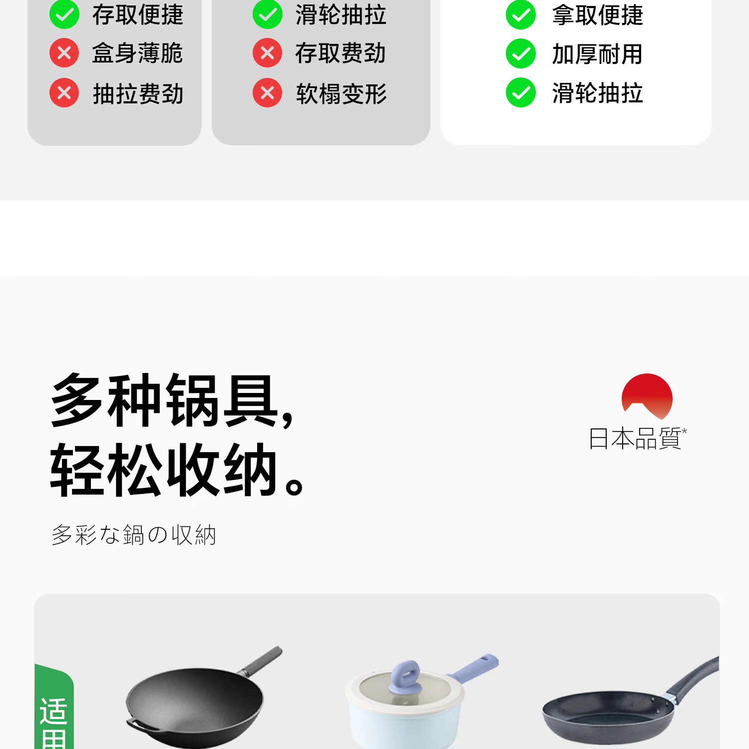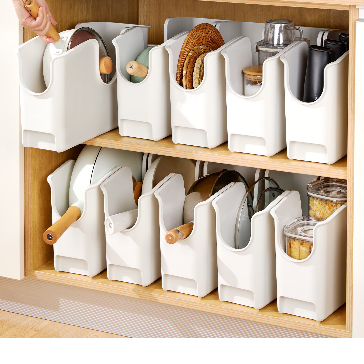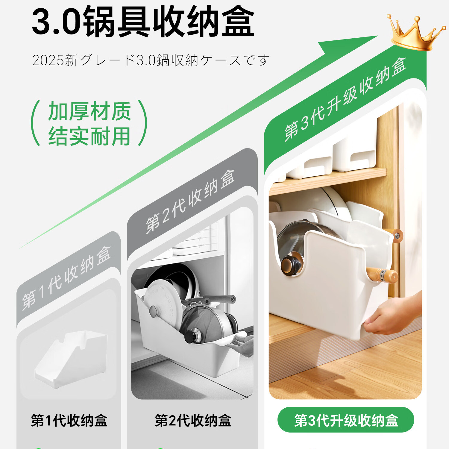 吱凡日本厨房锅具收纳盒带滚轮橱柜下水槽放锅盖调料瓶罐储物筐置物架 2个装【底部顺滑滚轮】