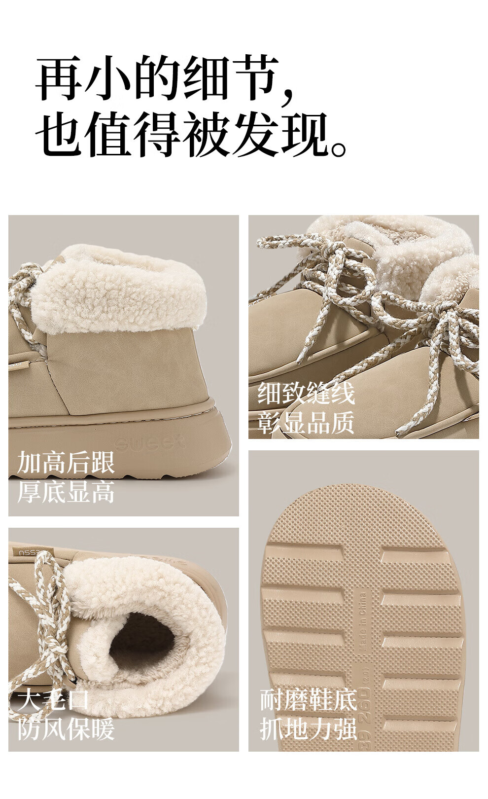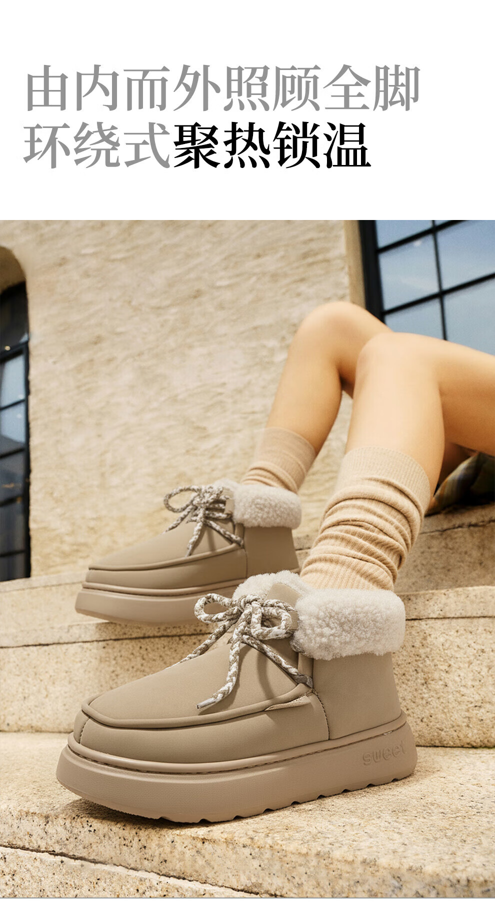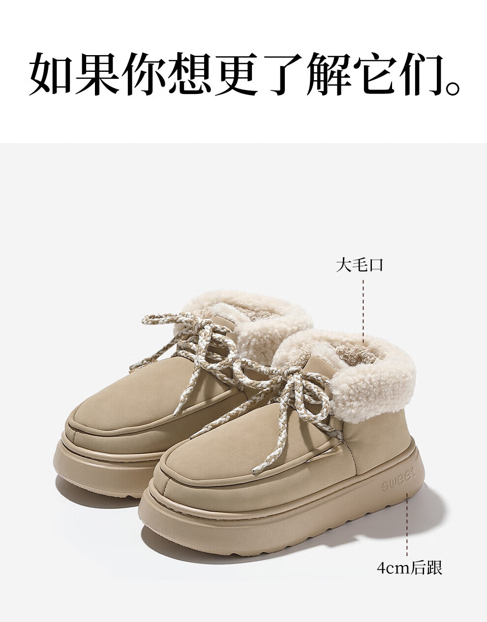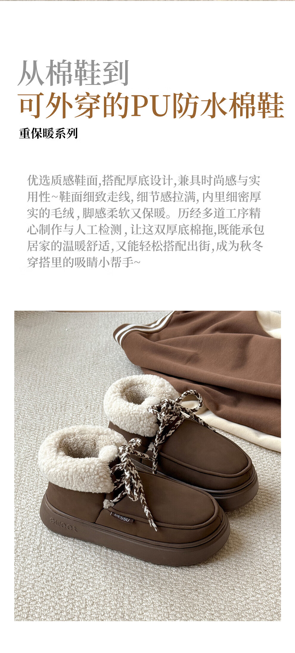 FZT包根雪地靴棉拖鞋女2025冬季新款厚底防滑带毛绒休闲鞋棉拖鞋男 浅卡其 36-37 标准码【内长225mm】