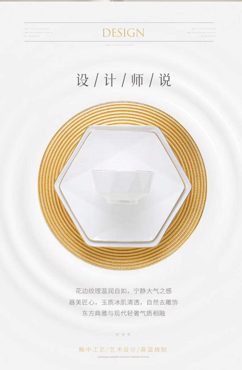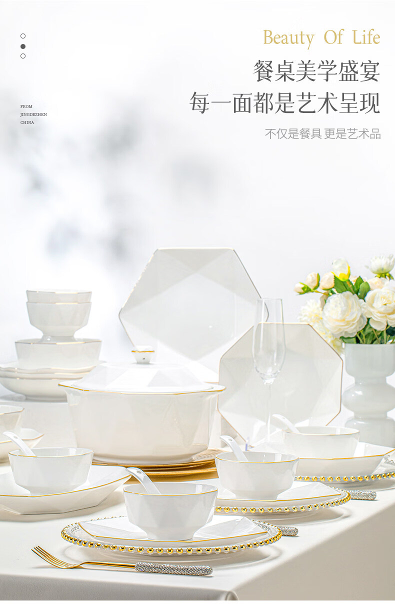 精缔陶瓷JINGDI碗家用2026新款景德镇轻奢高温碗盘陶瓷餐具套装乔迁碗碟套装家用 【景德镇高温烧制】冰清玉洁 升级66件配富贵煲